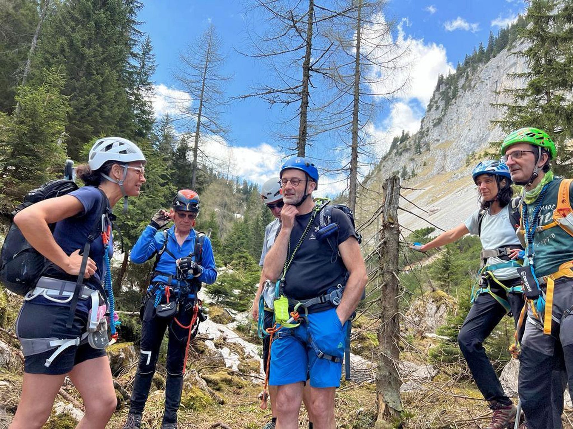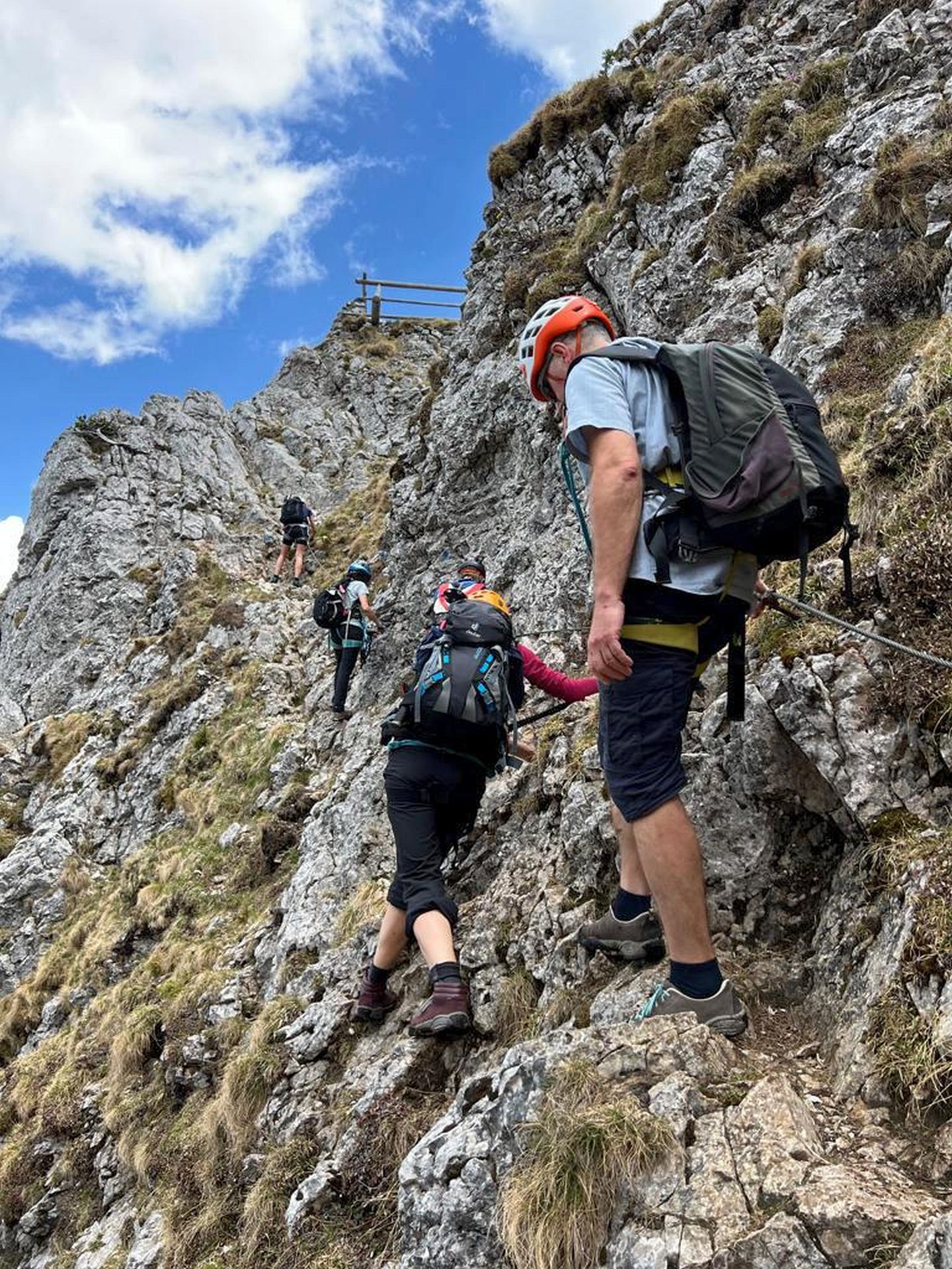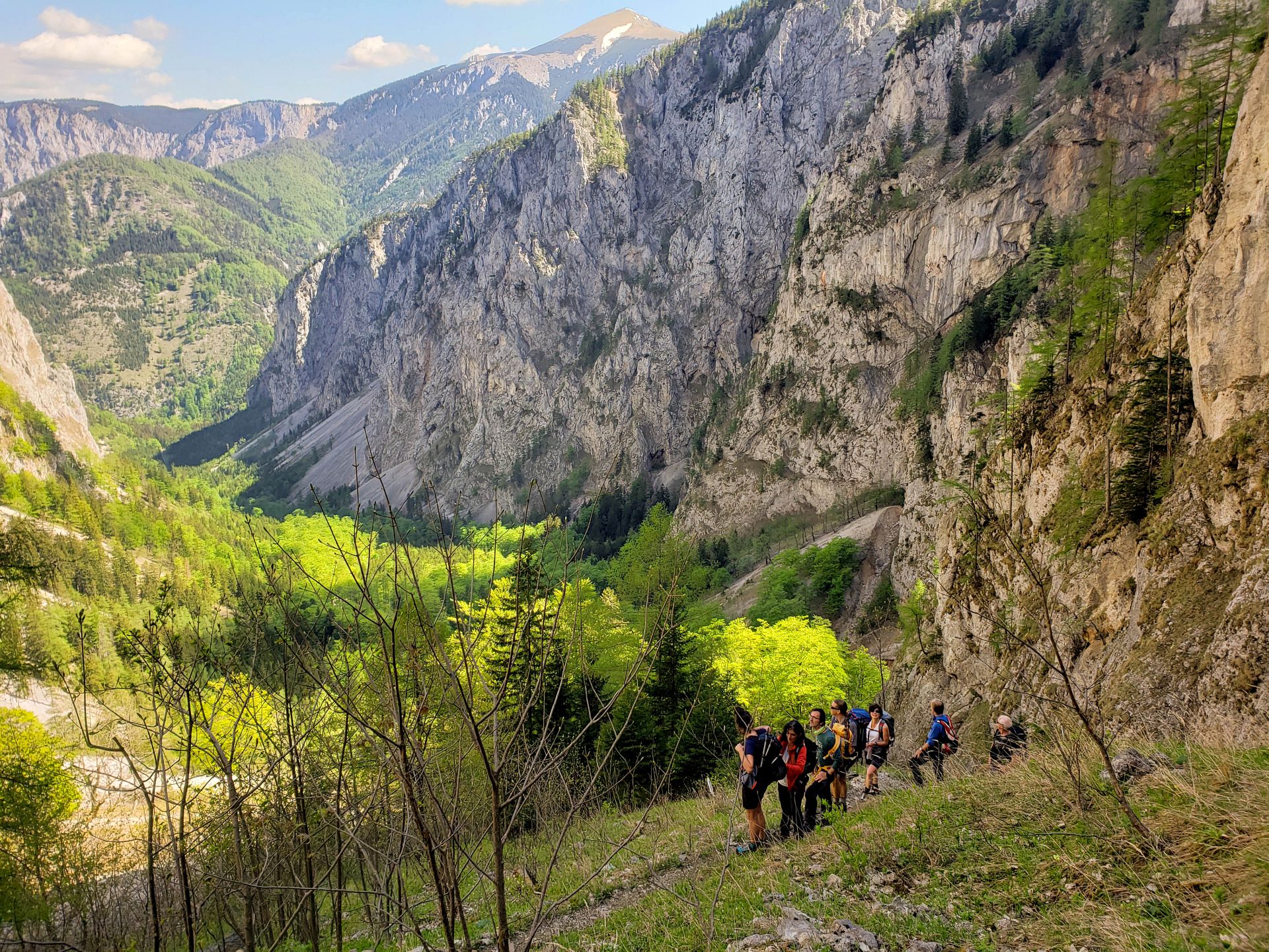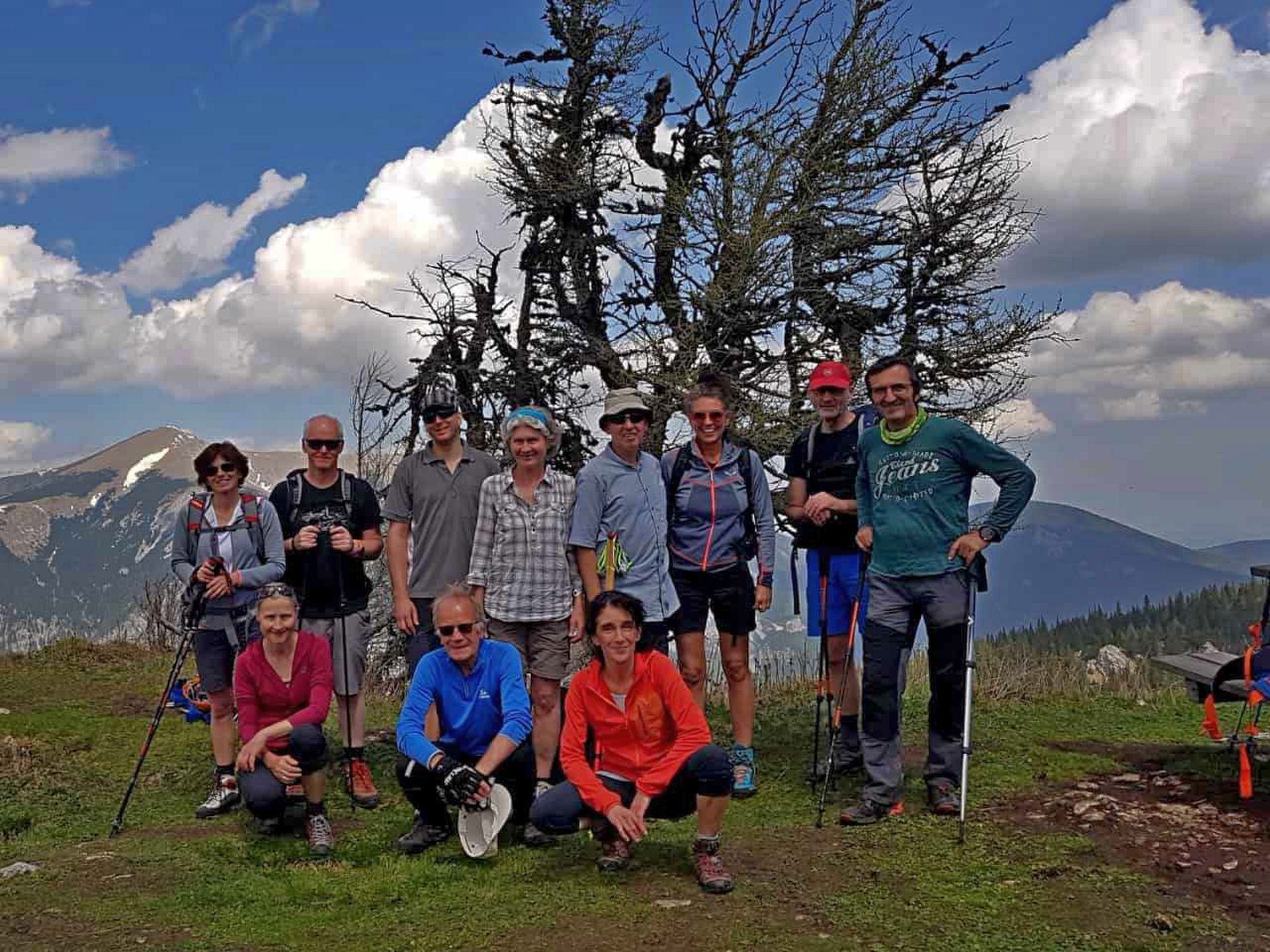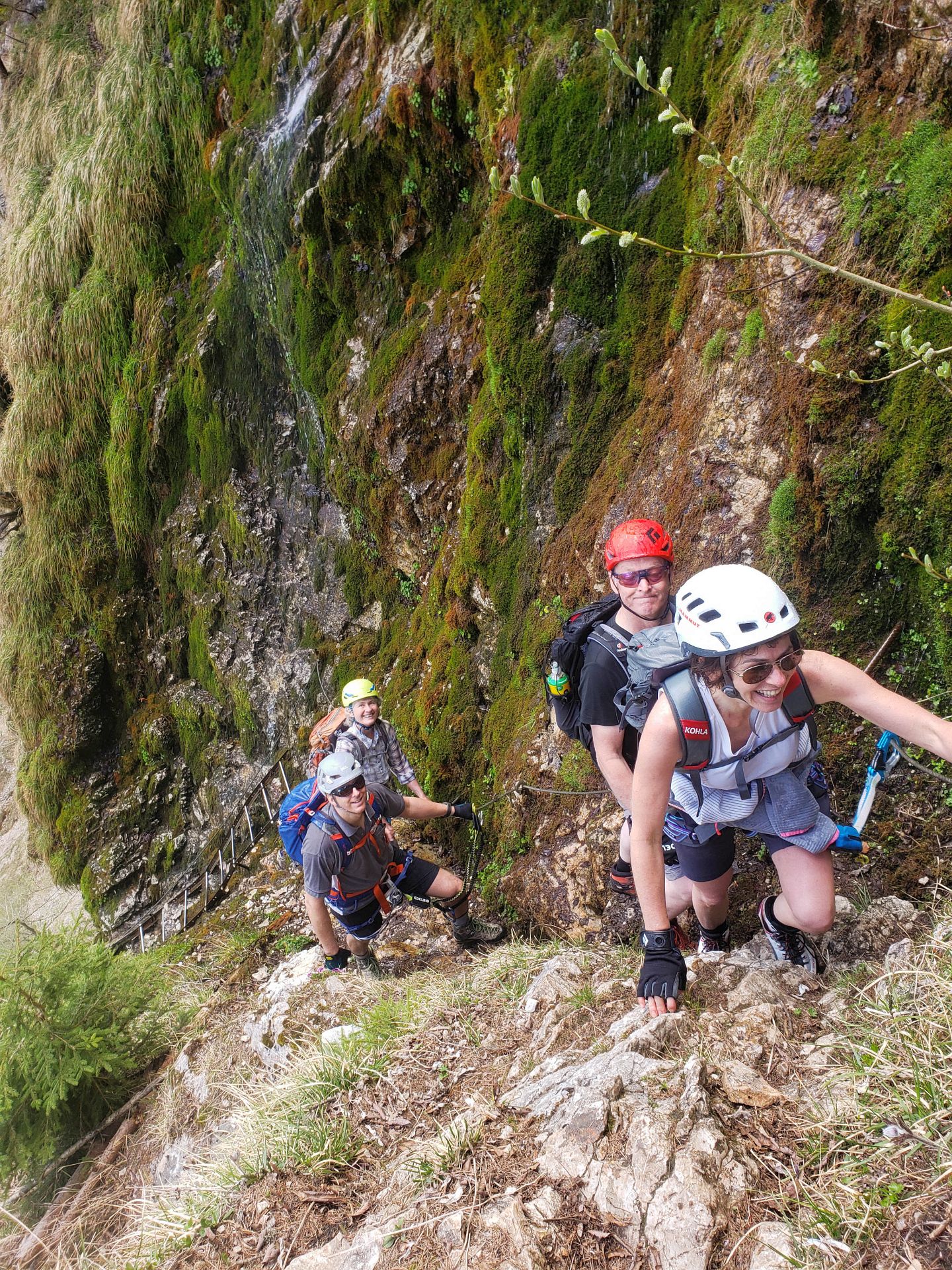 Wir haben eine wunderschöne Klettersteigtour auf die Rax unternommen. Auf geschichtsträchtigen Steigen – Gaislochsteig (inklusive Duschvergnügen im Wasserfall), über den Gustav-Jahn-Steig rüber zum oberen Teil des AV-Steiges bis zur Höllentalaussicht. Es war wunderschön dort oben zu rasten und sich für den Abstieg etwas zu stärken. Ein Teil der Gruppe ist mit Ernst über den gesamten Wachthüttelkamm wieder zurück ins Höllental abgestiegen. Die anderen haben noch gemeinsam mit Gottfried den Teufelsbadstuben-Steig nach unten mitgenommen.