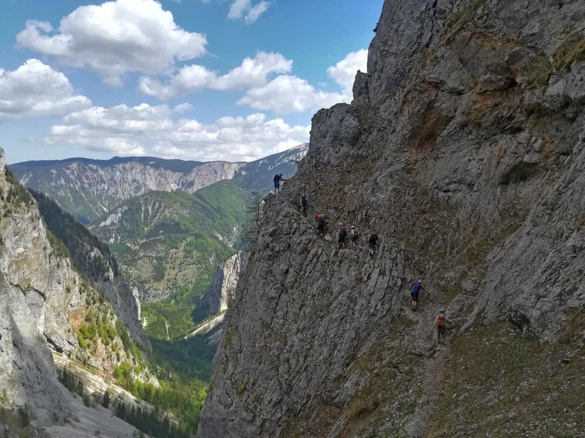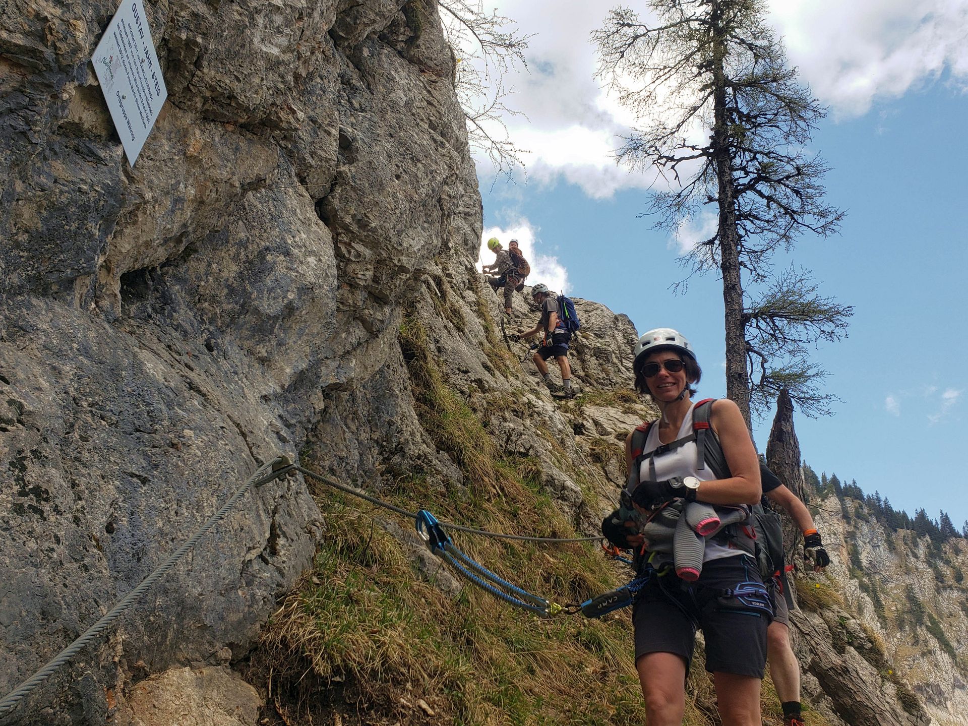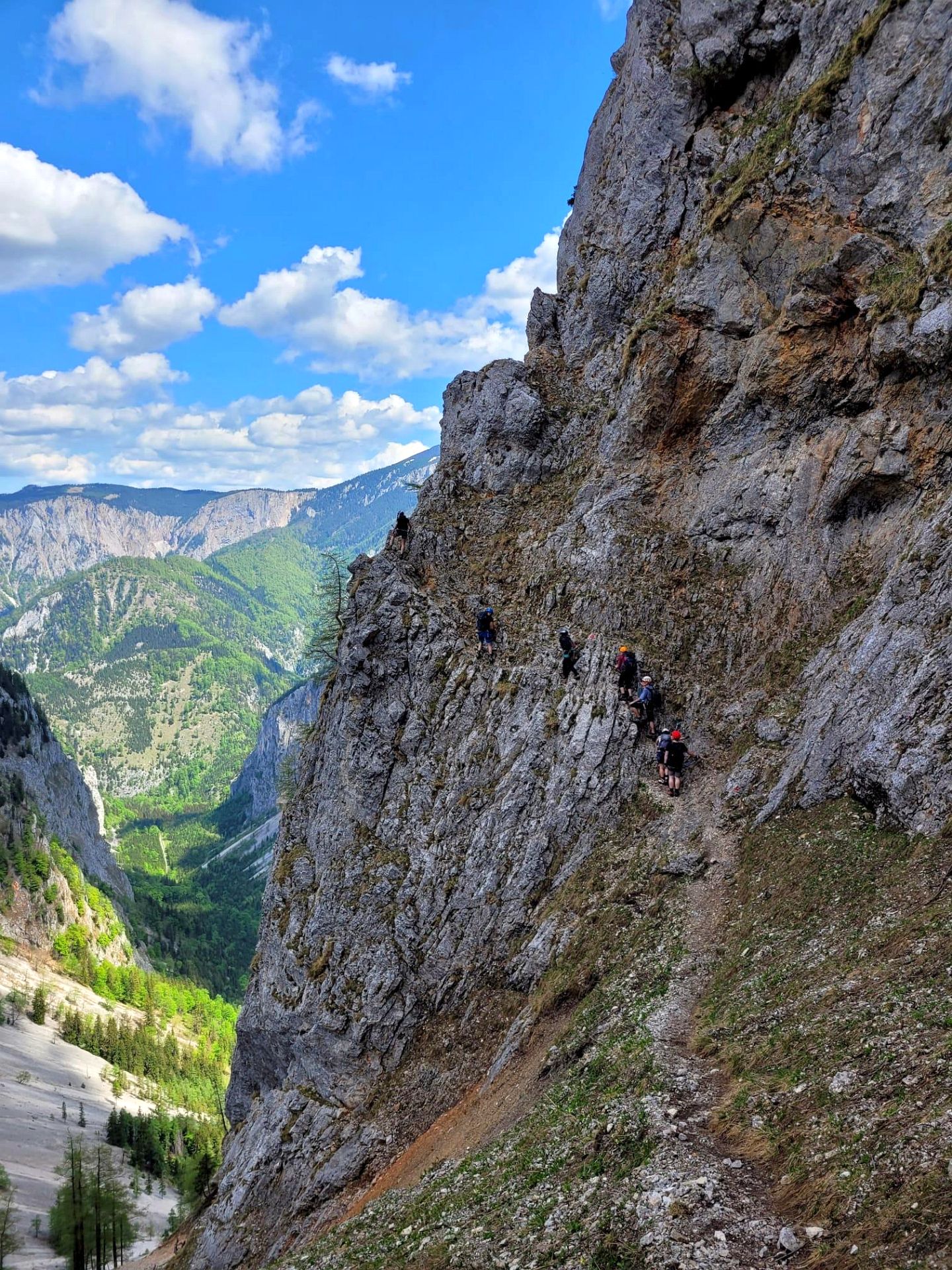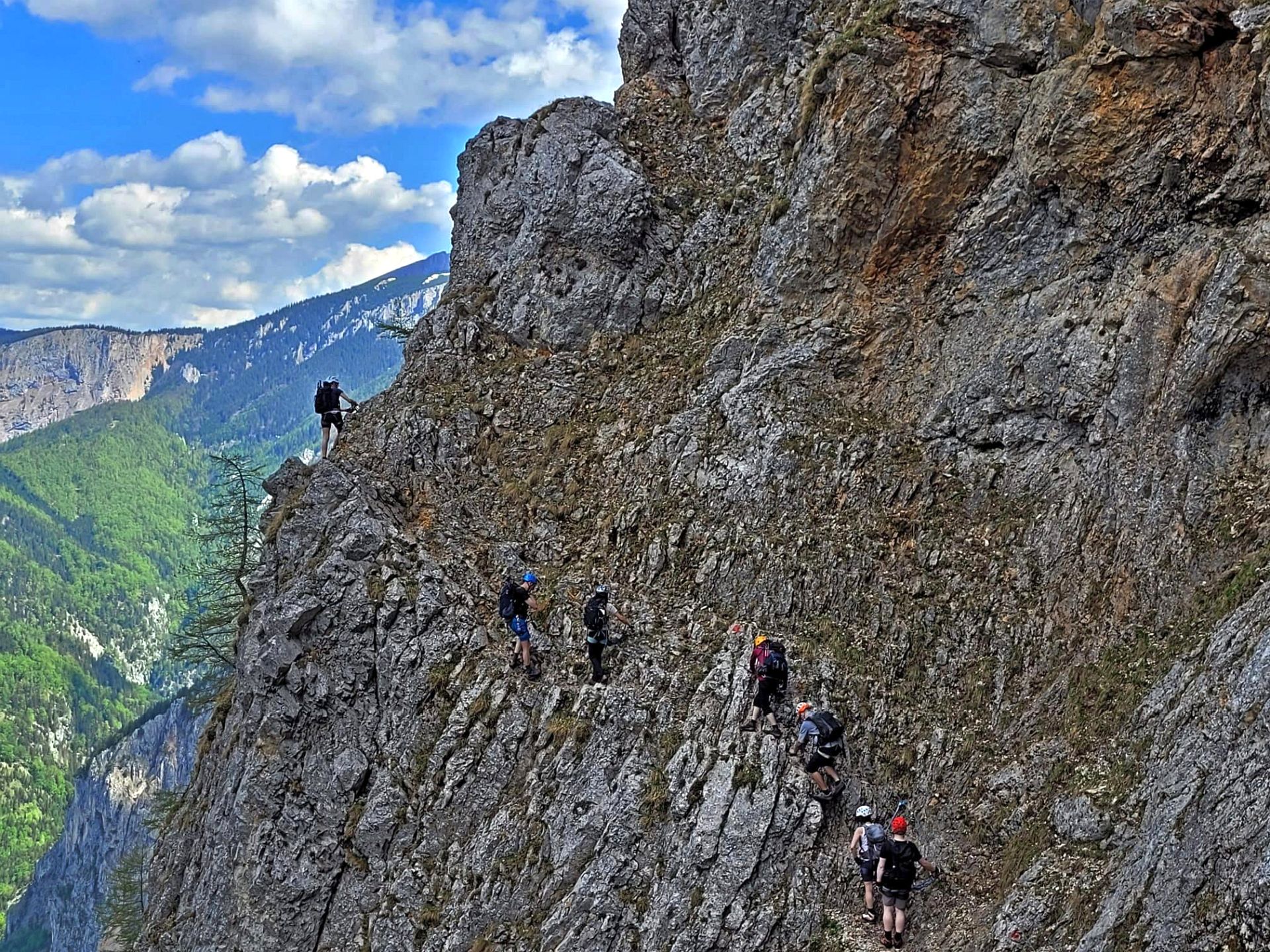 Wir haben eine wunderschöne Klettersteigtour auf die Rax unternommen. Auf geschichtsträchtigen Steigen – Gaislochsteig (inklusive Duschvergnügen im Wasserfall), über den Gustav-Jahn-Steig rüber zum oberen Teil des AV-Steiges bis zur Höllentalaussicht. Es war wunderschön dort oben zu rasten und sich für den Abstieg etwas zu stärken. Ein Teil der Gruppe ist mit Ernst über den gesamten Wachthüttelkamm wieder zurück ins Höllental abgestiegen. Die anderen haben noch gemeinsam mit Gottfried den Teufelsbadstuben-Steig nach unten mitgenommen.