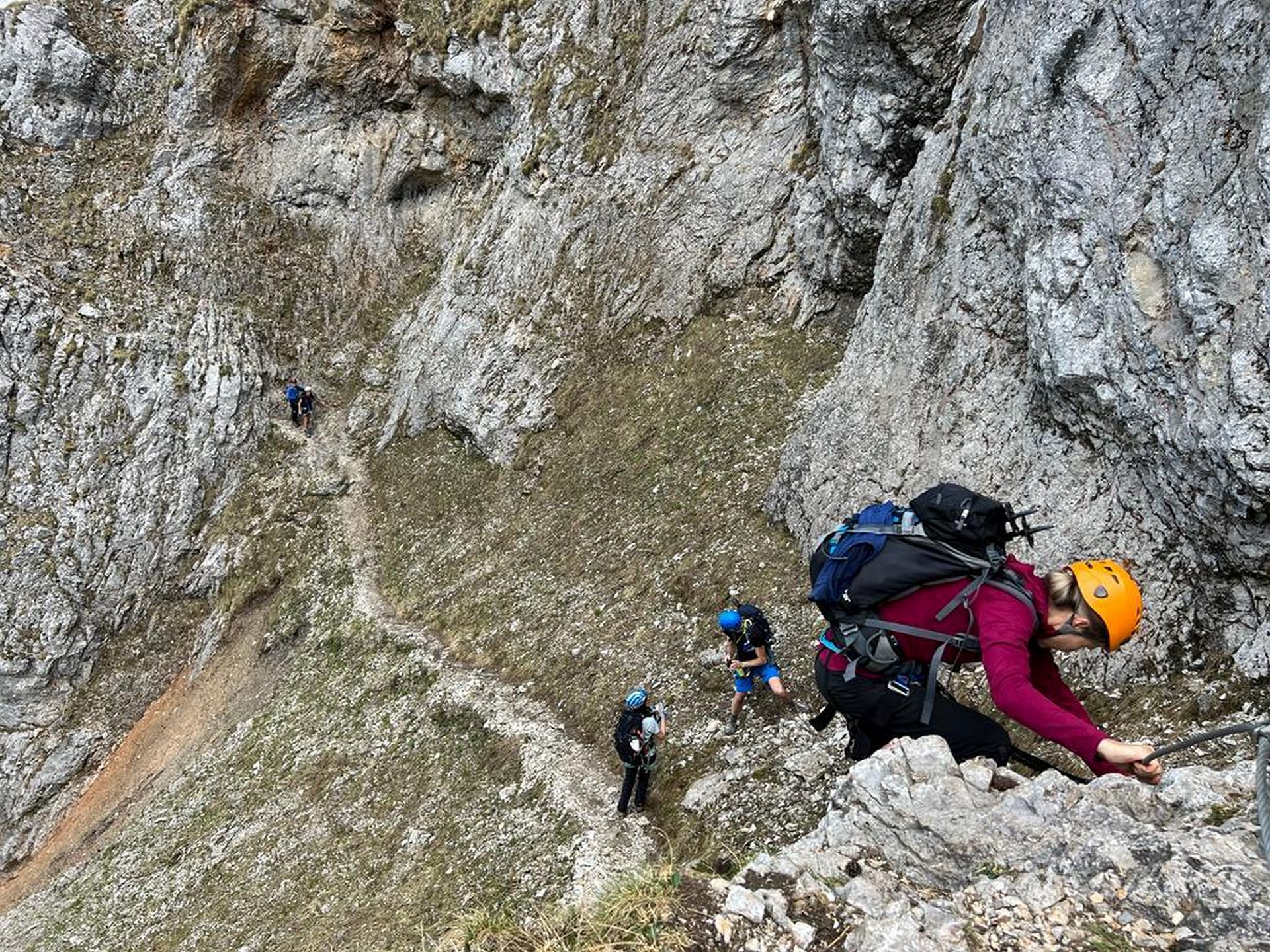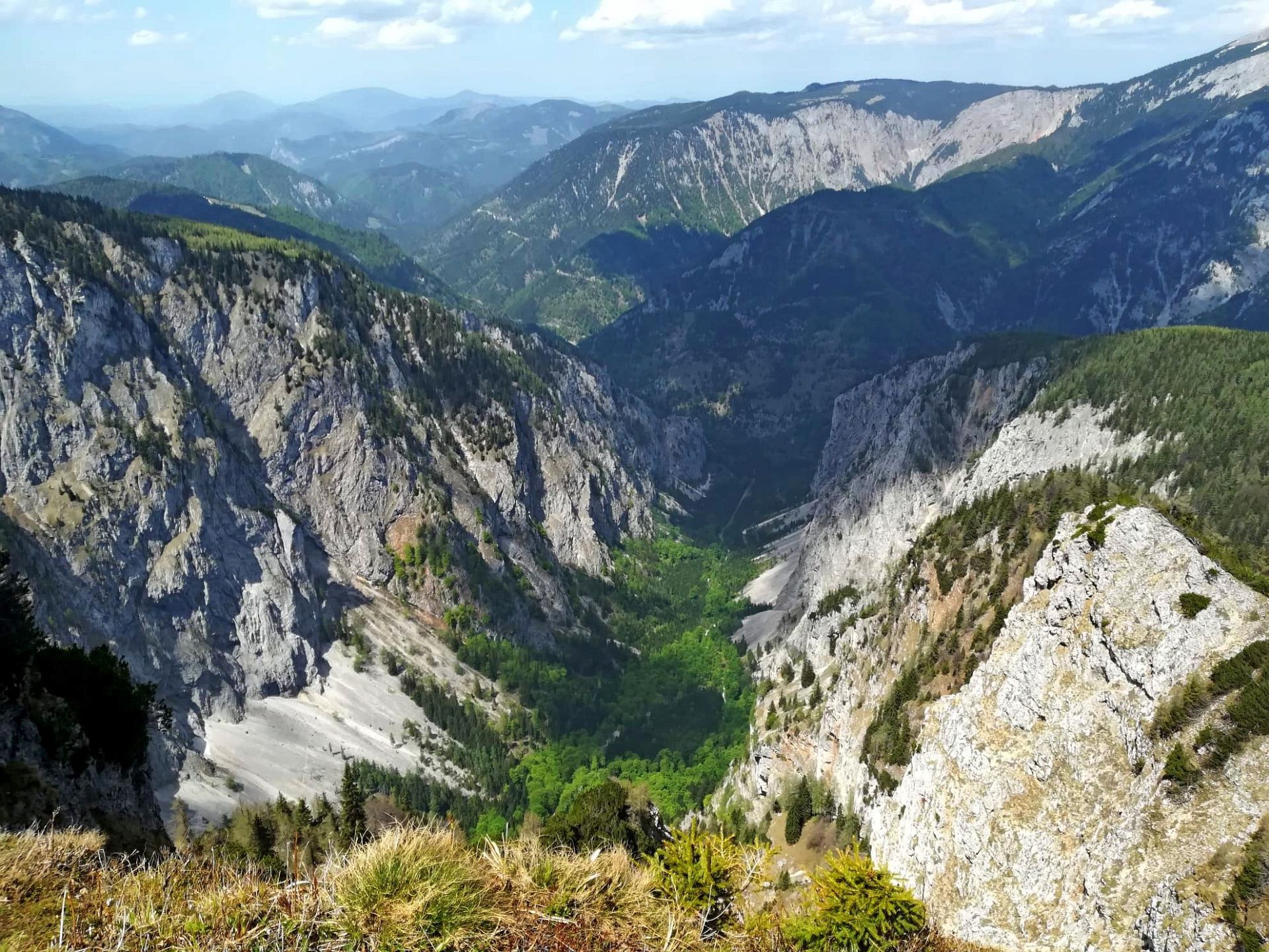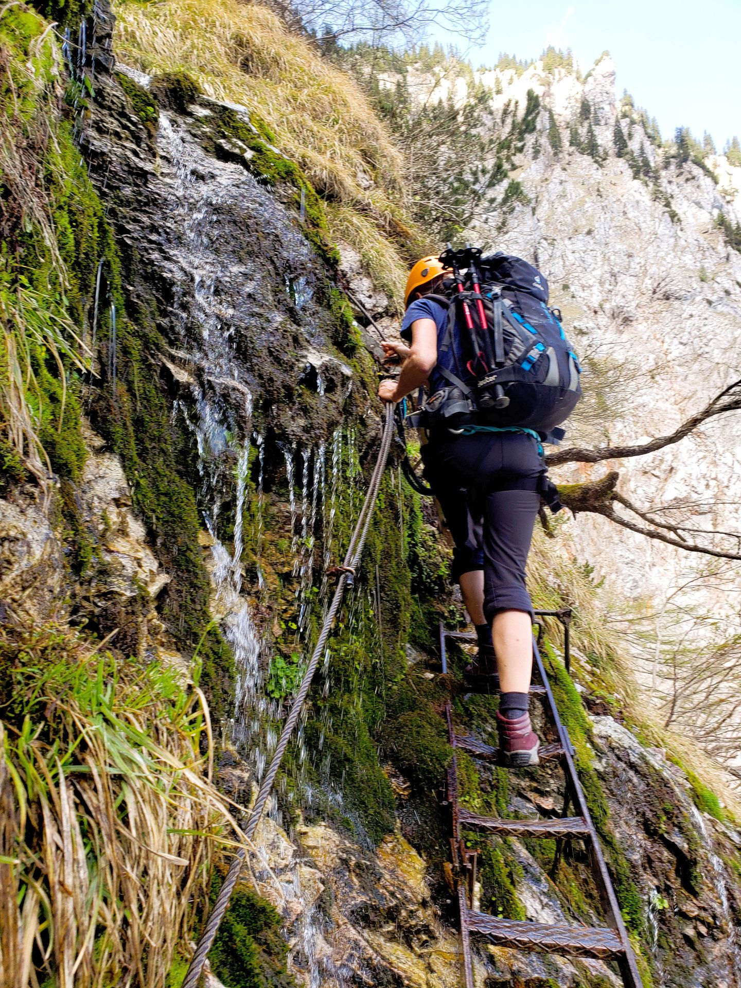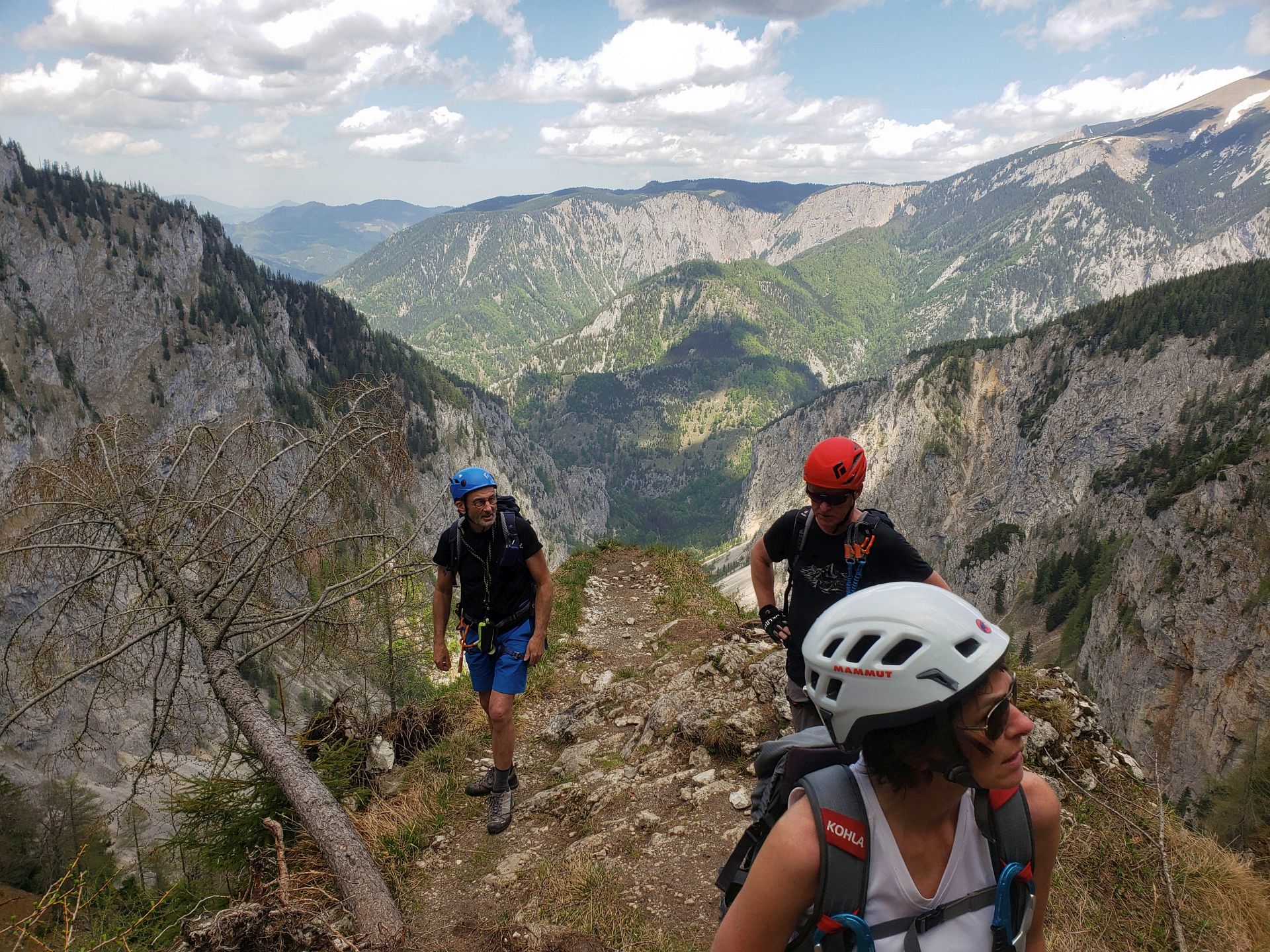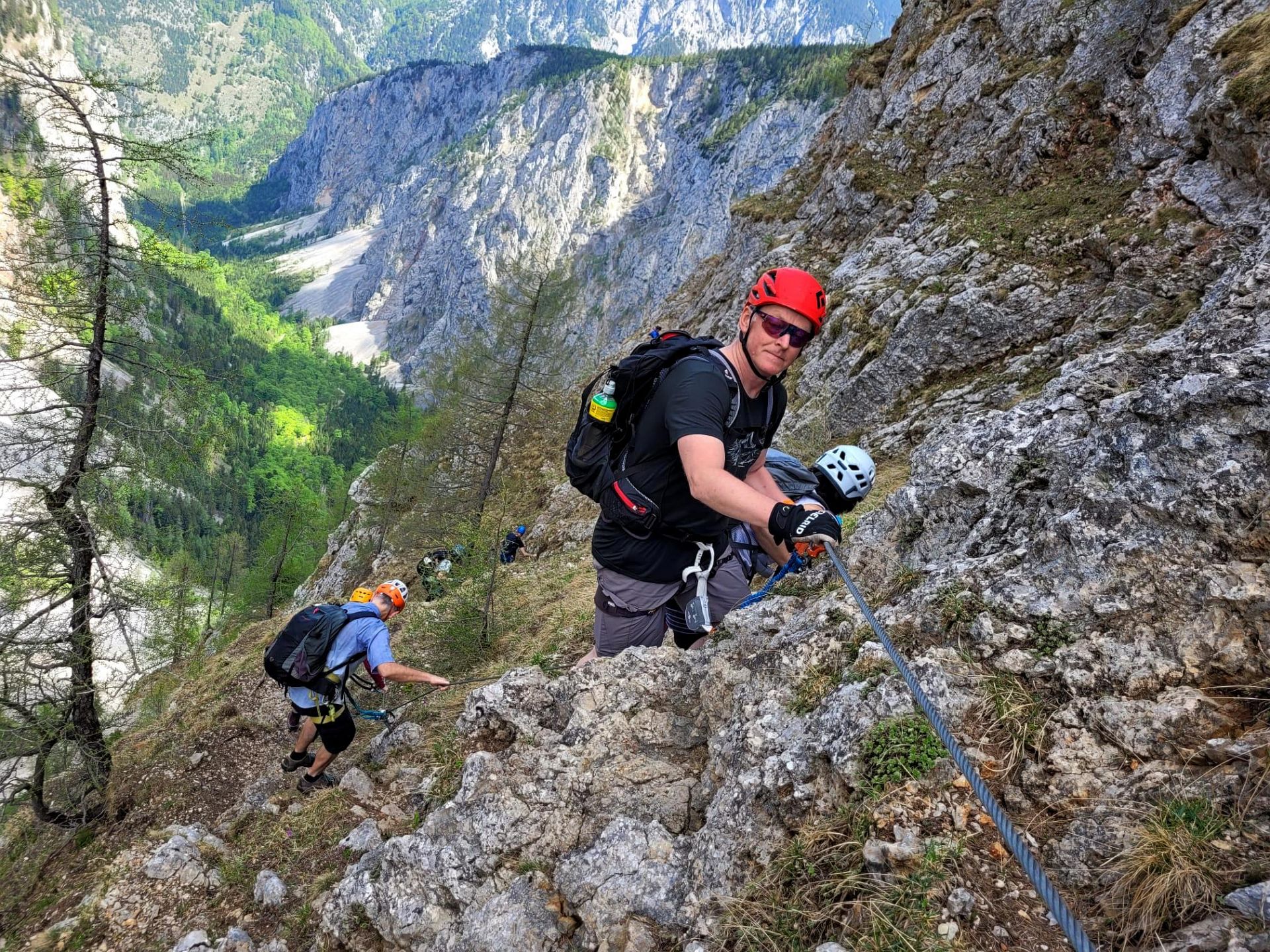 Wir haben eine wunderschöne Klettersteigtour auf die Rax unternommen. Auf geschichtsträchtigen Steigen – Gaislochsteig (inklusive Duschvergnügen im Wasserfall), über den Gustav-Jahn-Steig rüber zum oberen Teil des AV-Steiges bis zur Höllentalaussicht. Es war wunderschön dort oben zu rasten und sich für den Abstieg etwas zu stärken. Ein Teil der Gruppe ist mit Ernst über den gesamten Wachthüttelkamm wieder zurück ins Höllental abgestiegen. Die anderen haben noch gemeinsam mit Gottfried den Teufelsbadstuben-Steig nach unten mitgenommen.