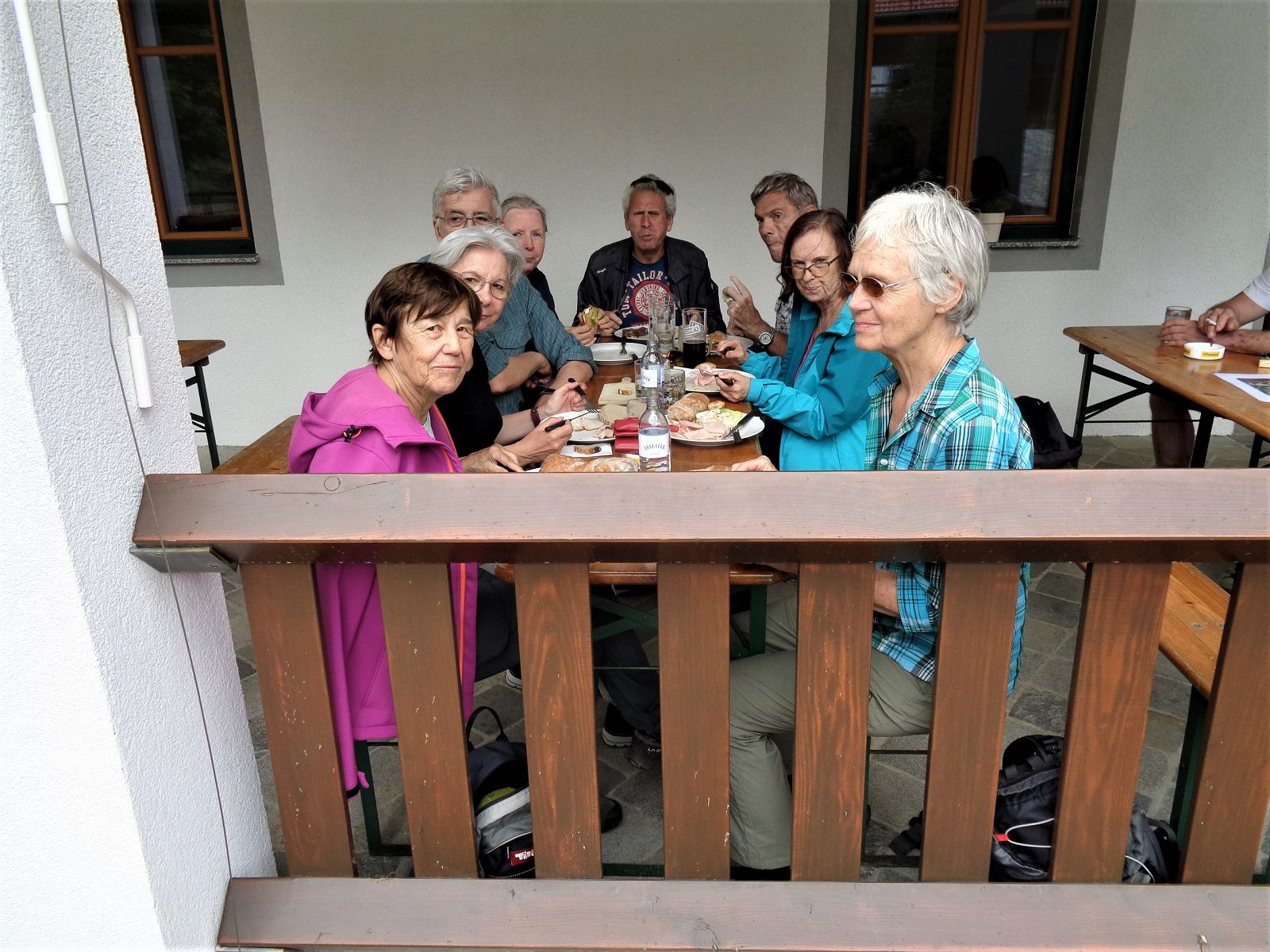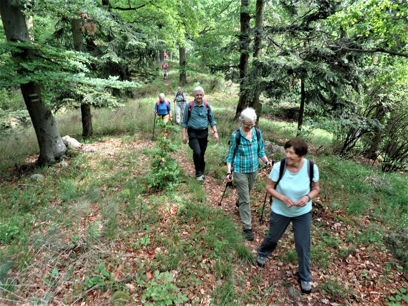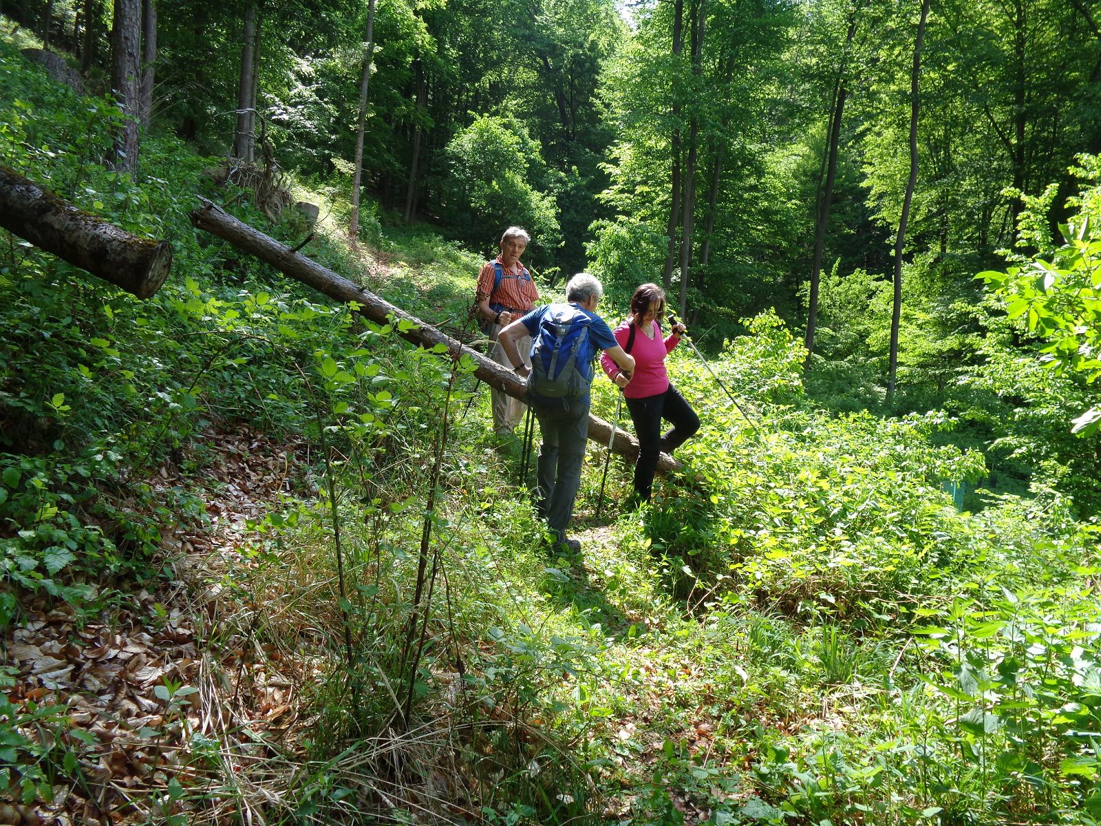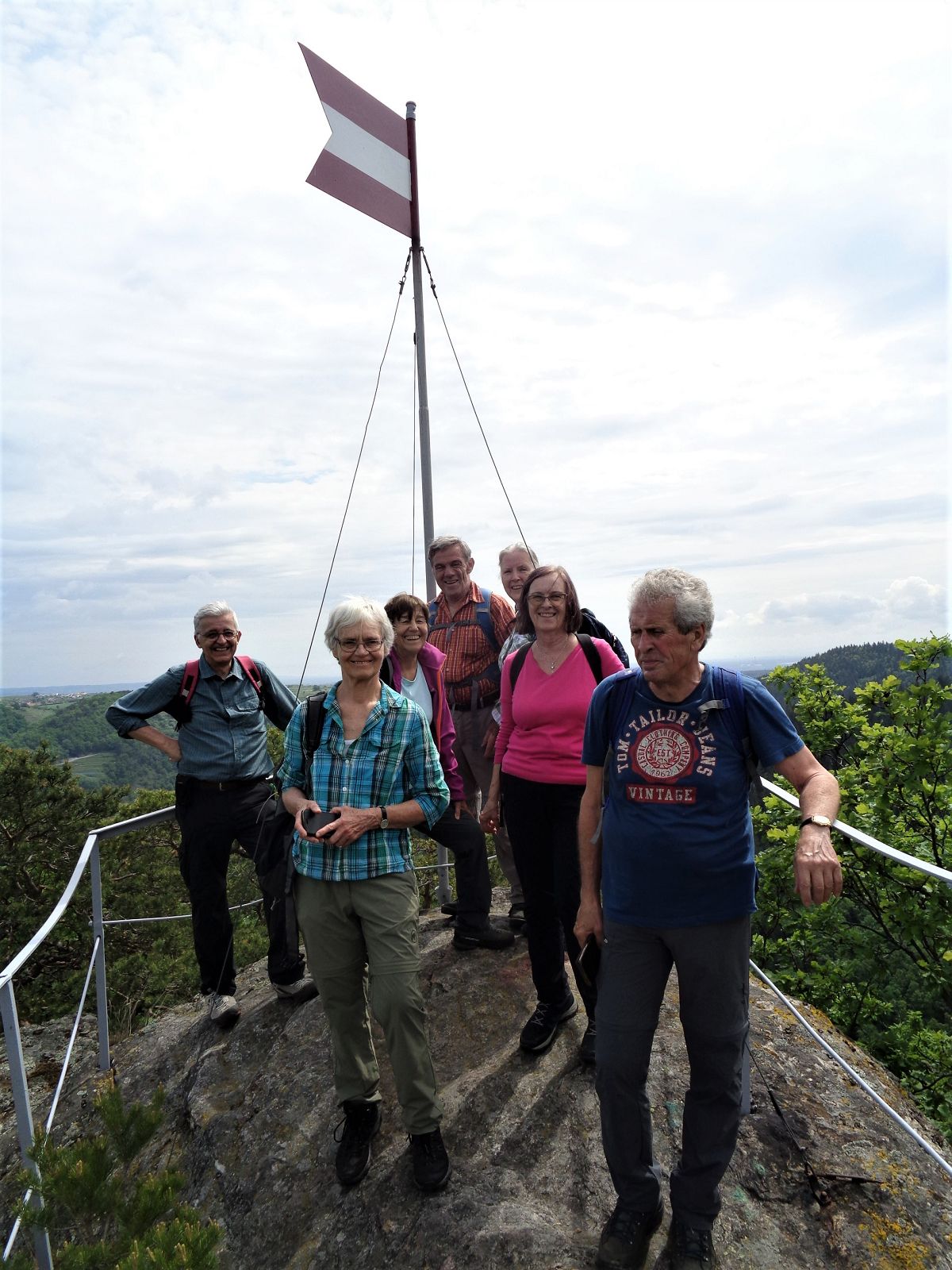 Von Senftenberg starteten wir unsere Wanderrunde auf den Hiesberg. Der steile Anstieg zur sogenannten Hiesbergwarte – eine besteigbare Felsformation mit schöner Aussicht – geht dann in gemütlichere Steigung über. Der Gipfel, der im letzten Teil des Anstieges schon weg- und markierungslos ist, ist von der „Warte“ noch weit entfernt. Der Abstieg auf einer anderen Route schloss unsere Rundtour in Senftenberg ab. Eine einsame Tour, die außer im Wartenbereich wenig begangen sein dürfte. Da eine Zeitspanne übrig war („Heurigenöffnungszeit“), besichtigten wir noch die Ruine Senftenberg. Der nette Heurige, der im Ortsteil Reichaueramt liegt, war dann der Abschluss unseres Wandertages.