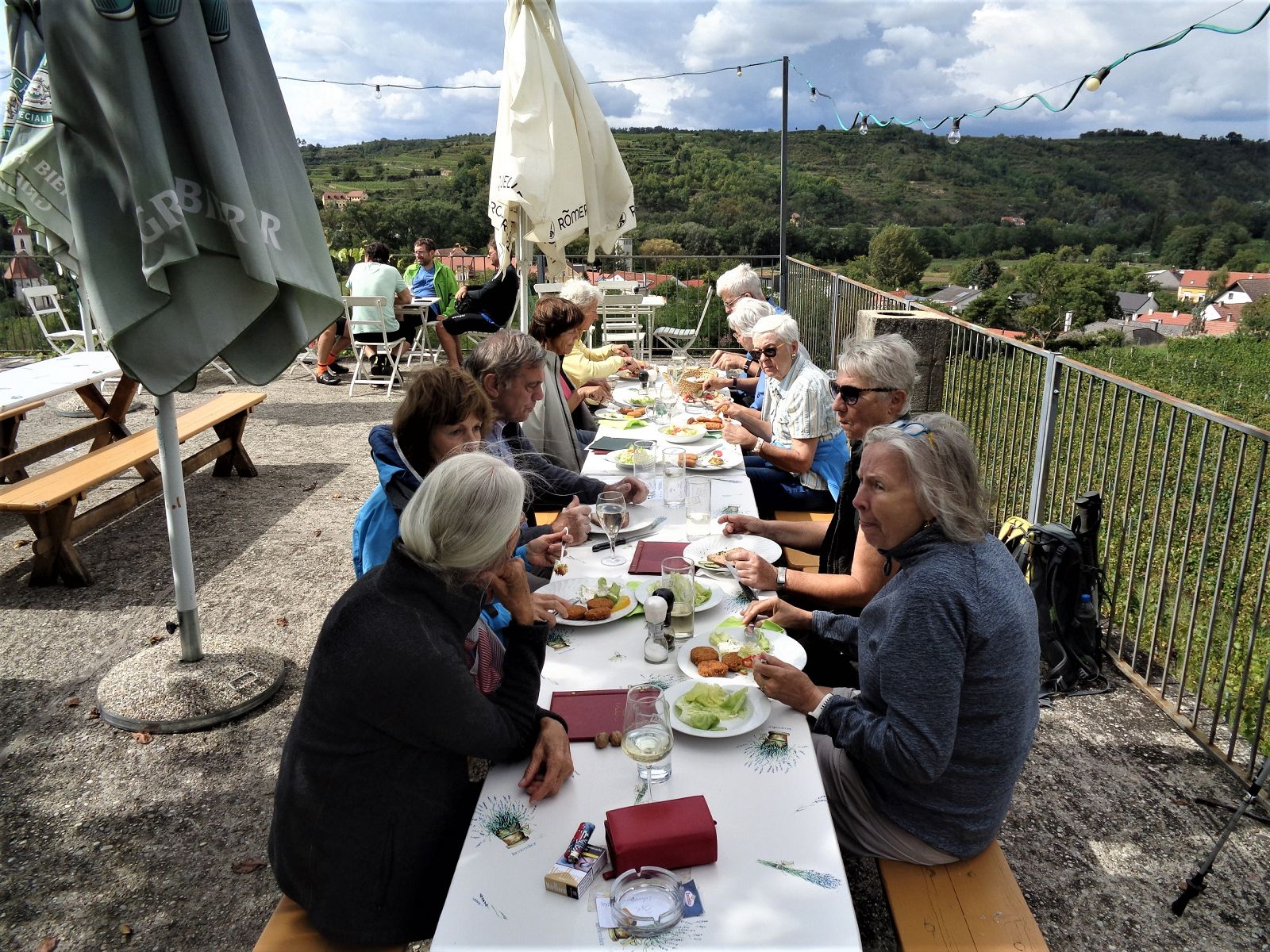 Zum Start dieses Ausflugstages besichtigten wir das Fassbinderei- und Weinbau-Museum in Straß. Anschließend wanderten wir auf den Geißberg mit dem steinernen Kreuz. Nach einer kurzen Rast war das nächste Ziel der Heiligenstein mit der Kamptalwarte. Das Wetter war zum Wandern ideal, nur die Aussicht war etwas getrübt. Weiter ging es bergab in die Zöbinger Kellergasse, wo uns ein netter Heuriger zu einer verspäteten Mittagspause „zwang“. Nach dieser bodenständigen Stärkung führte uns der Weg durch Weingärten zurück nach Straß. In der Vinothek wurde noch zur „häuslichen Vorratsergänzung“ eingekauft.