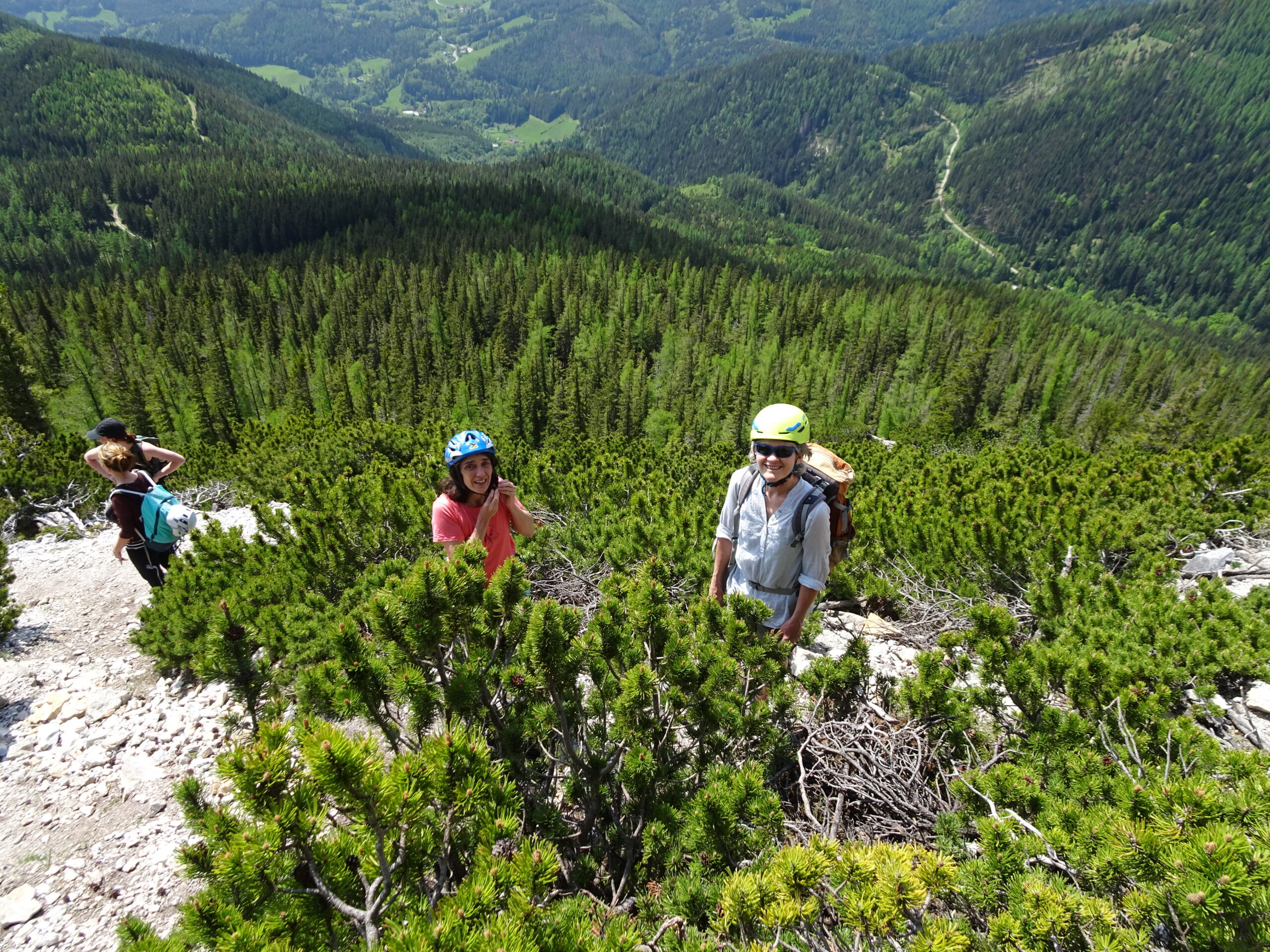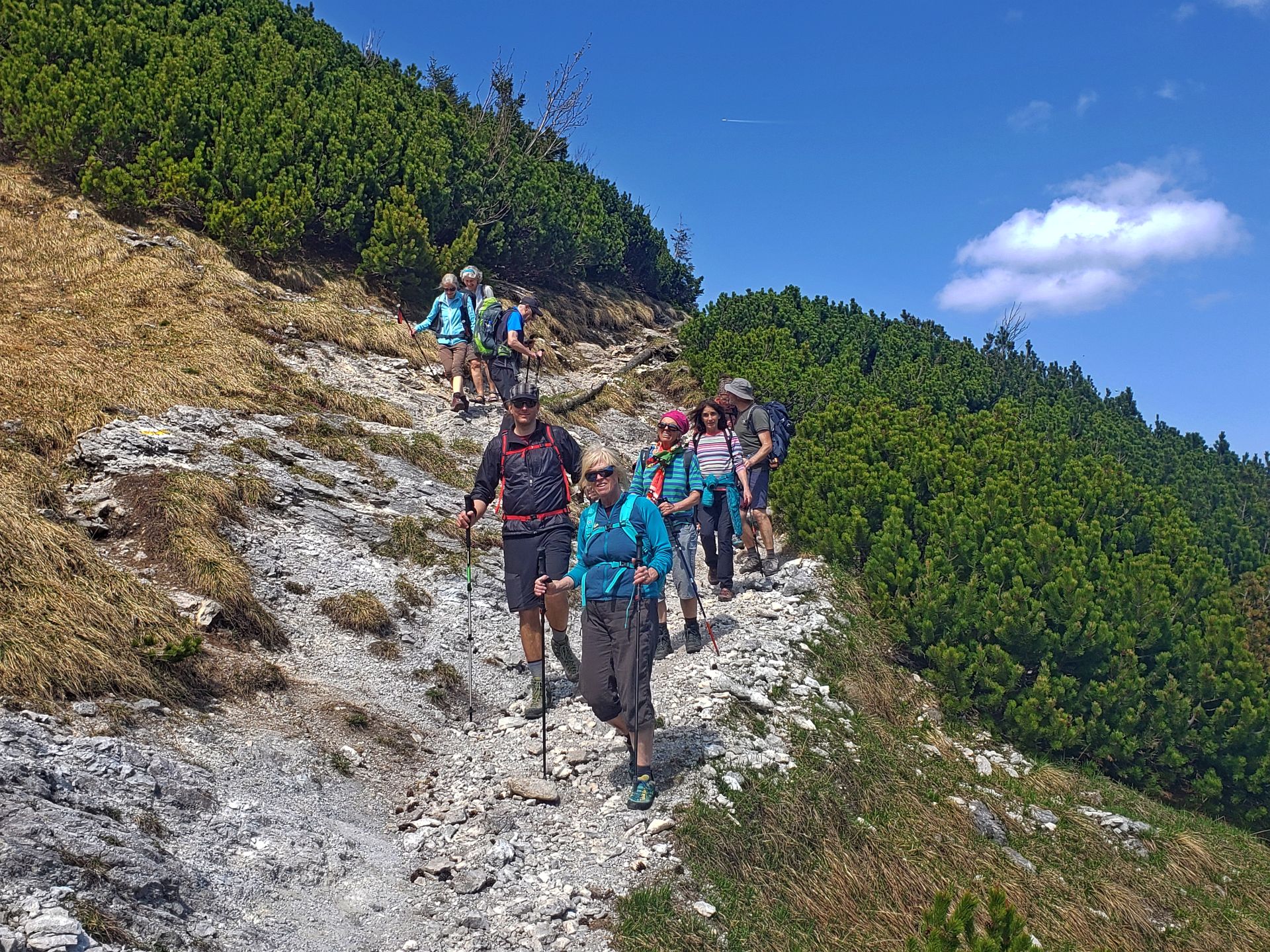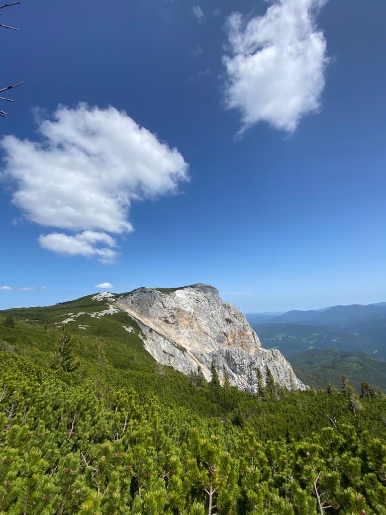 Nachdem es beim ursprünglich geplanten Termin 6.Mai das Wetter nicht so gut mit uns meinte und wir eine äußerst nette Tour ausgehend von Greifenstein zur Redlingerhütte mit Regenschirmen u.ä. machten, hatten wir am 27. Mai hervorragende Bedingungen um die Rax zu ersteigen. Ausgehend von der Grießleiten gingen wir gemeinsam bis zum Bachinger Bründl. Dort teilten wir uns. Christina, Lotte und Martin gingen unter der Begleitung von Ernst über den Königschusswandsteig. Heidi, Brigitte, Ingrid, Nadja und Erich gingen mit Gottfried über den Preinerwandsteig auf das Raxplateau. Nach einem Zusammentreffen auf der Neuen Seehütte sind wir über den Göbel-Kühn-Steig wieder in die Grießleiten gewandert. Fazit: Wetter super, Teilnehmer super-nett, beste Mehlspeise, Eis und Kaffee in der Konditorei in Reichenau.