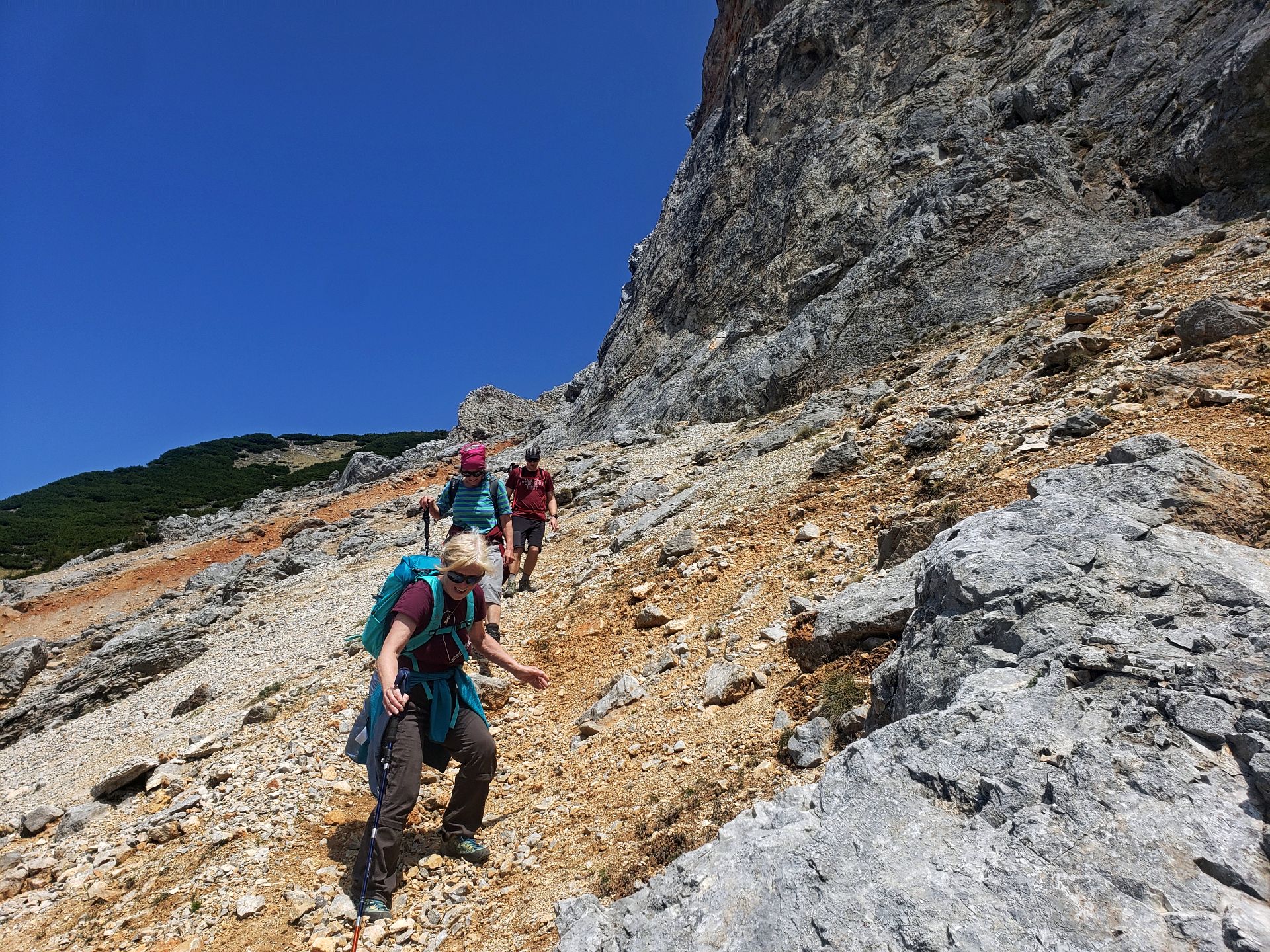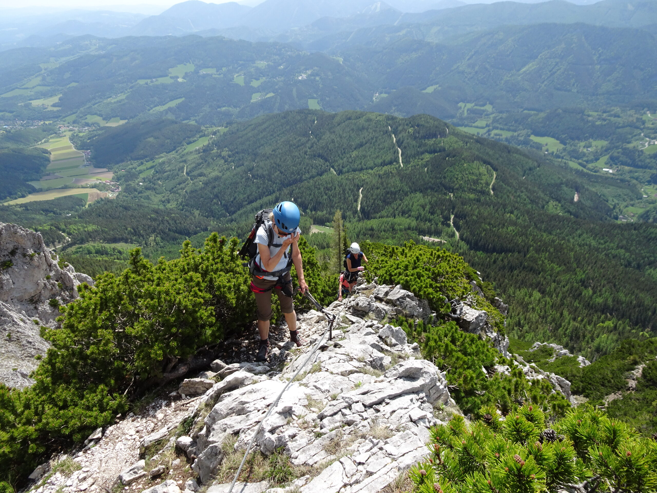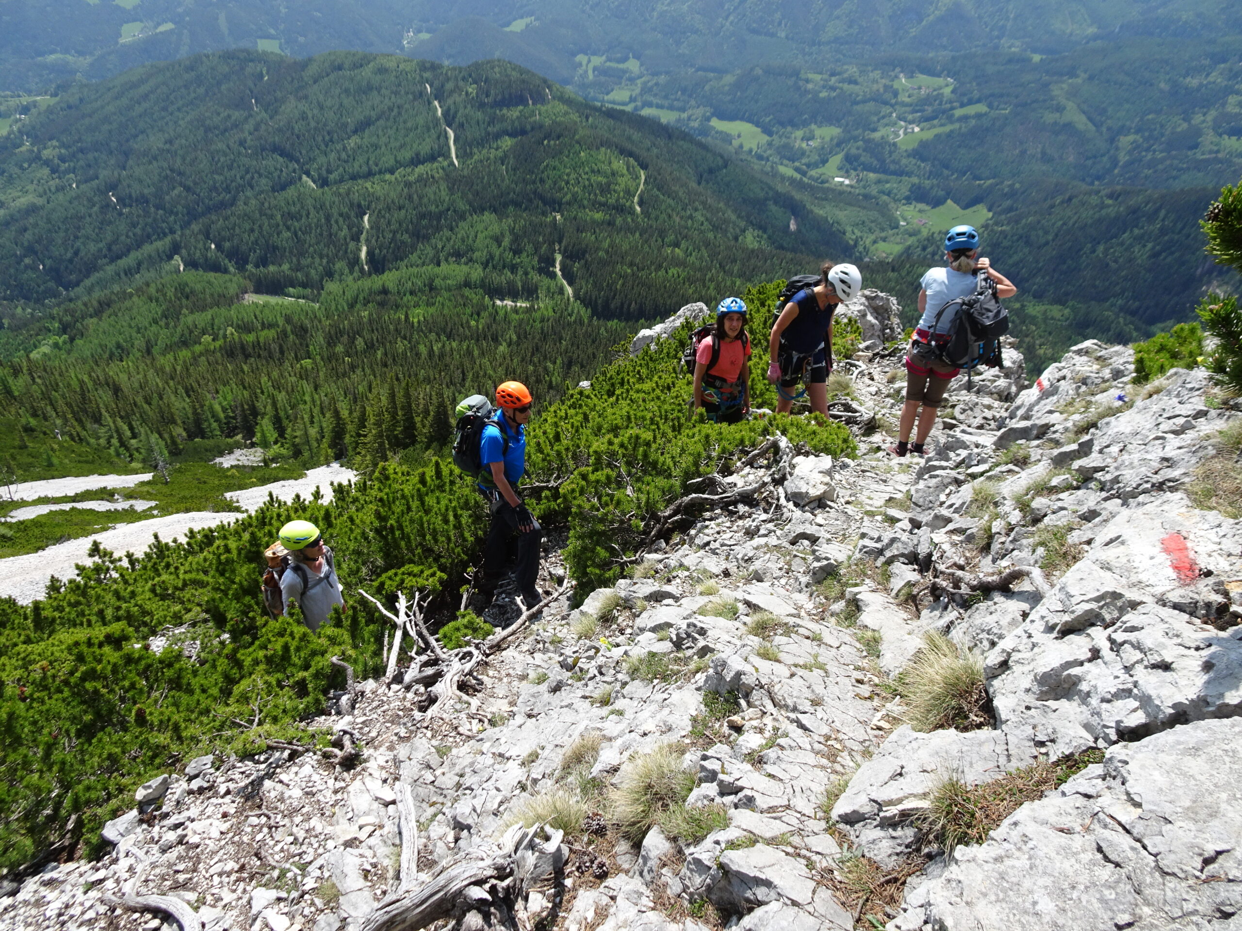 Nachdem es beim ursprünglich geplanten Termin 6.Mai das Wetter nicht so gut mit uns meinte und wir eine äußerst nette Tour ausgehend von Greifenstein zur Redlingerhütte mit Regenschirmen u.ä. machten, hatten wir am 27. Mai hervorragende Bedingungen um die Rax zu ersteigen. Ausgehend von der Grießleiten gingen wir gemeinsam bis zum Bachinger Bründl. Dort teilten wir uns. Christina, Lotte und Martin gingen unter der Begleitung von Ernst über den Königschusswandsteig. Heidi, Brigitte, Ingrid, Nadja und Erich gingen mit Gottfried über den Preinerwandsteig auf das Raxplateau. Nach einem Zusammentreffen auf der Neuen Seehütte sind wir über den Göbel-Kühn-Steig wieder in die Grießleiten gewandert. Fazit: Wetter super, Teilnehmer super-nett, beste Mehlspeise, Eis und Kaffee in der Konditorei in Reichenau.