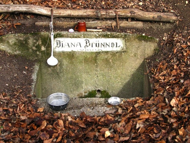 - Dianabründl (374 m) am Südhang des Hochbruckenberges (497 m)
