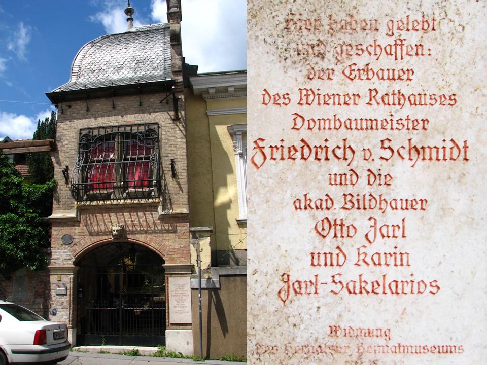 In der Andergasse findet man eine Reihe schöner Villen aus der zweiten Hälfte des 19. Jahrhunderts, einst vom wohlhabenden Bürgern als Sommersitze bewohnt. Bei der Hausnummer 8 trifft man auf ein besonders bemerkenswertes Gebäude, die sogenannte Bärenvilla, in der der Architekt Friedrich Schmidt (1825 – 1891) wohnte. Das 1860 erbaute Weinhauerhaus wurde von Friedrich Schmidt erworben und umgebaut. Es ist nach einem im Hof aufgestellten Tierskulpturmodell von Bildhauer Otto Jarl (1856-1915), dem Schwiegersohn des Architekten, benannt. Schmidt war der bedeutendste Kirchenbauarchitekt der Donaumonarchie und Dombaumeister des Wiener Stephansdoms. Sein Fachgebiet war die gotische Formensprache. Sein größtes und bedeutendstes Werk in Wien ist das Wiener Rathaus (1872 – 1883), ein im neugotischen Stil errichteter Profanbau. In Klosterneuburg hat Schmidt die Stiftskirche renoviert und ihr so ihr heutiges Aussehen verliehen.