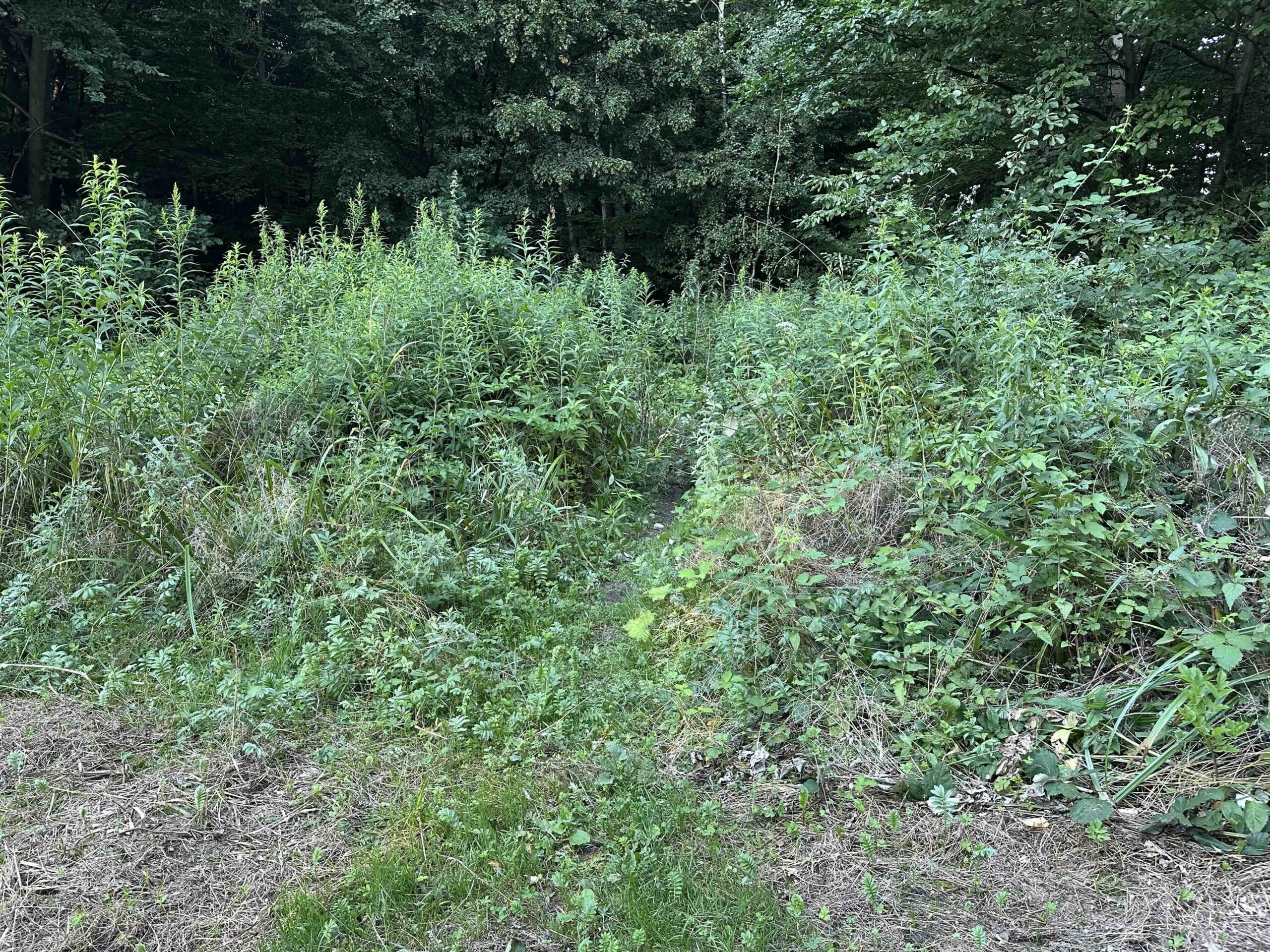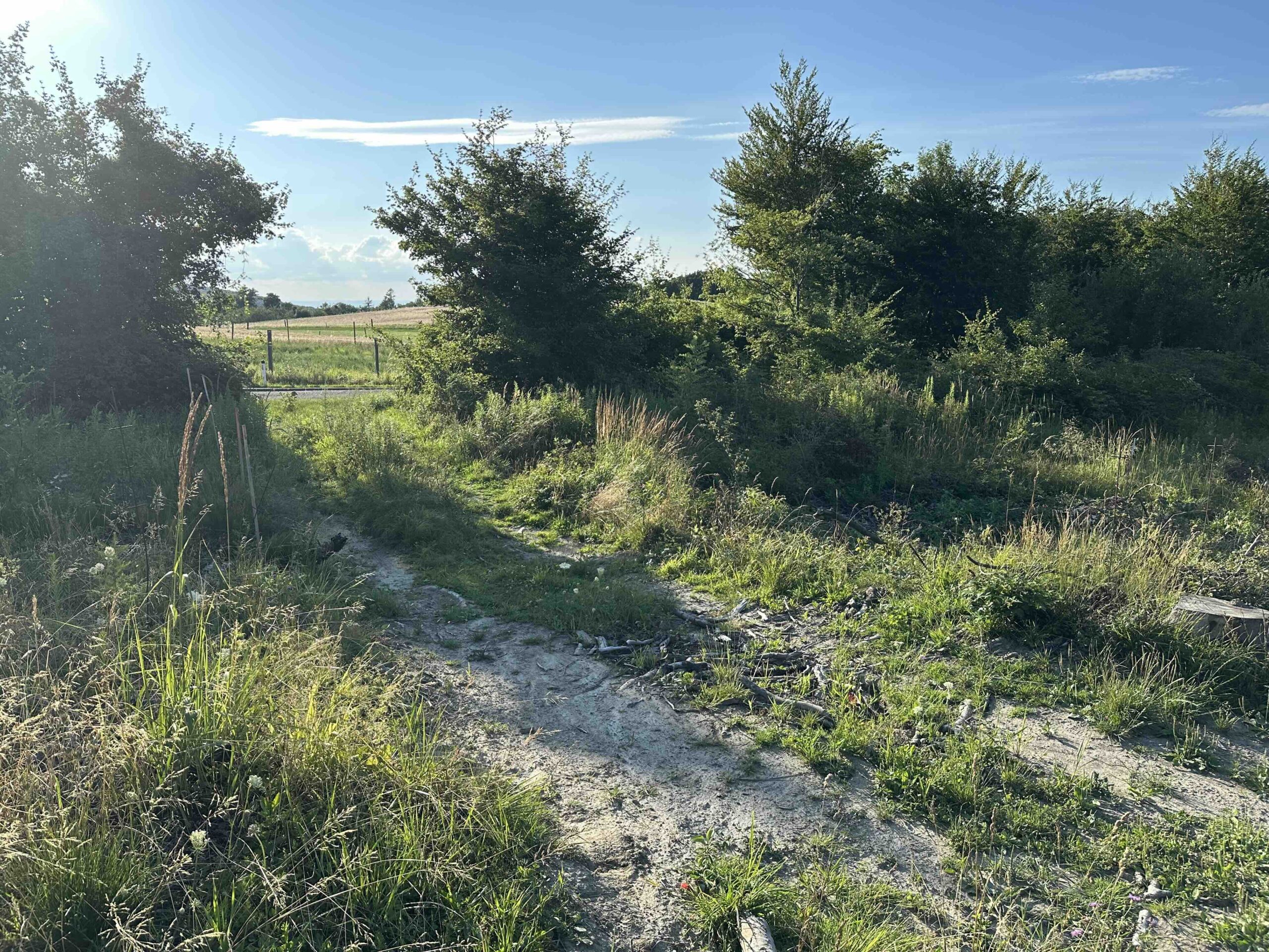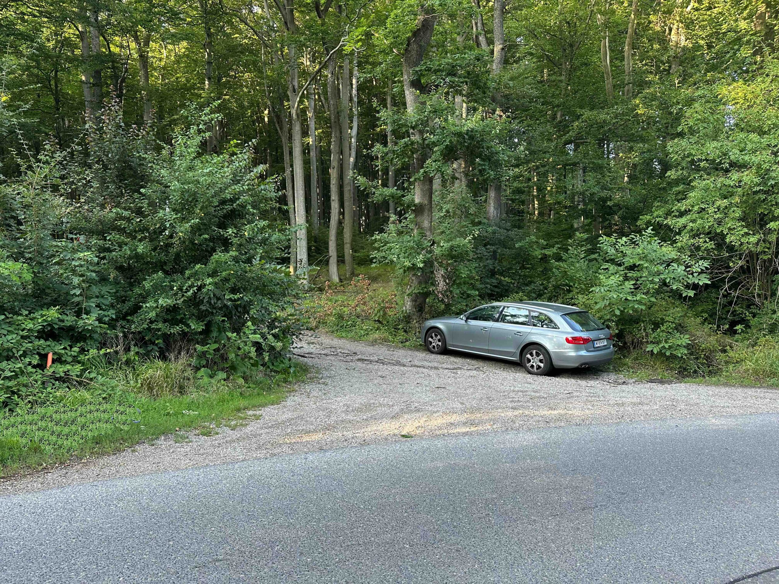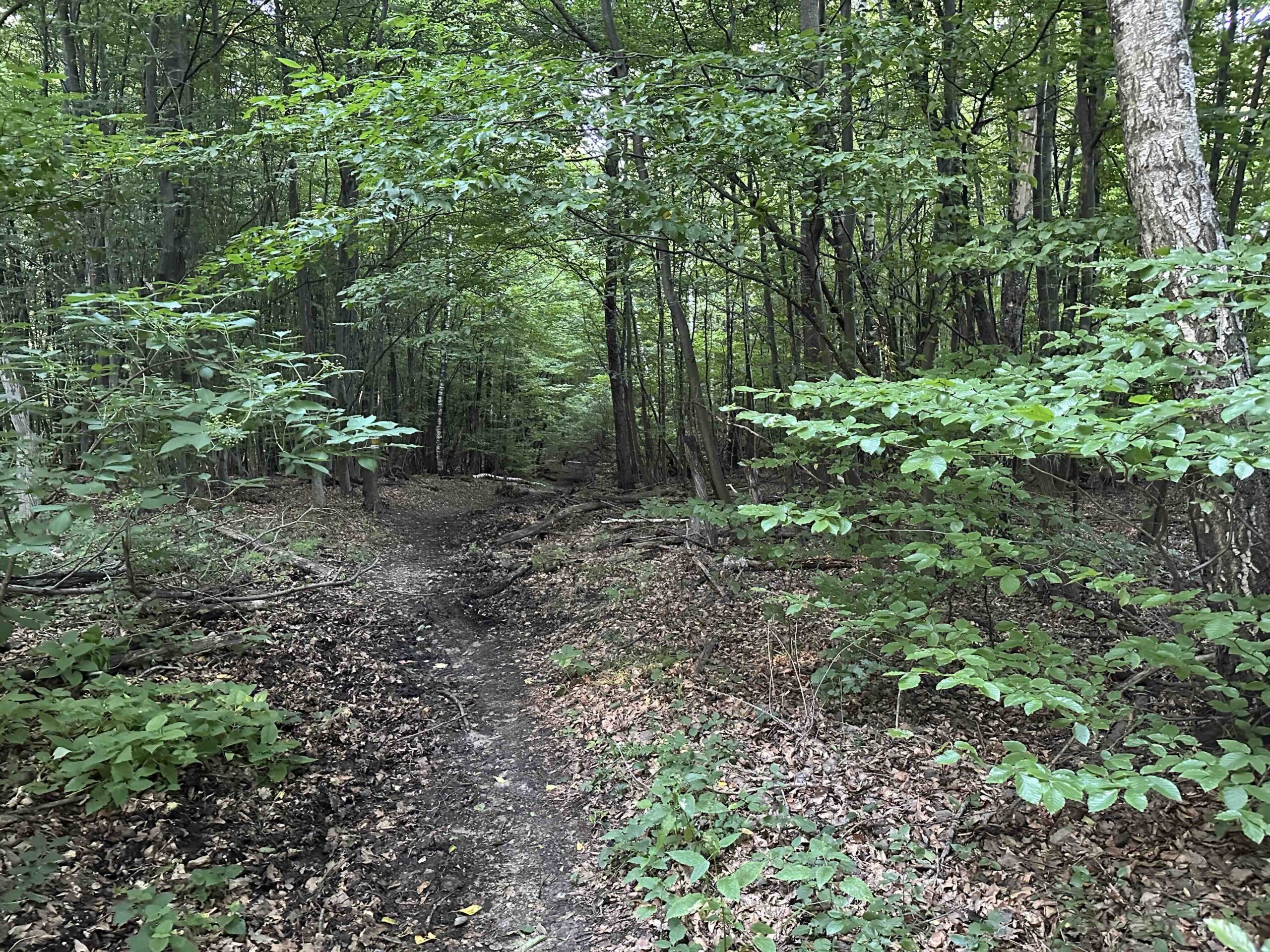 In der Kurve nach der Abzweigung zum Hängenden Stein, dem Wegknoten Hängender Stein, führt links eine Forststraße in den Wald. Dort geht nach wenigen Metern rechts und dann gleich links ein schmaler Pfad den Berg hinauf. Diesem folgt man bis er wieder auf die Forststraße trifft. Nun geht man weiter ein Stück auf der Forststraße bis in der ersten Linkskurve auf der rechten Seite, etwas versteckt, ein schmaler Pfad abzweigt.