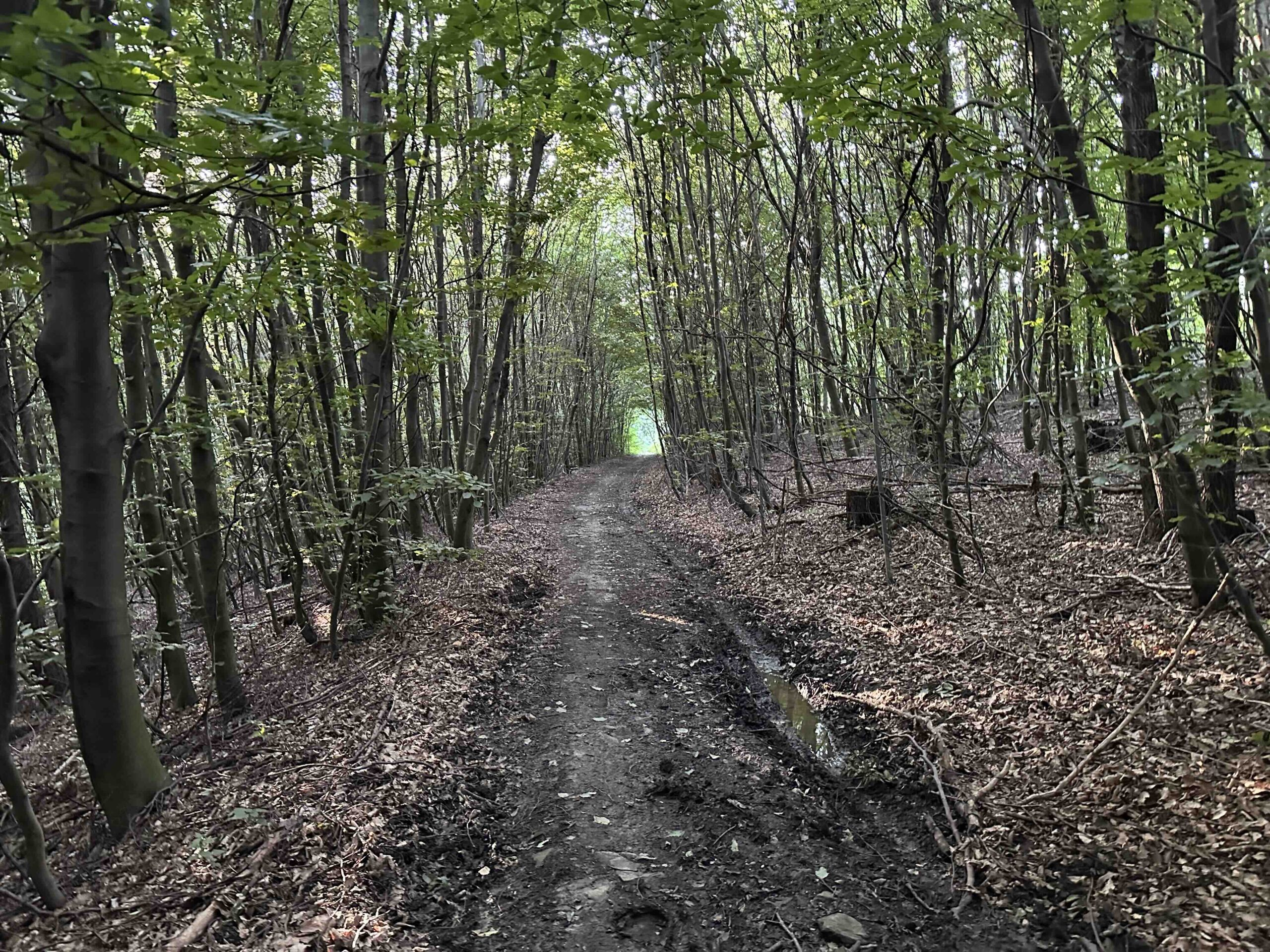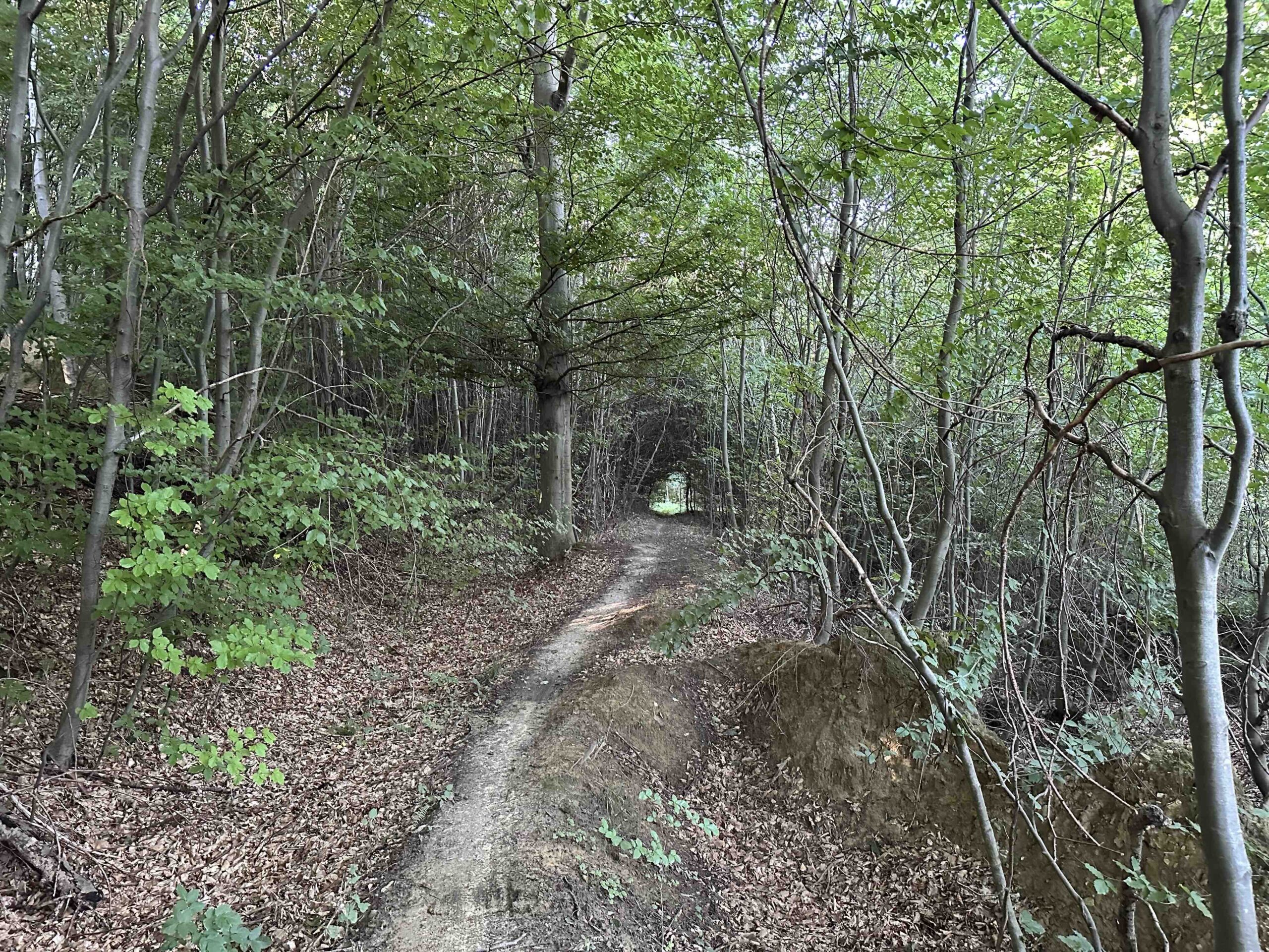 Hier kann man der grünen Markierung weiter folgen, entweder links in den Wald Richtung Königstetten oder geradeaus entlang der Forststraße Richtung Unterkirchbach.