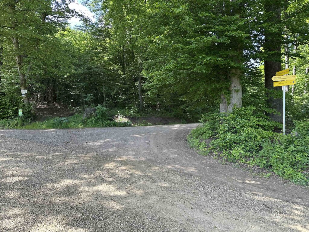 Der Weg startet gegenüber der Kirche und dem Schloß in Hintersdorf. Man folgt zunächst der Oberen Haselbacherstraße Richtung Maria Gugging/Klosterneuburg. Vor dem Ortsschild Haselbach wechselt man etwas versteckt auf einen schmalen Pfad in den Wald.