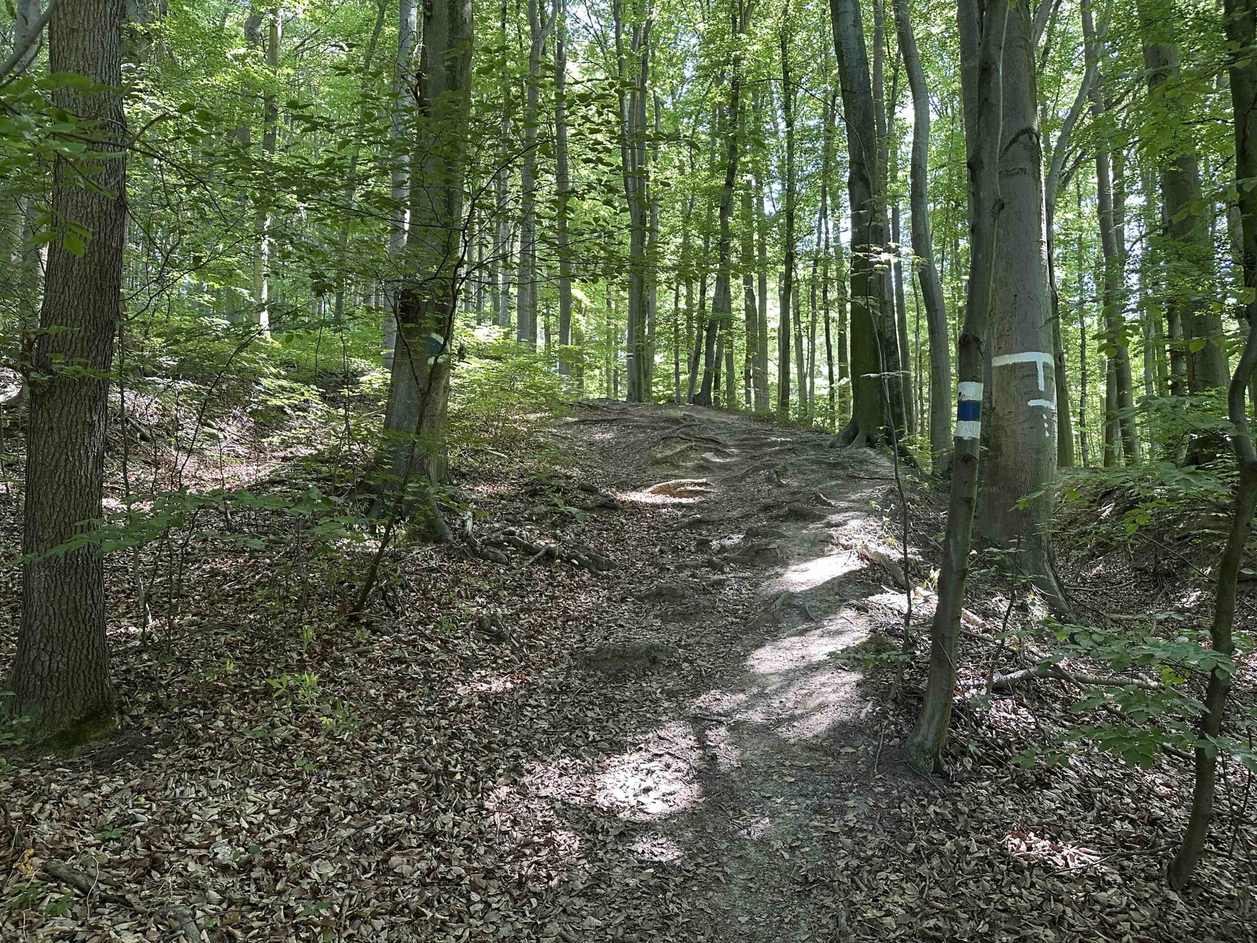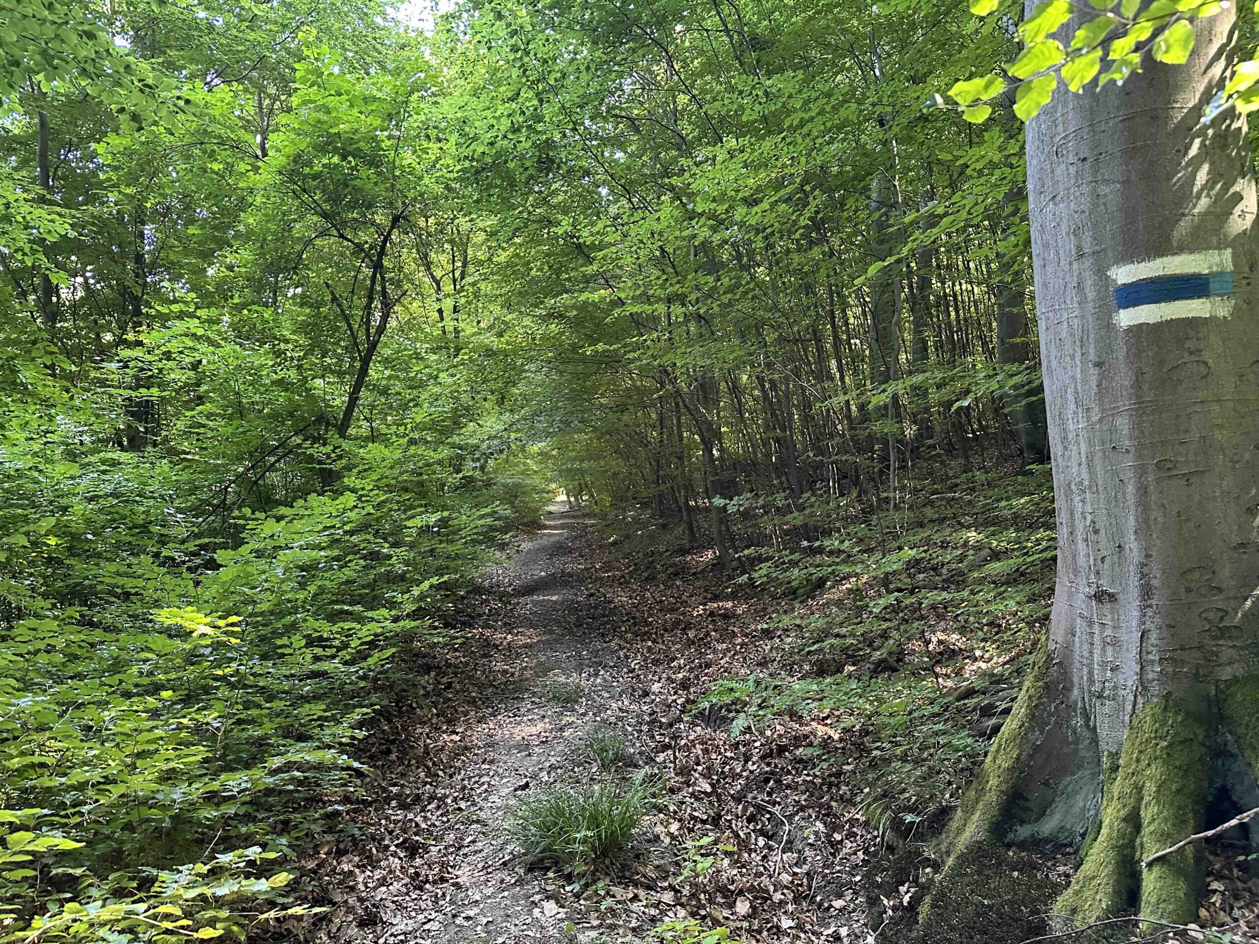 Nach der zweiten Bachquerung geht es geradeaus, etwas versteckt, einen schmalen Pfad weiter, der nach einem kurzen Stück über eine Wiese wieder in den Wald eintaucht. Von nun an geht es steil bergauf über Wurzeln. Zweimal quert man am Anfang die breite Forststraße. Bei der ersten Querung geht der Weg gleich gegenüber weiter, bei der zweiten Querung folgt man der Forststraße ein paar Meter bis es rechts wieder in den Wald hinauf geht. Ab hier verläuft der Weg unterbrechungsfrei oberhalb der Forststraße bis man kurz vor dem Ende wieder auf die Forststraße wechselt. Noch ein kleines Stück auf der Forststraße und man erreicht das ZIel, den Wegknoten Eichenhain.