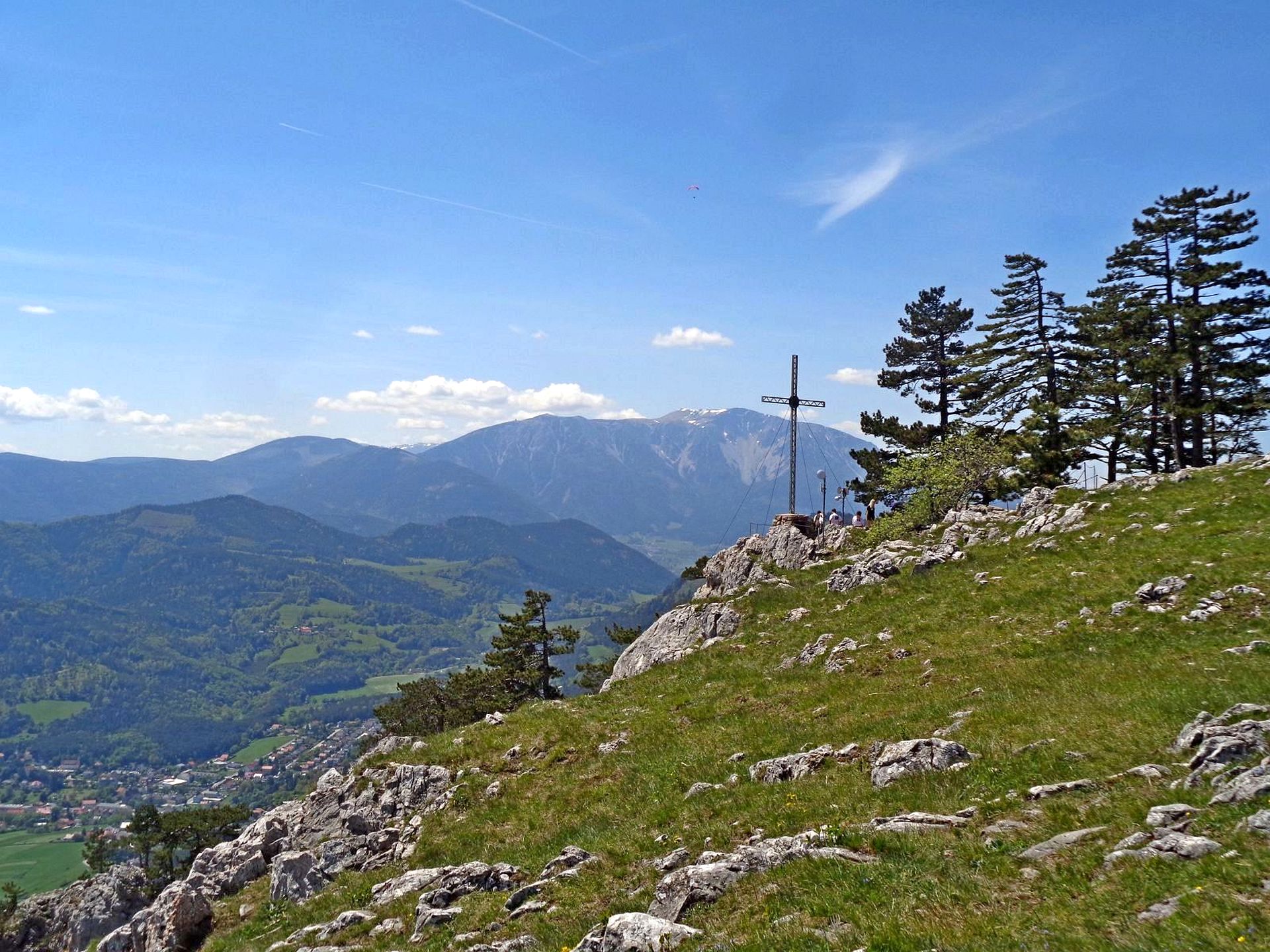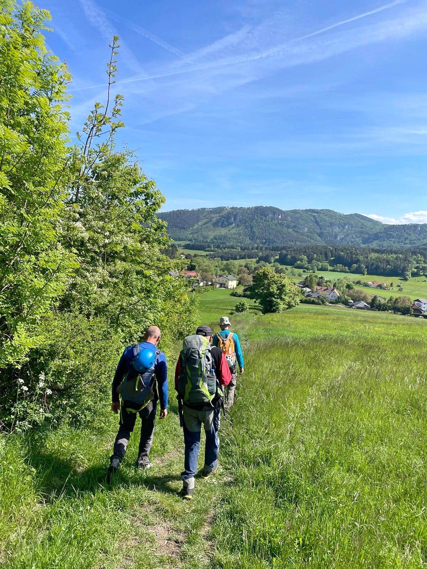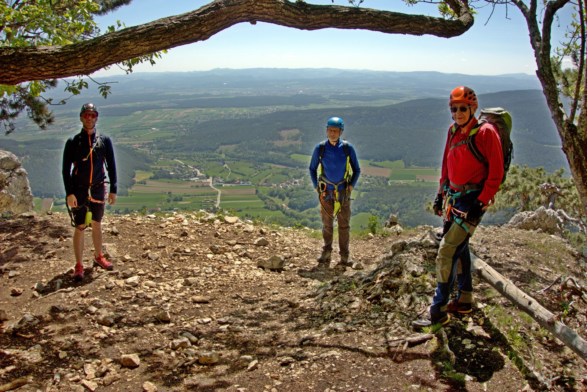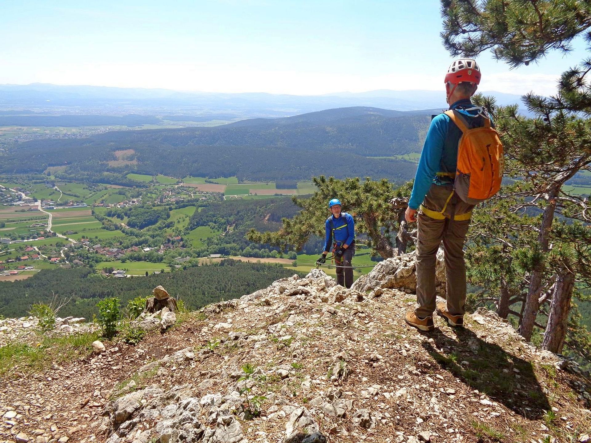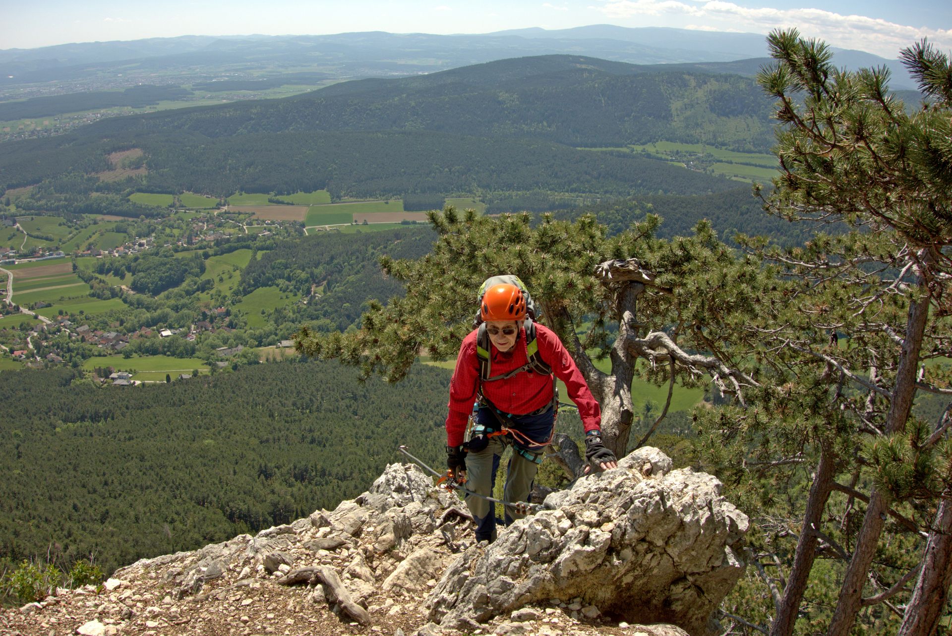 Mit der Bahn gelangten wir gemütlich nach Grünbach um von hier weg in ziemlich genau einer Stunde zum Einstieg dieses C/D Klettersteigs aufzusteigen. Ungewöhnlich für einen Samstagvormittag im Mai waren wir dann beinahe alleine am Steig unterwegs, was uns ein genussvolles, zügiges Durchsteigen erlaubte 🙂