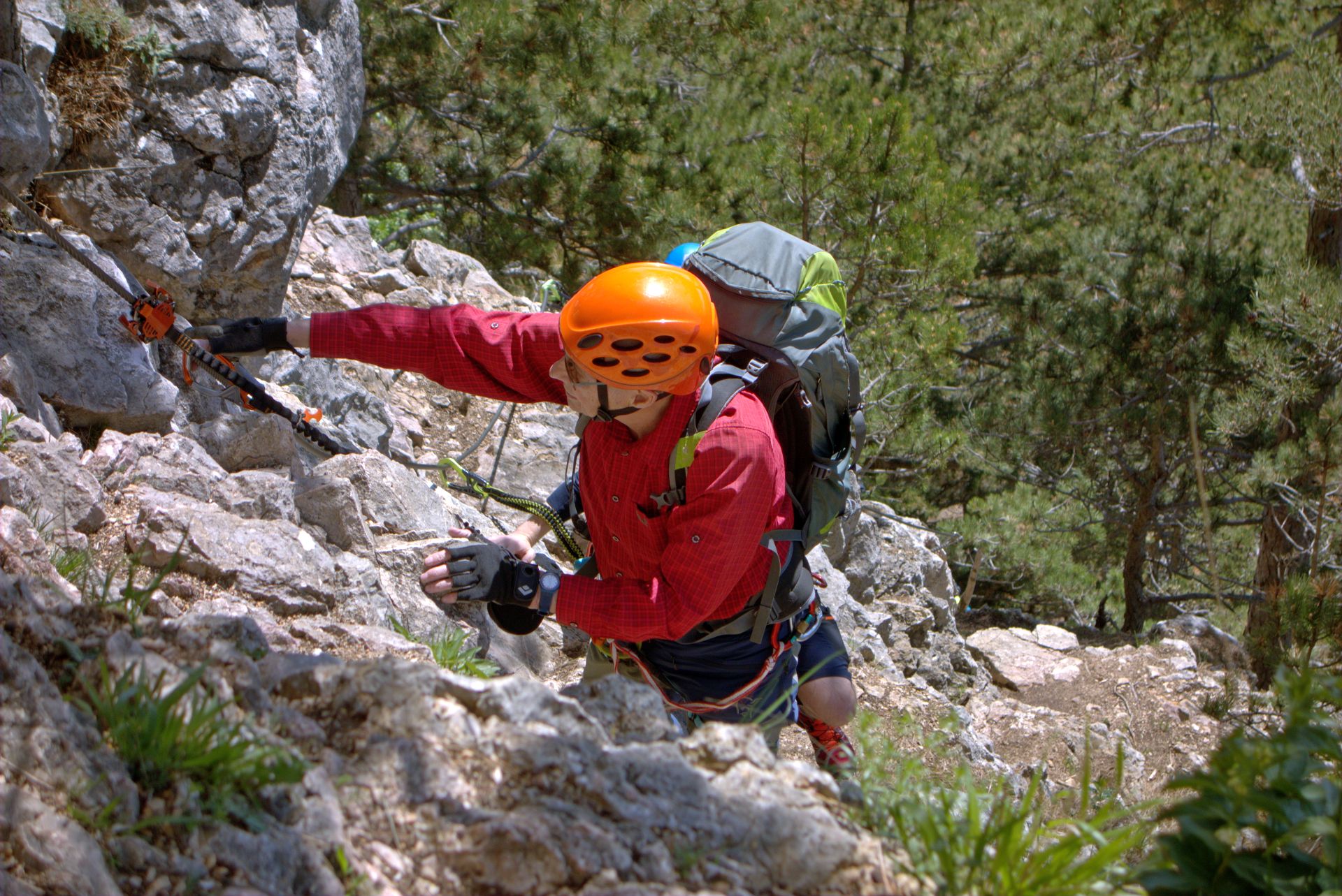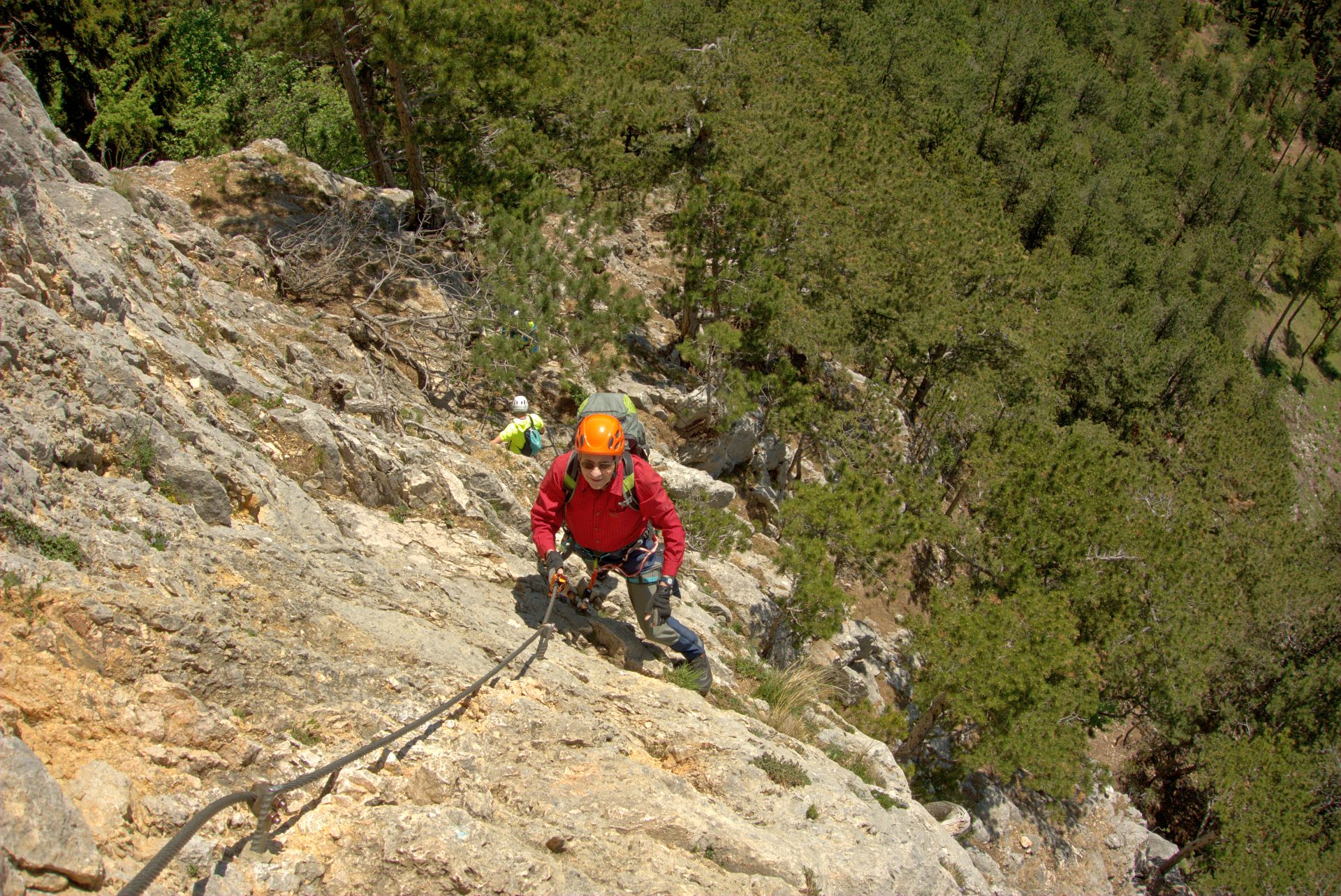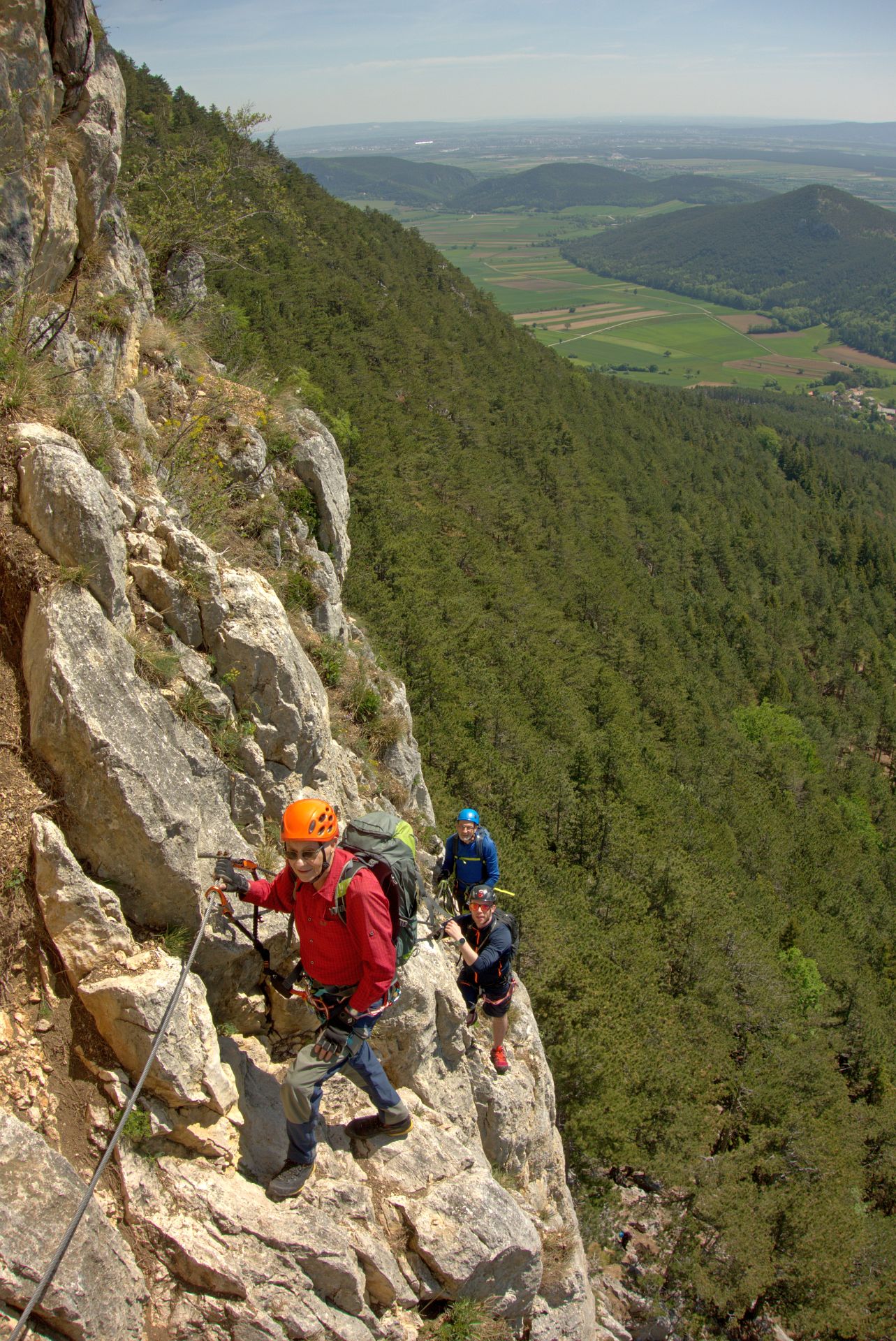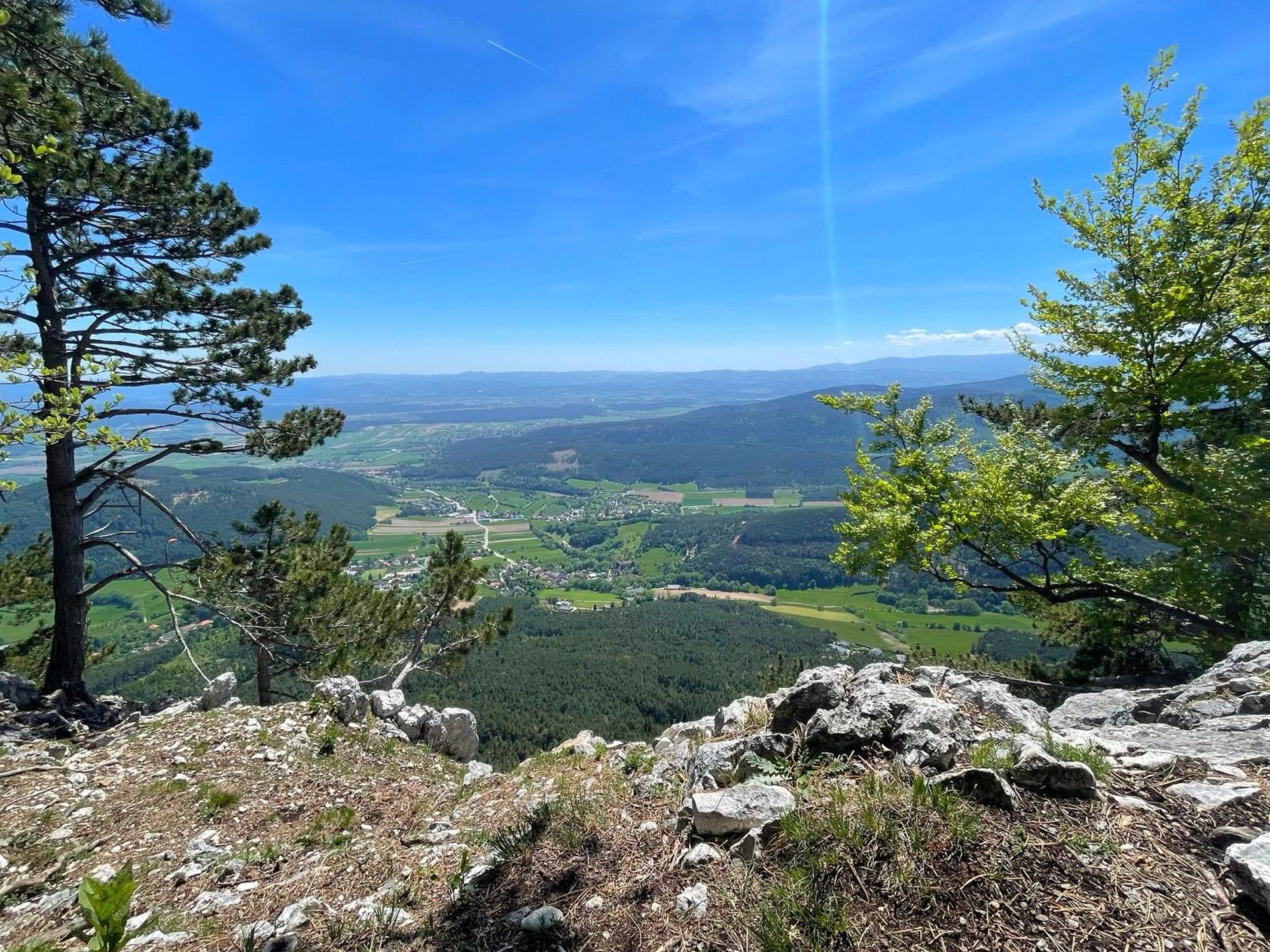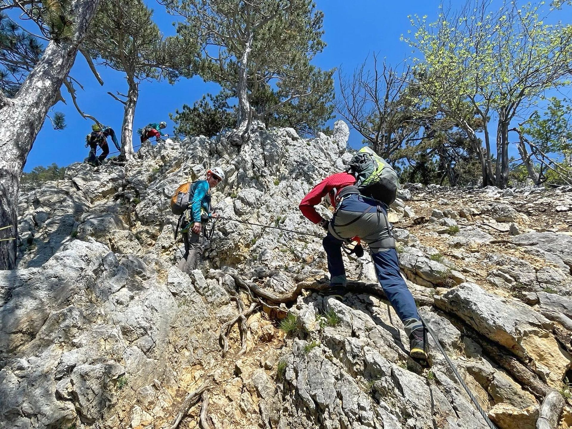 Mit der Bahn gelangten wir gemütlich nach Grünbach um von hier weg in ziemlich genau einer Stunde zum Einstieg dieses C/D Klettersteigs aufzusteigen. Ungewöhnlich für einen Samstagvormittag im Mai waren wir dann beinahe alleine am Steig unterwegs, was uns ein genussvolles, zügiges Durchsteigen erlaubte 🙂