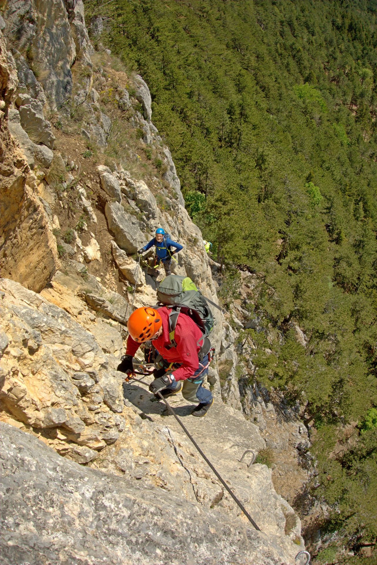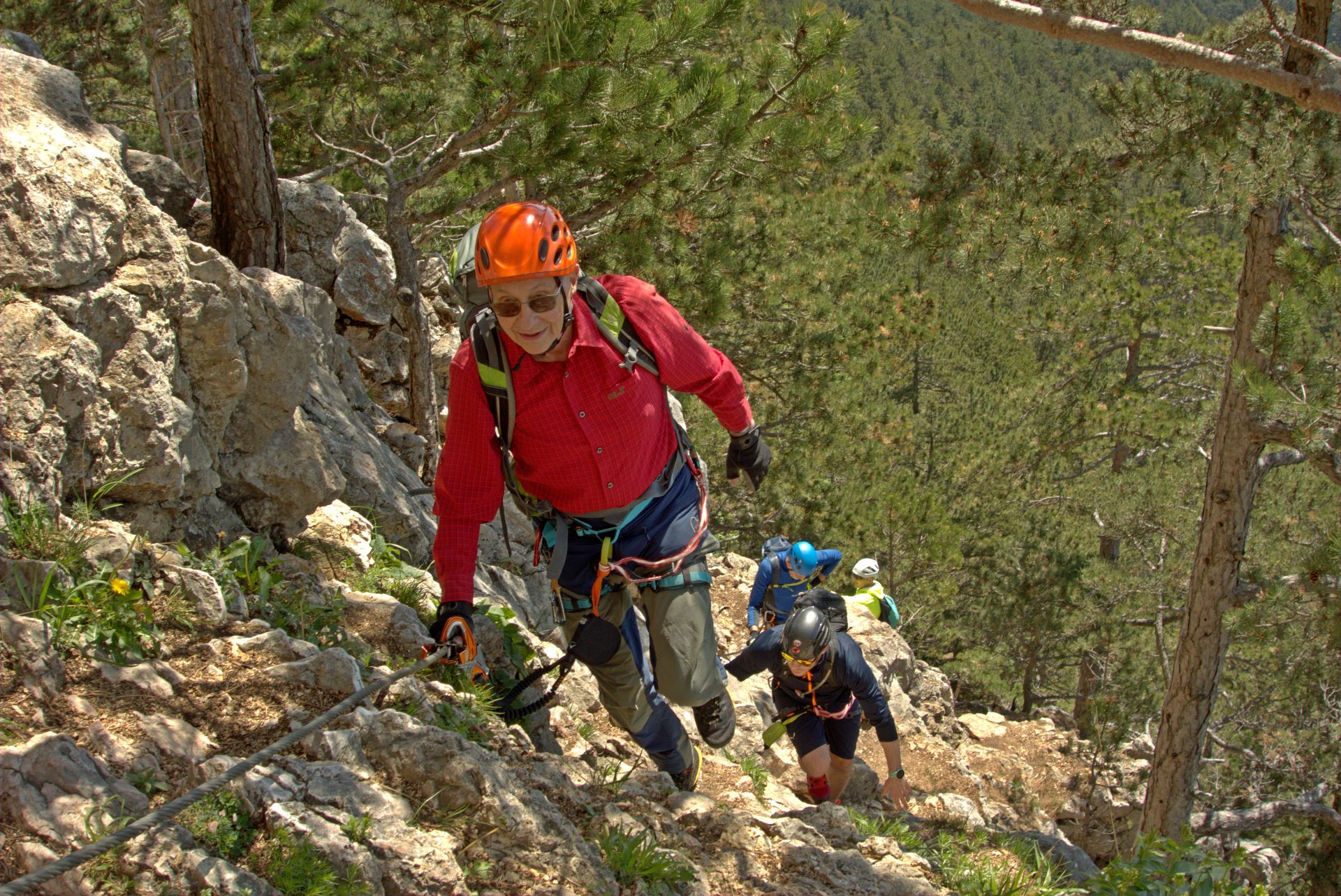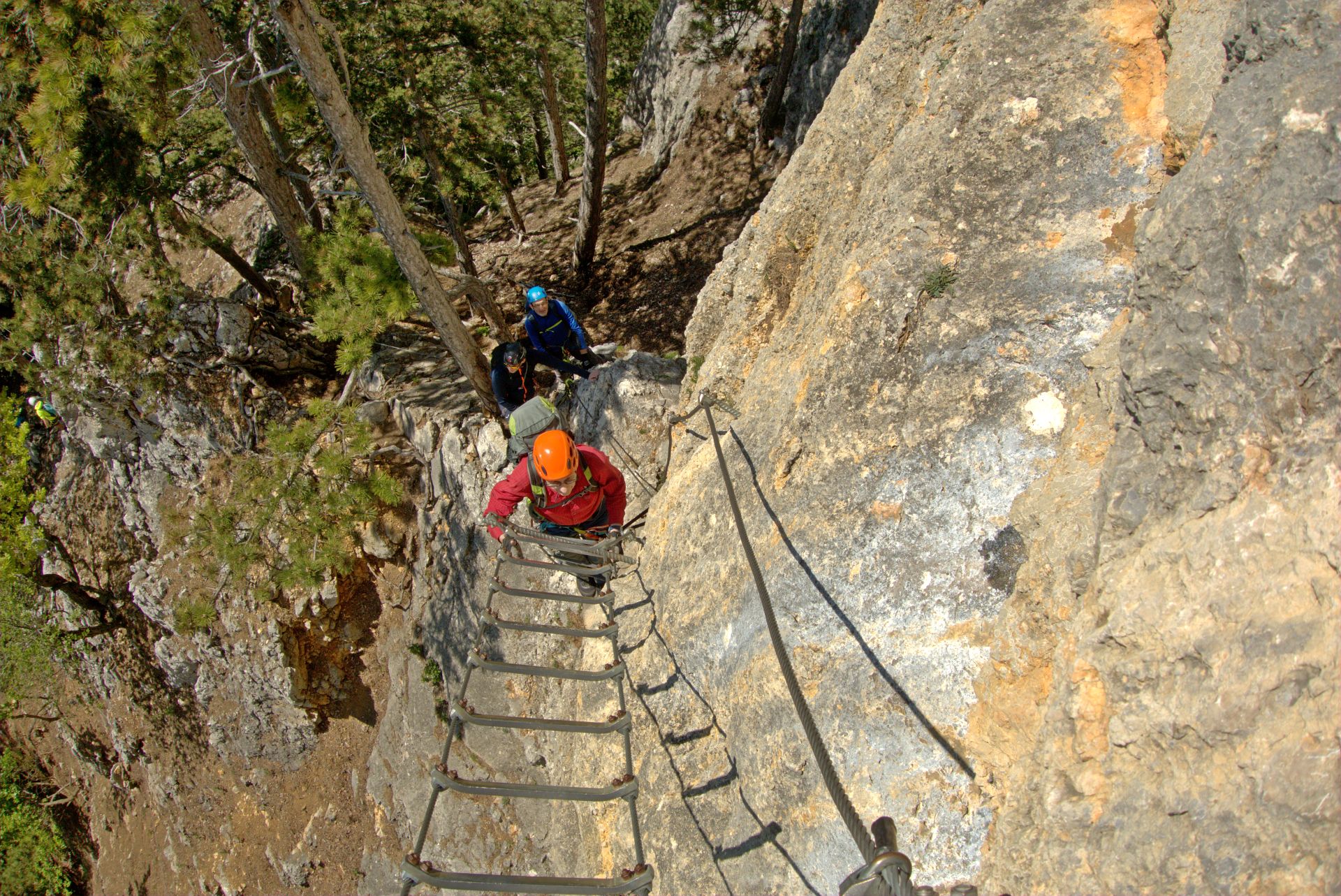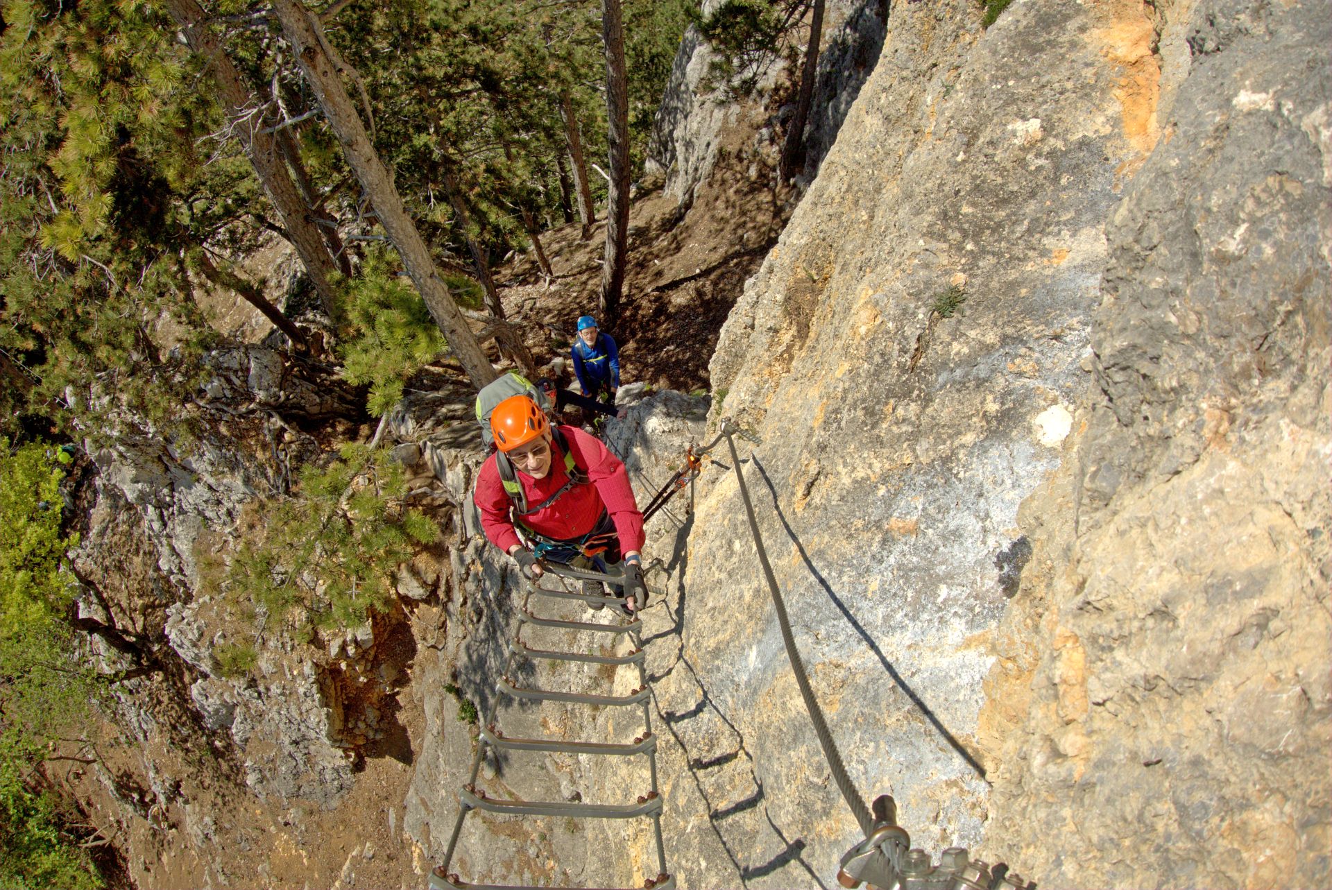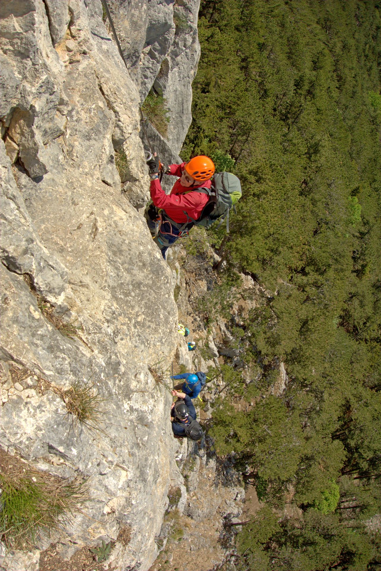 Mit der Bahn gelangten wir gemütlich nach Grünbach um von hier weg in ziemlich genau einer Stunde zum Einstieg dieses C/D Klettersteigs aufzusteigen. Ungewöhnlich für einen Samstagvormittag im Mai waren wir dann beinahe alleine am Steig unterwegs, was uns ein genussvolles, zügiges Durchsteigen erlaubte 🙂