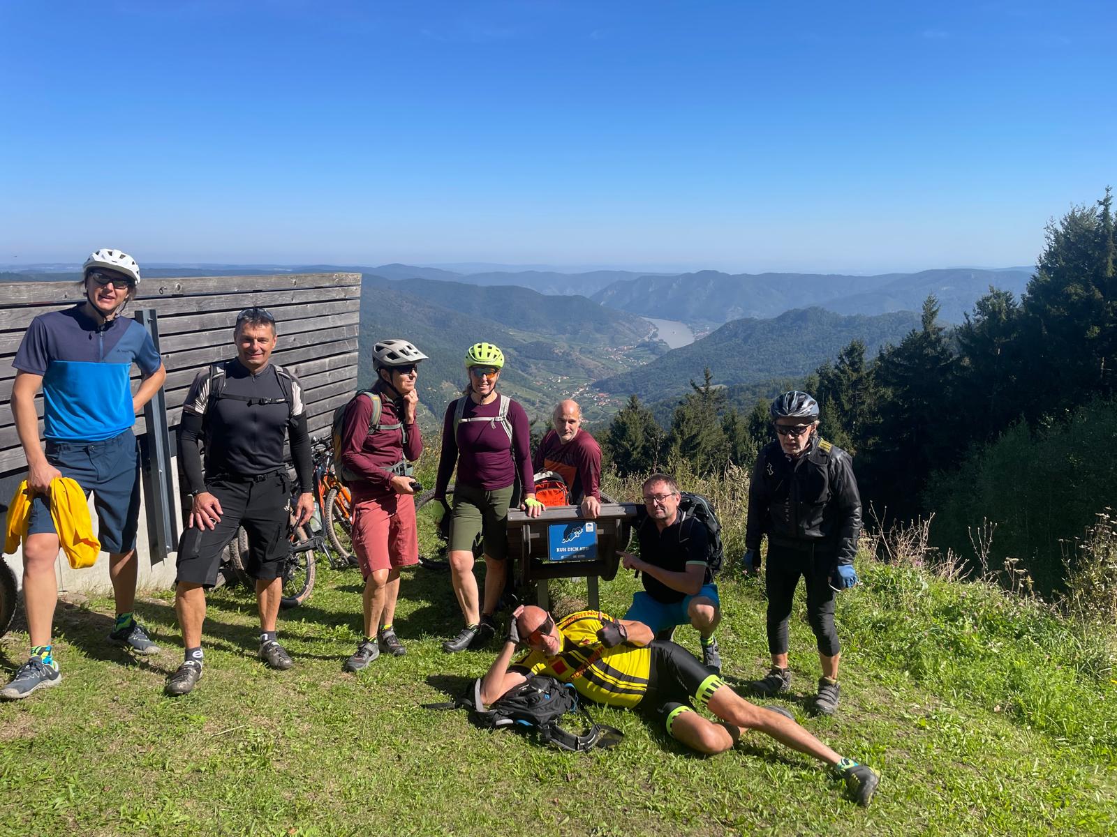 Zum Saisonabschluß sind wir am 22. September nochmals gemeinsam von Mühldorf auf den Jauerling gestrampelt. Selbstverständlich mit Besteigung des Senders und Einkehr im Naturparkhaus. Gestärkt ging es wieder hinunter ins Tal und auf der anderen Seite über die Bärenwand zurück zum Ausgangspunkt mit Ausklang im Weißen Rössel. Am Ende waren es 1200Hm und 27km. Danke an Heli für die tolle Tour!