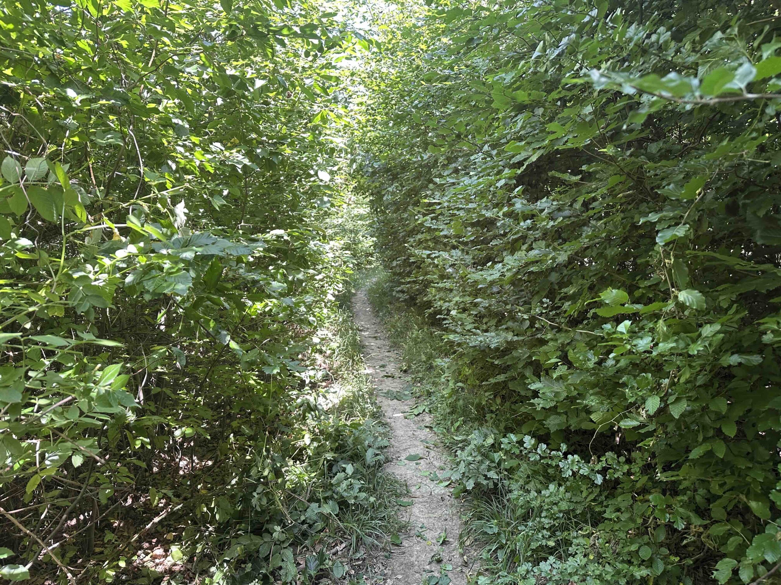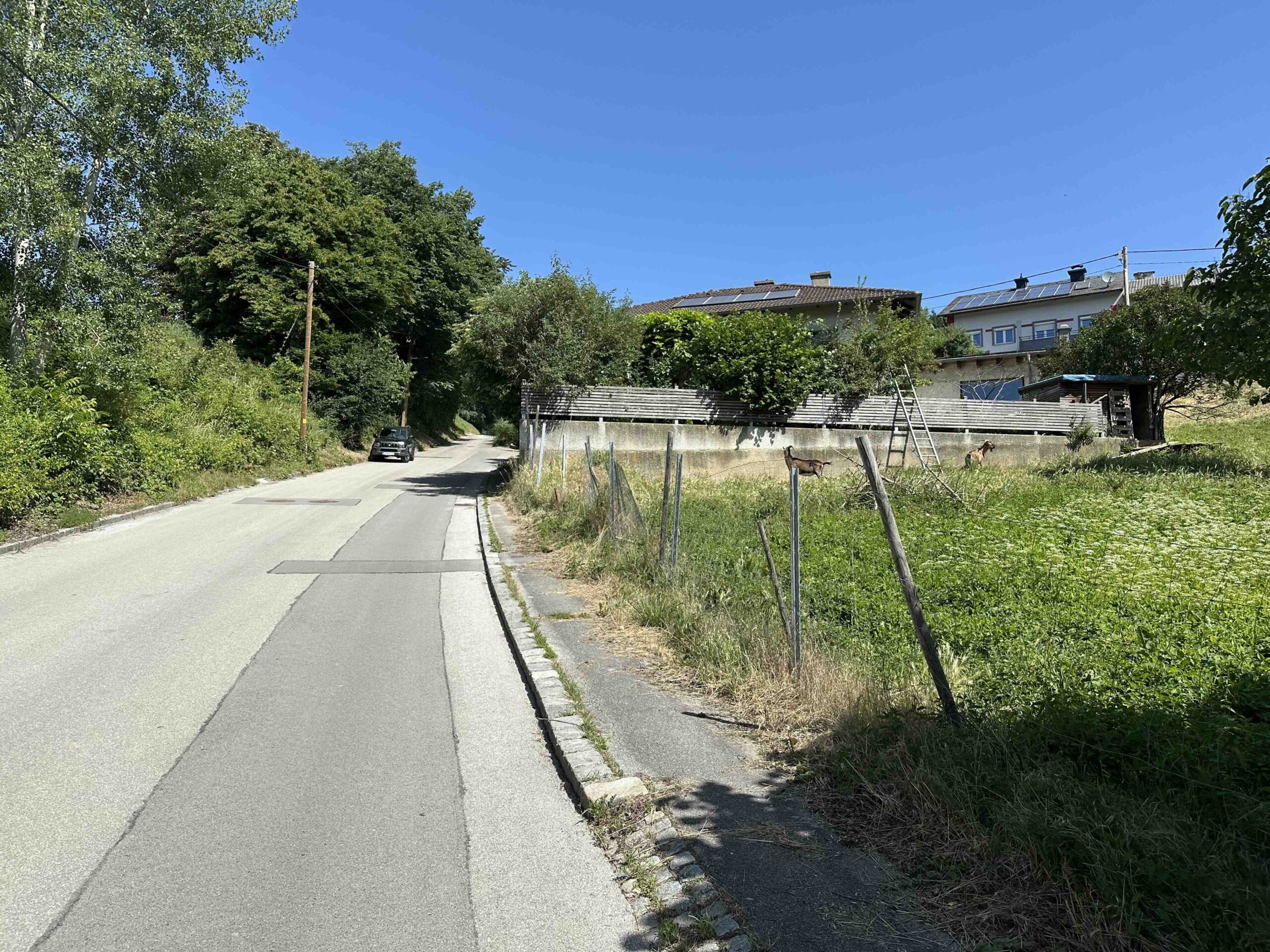 Kurz nach den Ziegen zweigt die Dorfberggasse rechts ab und, wenn man möchte, kann man dieser bis fast zum Ende folgen, wo ein Stück nach dem Ende des Asphalts links die Wiese hinauf dem Zaun der Obstgärten entlang, die schöne Else steht.
