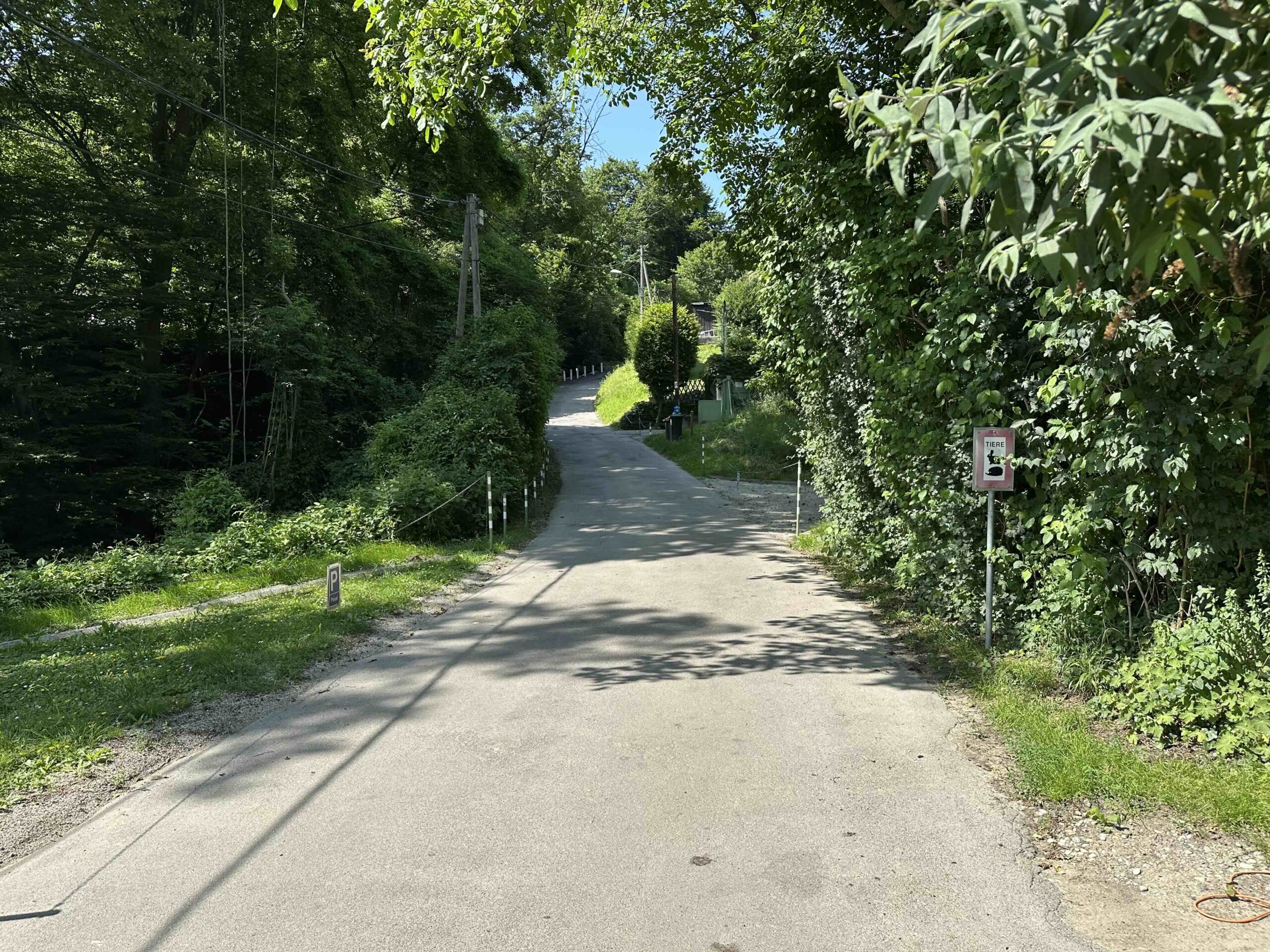 Diesem folgt man bis man auf eine Wiese gelangt. Nach einem kurzen Stück geradeaus am Wiesenrand entlang erreicht man ein kurzes asphaltiertes Wegstück, das auf die Holzgasse (L2009) führt. Direkt gegenüber befindet sich der Wegknoten Weißer Hof.