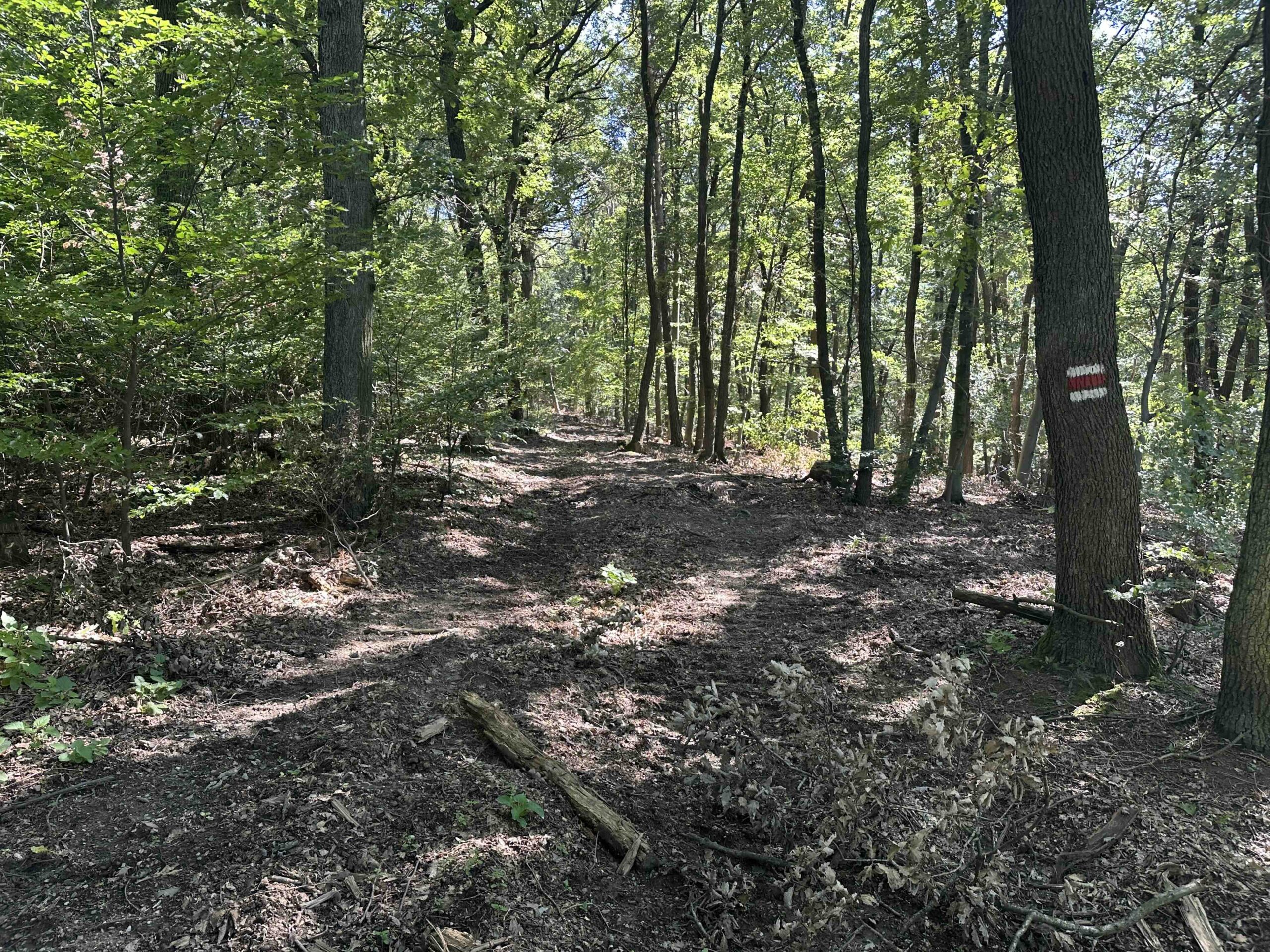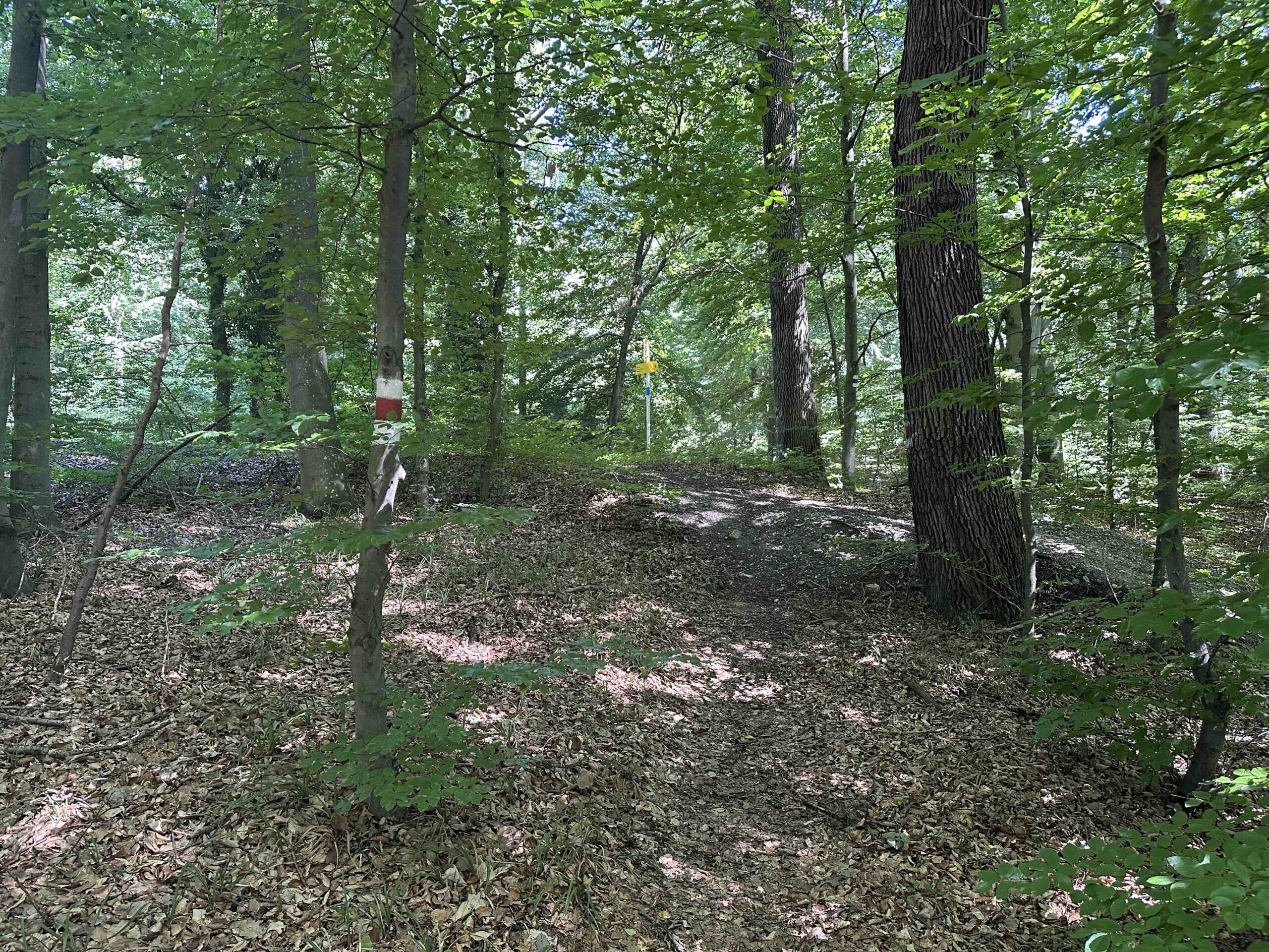 Man taucht in den Wald ein und nach einem kurzen Fußpfad folgt man einem Forstweg über den Eichberg bis man den Wegknoten Eichberg an der Neuwaldegger Straße erreicht.