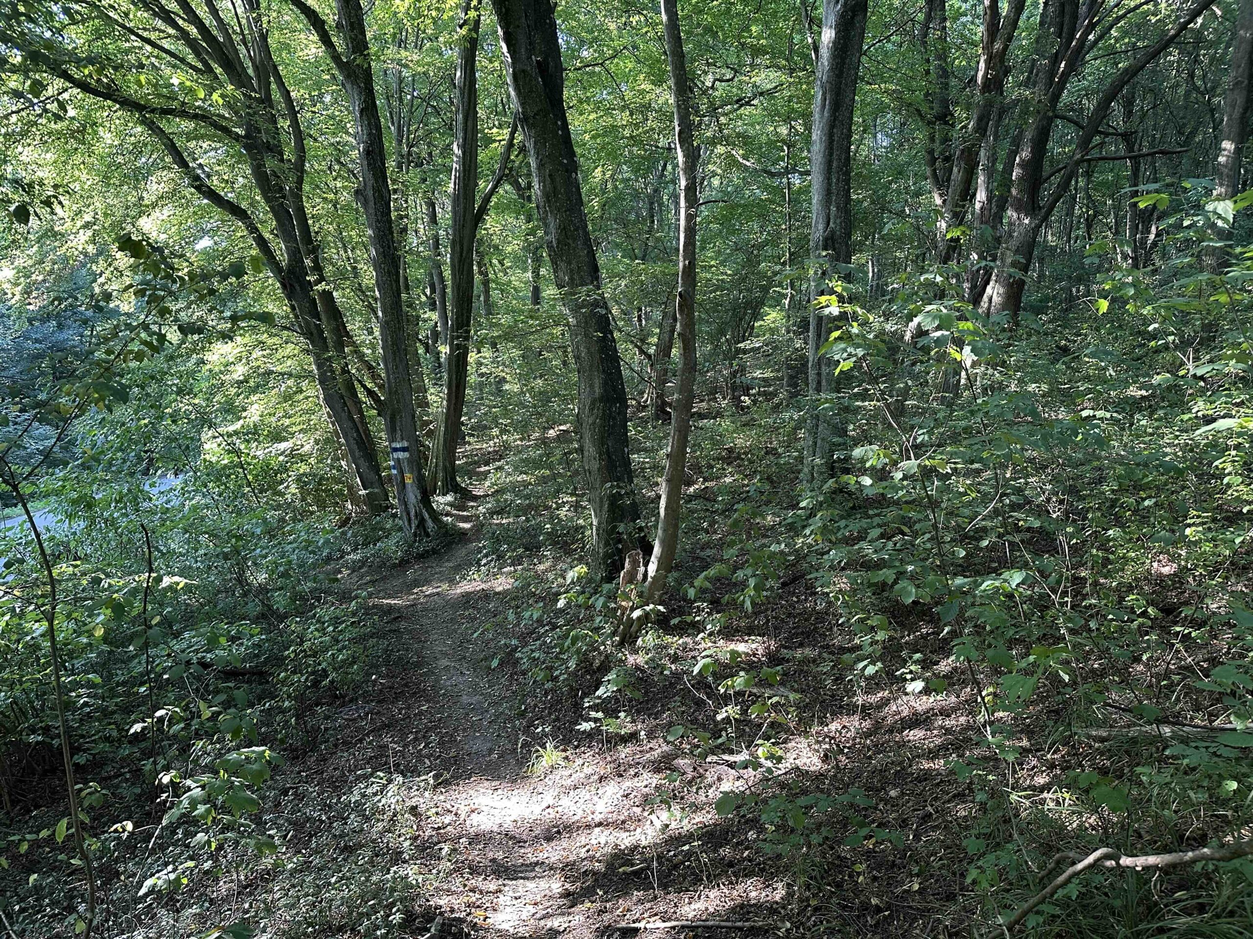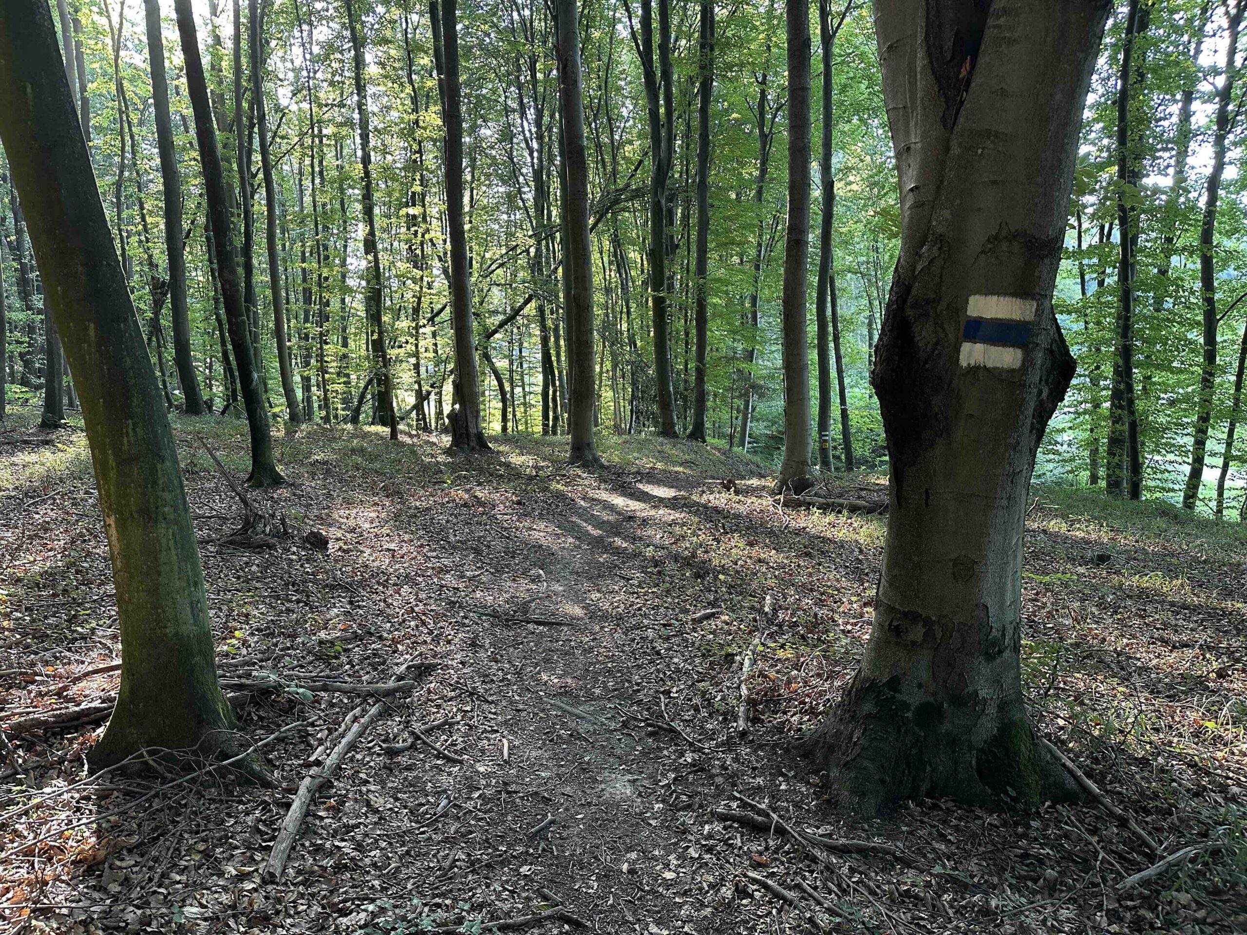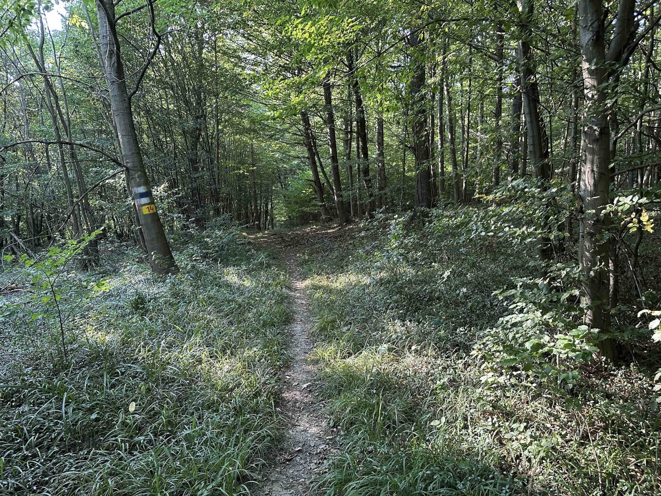 Der Weg startet bei der gemeinsam mit der roten Markierung nach Hirschgarten und der gelben Markierung auf den Tulbiger Kogel.