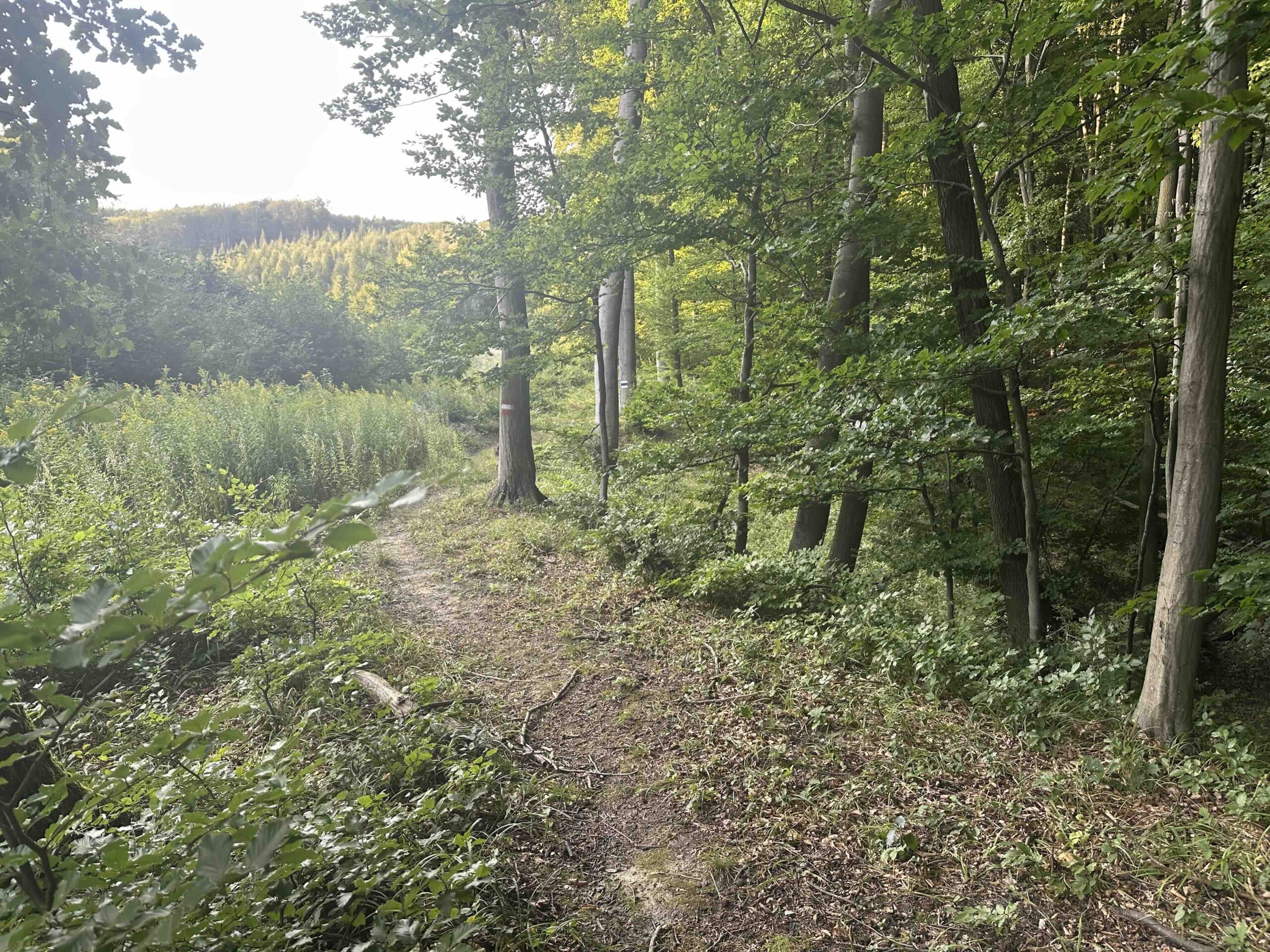 Hier mündet die rote Markierung, die gemeinsam in Mauerbach gestartet ist, ein. Kurz nach dem Ortsende geht es rechter Hand wieder in den Wald. Der Weg verläuft nun auf einem schmalen Pfad parallel zur Straße bis man kurz vor dem Passauerhof wieder auf der Straße landet. Noch ein kleines Stück der Straße folgen und man ist am Ziel.