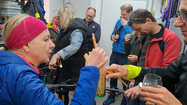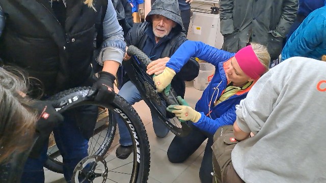 Auch in diesem Jahr hat uns Tom K. in die Geheimnisse der Fahrradtechnik eingeweiht und uns gezeigt, wie wir unsere Räder wieder flott bekommen. Es wurden Reifen geflickt, Schaltungen eingestellt und auf tubeless umgerüstet. Das Wetter hat uns in die Garage gezwungen, aber das hat dem Spaß nicht geschadet. Am Ende war allerdings nicht ganz klar, ob mehr gegessen oder mehr repariert wurde.