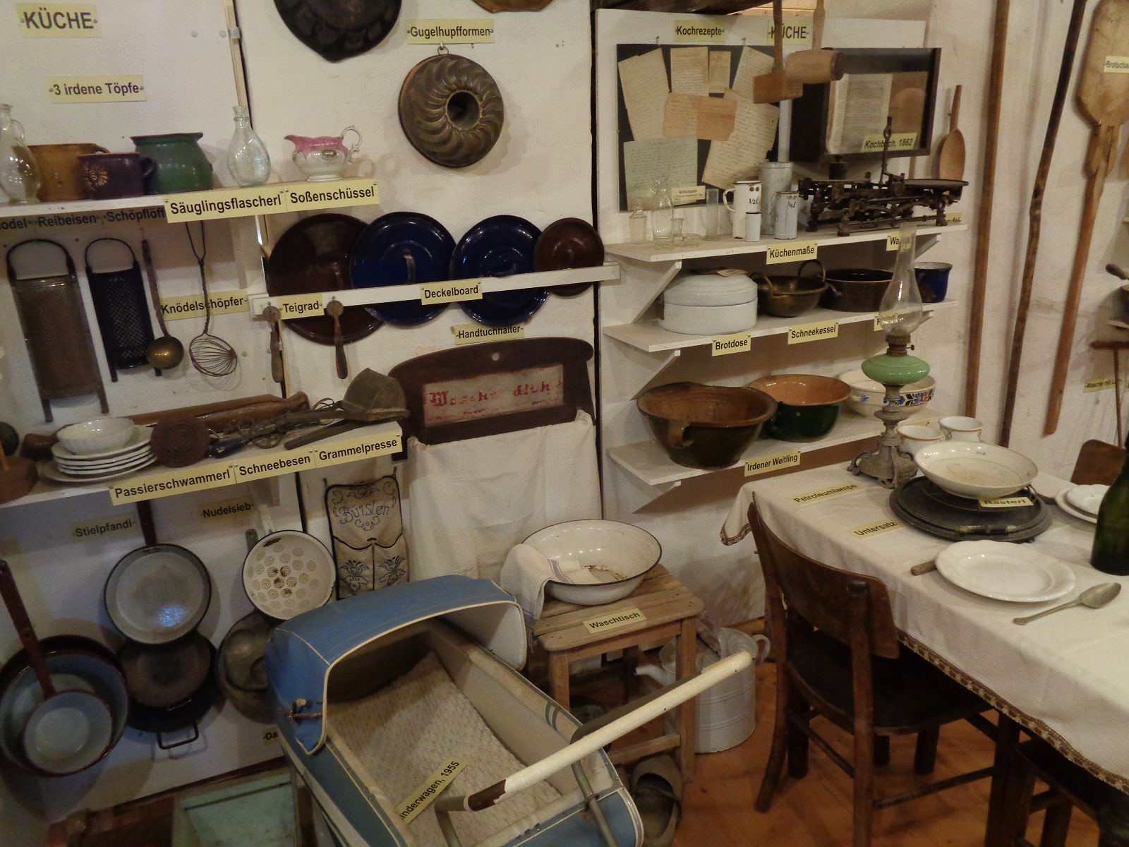 Auch diesmal war am Ausgangspunkt unseres Wandertages die Besichtigung eines Heimatmuseums. Ein eigenes Museum ist doch ein tolles Angebot in diesem kleinen Ort, das im Dachgeschoß der Volksschule untergebracht ist.