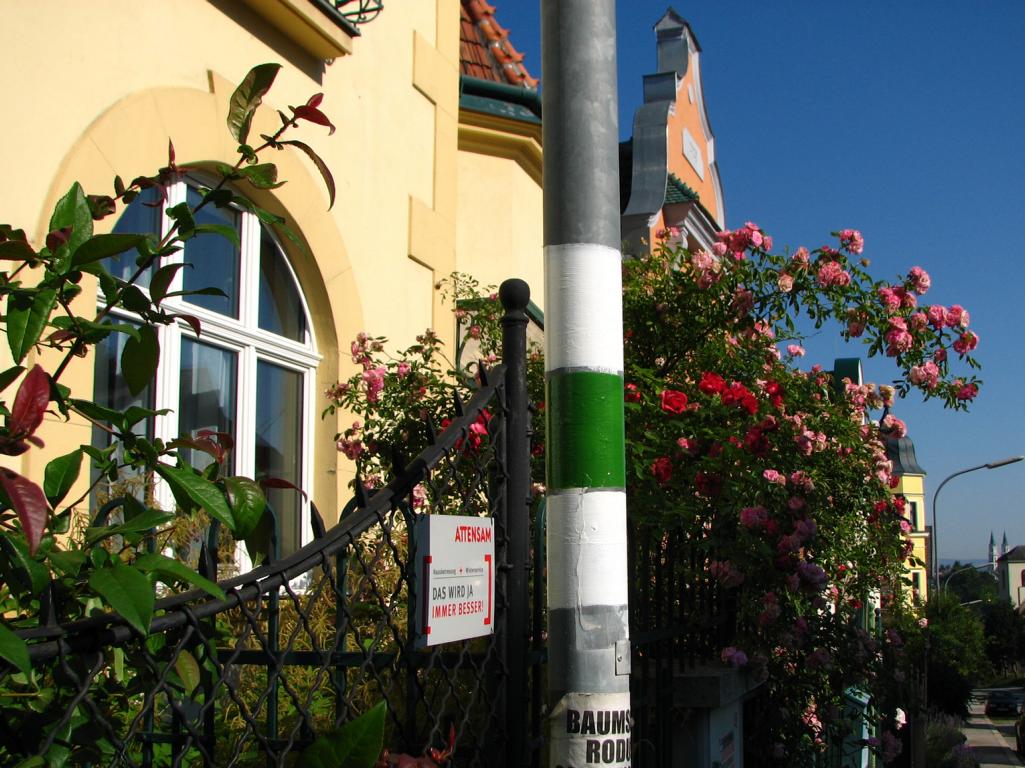 Vom Beginn der blauen Markierung sind es nur knapp 100 m bis zur Bergstation der Drahtseilbahn auf den Leopoldsberg. Allerdings, diese von der Donau heraufführende Standseilbahn existiert schon lange nicht mehr. Ihr Betrieb wurde bereits 1876 eingestellt. Geblieben sind nur noch ein tiefer und breiter, geradliniger Hangeinschnitt, der fast bis zur Elisabethwiese heraufführt, eine kleine eingeebnete Waldfläche, der ehemalige Standort der Bergstation und ein blau markierter Promenadenweg. Er wurde für die nach 5 ½ Minuten Bahnfahrt ankommenden Fahrgäste angelegt, um ihnen einen bequemen Zugang zum Leopoldsberg zu ermöglichen.