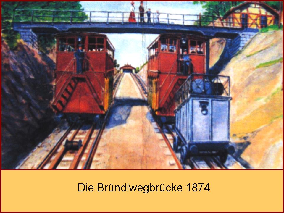 Die üblich gewordene Bezeichnung „Bründelweg“ war in weiterer Folge auch namensgebend für die „Bründelwegbrücke“, ein Fußgängersteg, der über die bereits erwähnte, breite und tief eingeschnittene, zweigleisige Eisenbahntrasse der „Drahtseilbahn auf den Leopoldsberg“ führte. Der Wanderweg auf den Leopoldsberg querte genau auf halber Länge der Bahn, sodass, sich die gleichzeitig auf- und abwärts fahrenden Doppelstockwaggons unter der Brücke begegneten. Dieses Bahnschauspiel konnte man erste Reihe fußfrei aus der Vogelperspektive von der Brücke aus mitverfolgen. Allerdings war die Bergbahn nur drei Jahre in Betrieb, dann musste sie wegen Unrentabilität geschlossen werden. Die Konzession erlosch am 28. August 1876. Ein halbes Jahr später, am 31.1.1877 erhielt der Weg durch die Gemeinde Klosterneuburg seinen heutigen Namen „Kollersteig“.