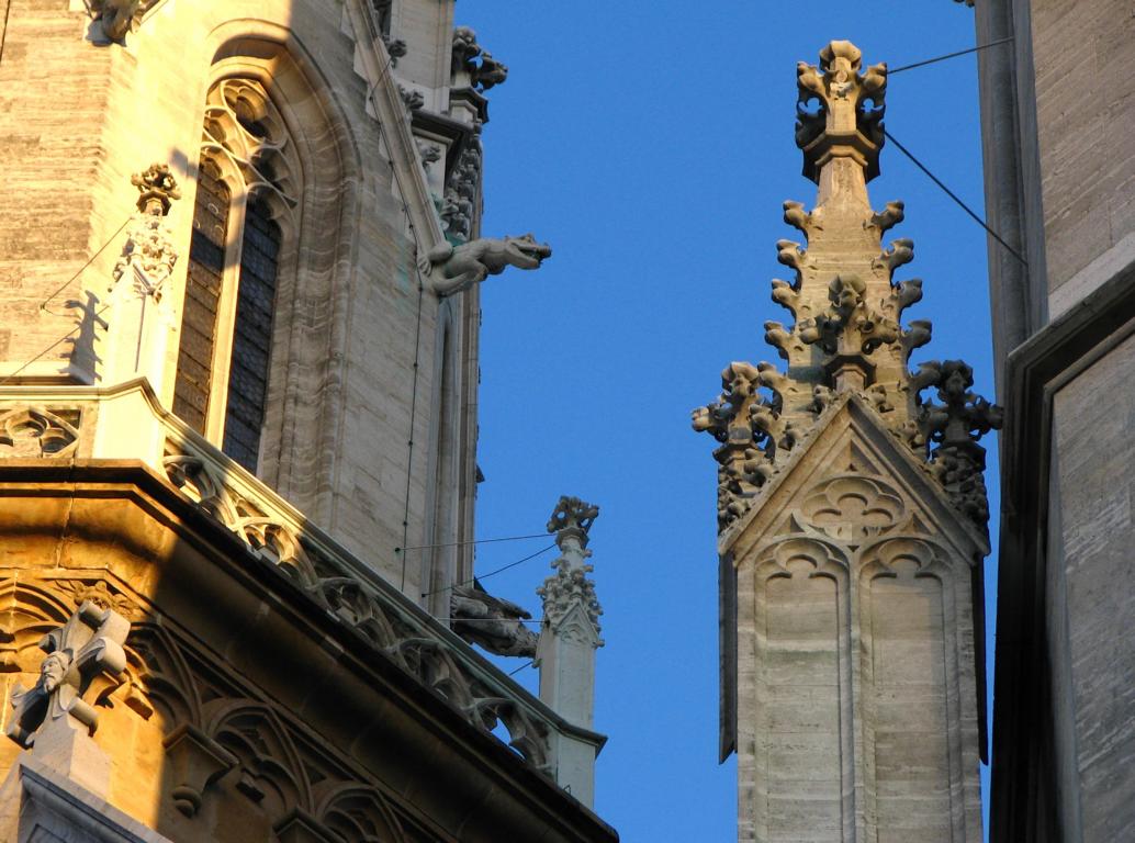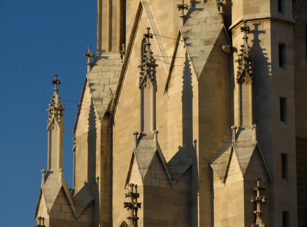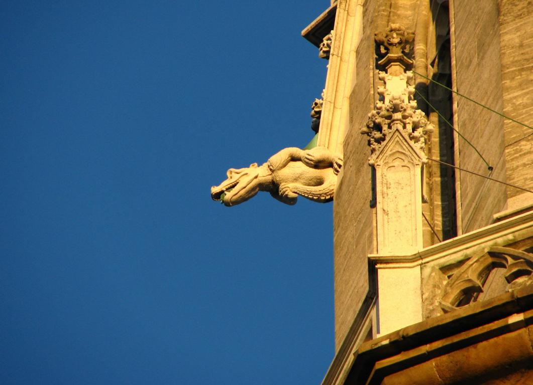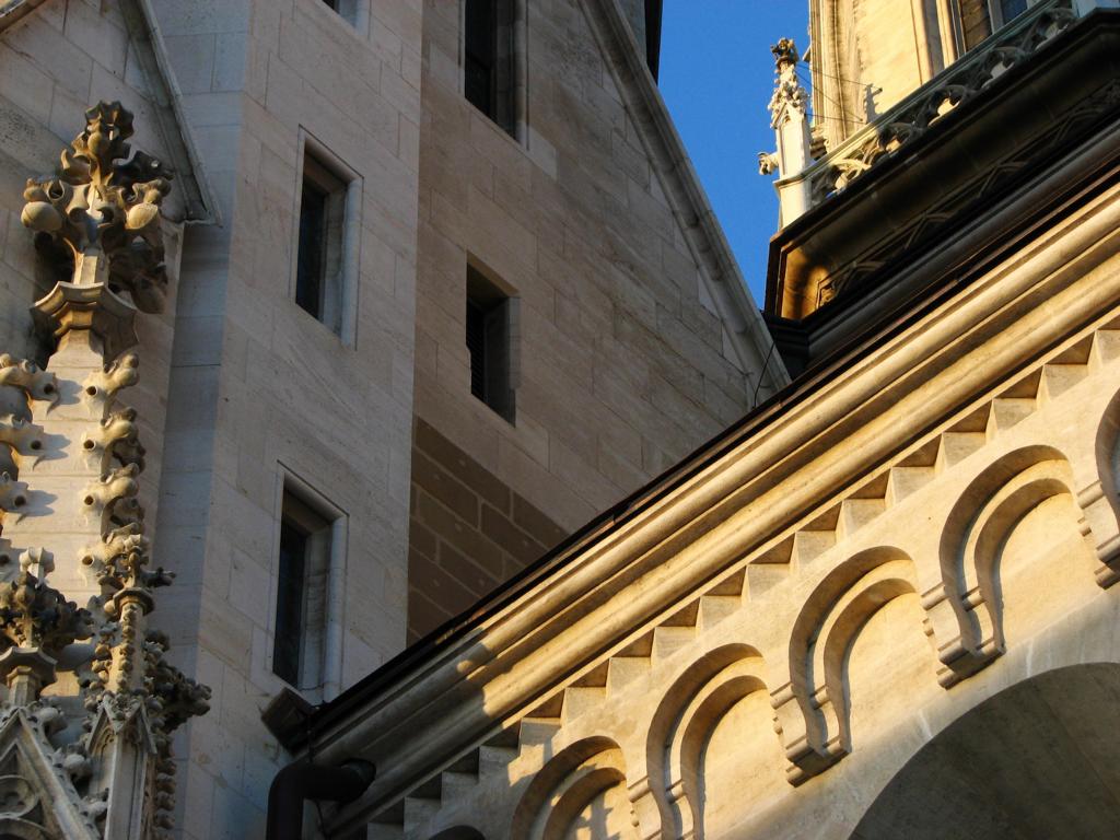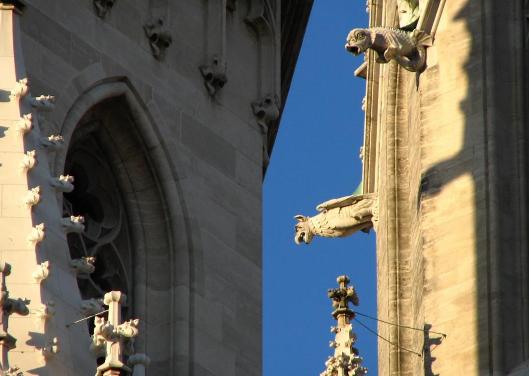 Das Herzstück der Klosteranlage, die ursprünglich romanische Stiftskirche, veränderte im Lauf der Jahrhunderte ihr Aussehen durch mehrere Umbau- und Renovierungsphasen erheblich. Ihr heutiges Erscheinungsbild erhielt sie am Ende des 19. Jahrhunderts. Die augenscheinlichste Veränderung war wohl der Um- bzw. Neubau der beiden Kirchtürme. Die Pläne für diesen Umbau stammten vom Dombaumeister des Wiener Stephansdoms, dem Architekten Friedrich von Schmidt (1825-1891). Schmidt, der den Wienern vor allem als der Schöpfer des Wiener Rathauses bekannt ist, war ein prominenter Vertreter des Historismus, insbesondere der gotischen Formensprache. Er wohnte zuletzt in Dornbach in der Andergasse an der roten Markierung hinauf zur Kreuzeichenwiese. Einer seiner namhaftesten Schüler war der Architekt Franz von Neumann jun. (1844-1905), der von Anfang an maßgeblich in den Wiener Rathausbau involviert war. Neumann war Mitglied des ÖTK und plante die Habsburgwarte auf dem Hermannskogel (542 m). Wen wundert es daher, dass die einst „schönste Warte der Monarchie“ als neogotischer Wehrturm errichtet wurde?