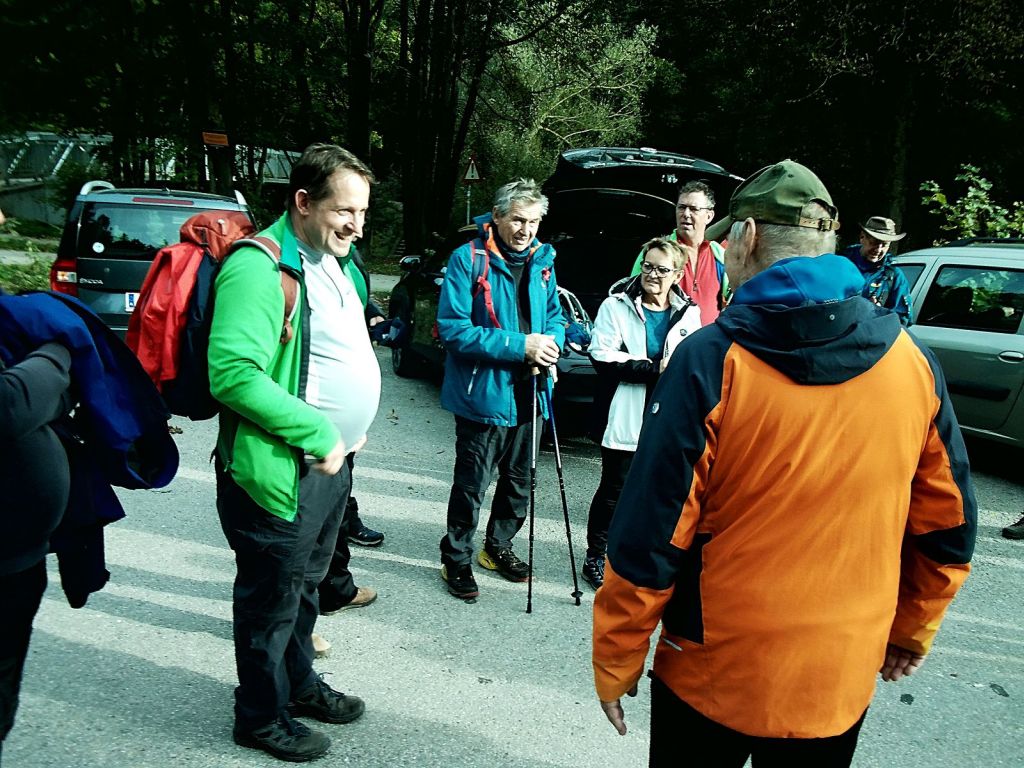 Wir aus Klosterneuburg waren leider nur zu viert, da die herbstlichen Verkühlungen manchen einen Strich durch die Rechnung gemacht haben. Bequem sind wir mit dem Zug angereist und wurden liebenswerterweise von Hans und Susanna vom Bahnhof zum Gasthaus „Cholerakapelle“ im Helenental mitgenommen, da es zu dieser Uhrzeit keine Busverbindung in die Nähe gab. Der für Vormittag angesagte Sprühregen blieb aus und so starteten wir bei bedecktem Himmel aber idealem Wanderwetter auf den Hohen Lindkogel – unter den Bildern findet ihr auch eine Karte mit den Wanderrouten, falls ihr diese nachgehen wollt.