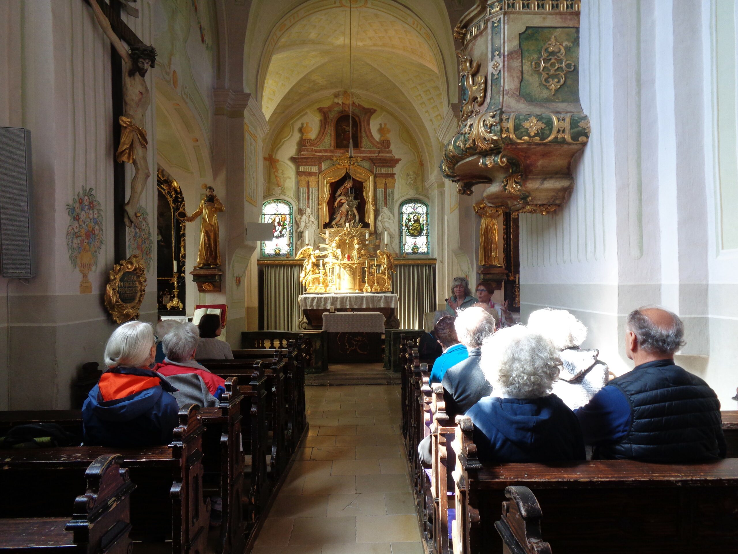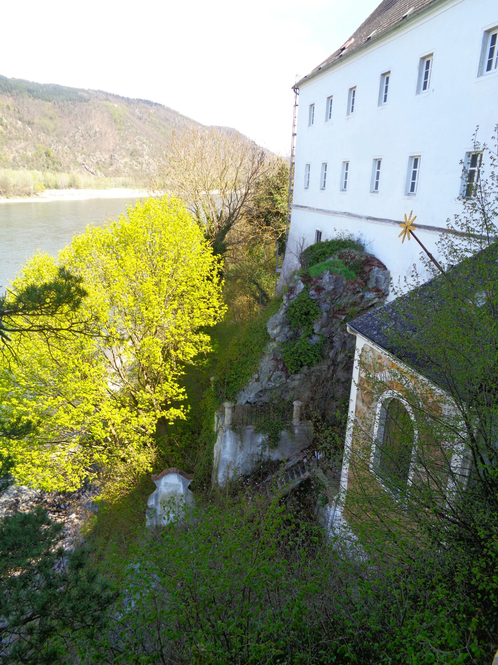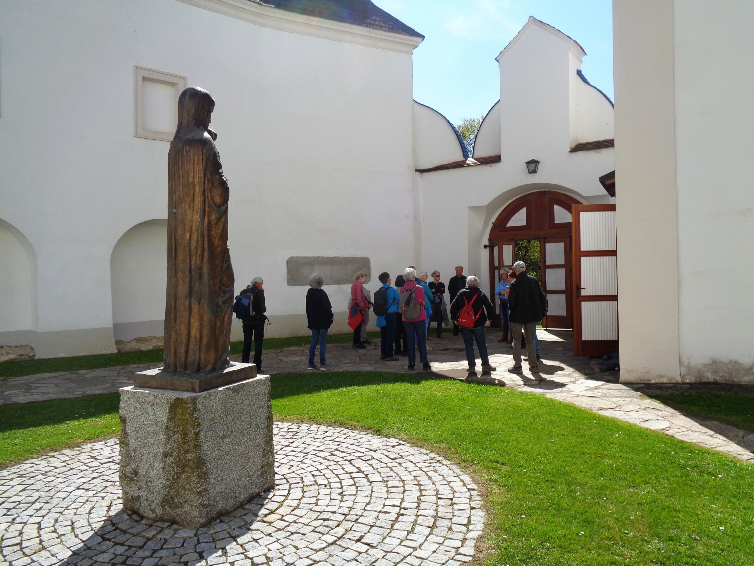 Bei einer Führung im Kirchenbereich konnten wir alles Wissenswerte über die Entstehung der Kirche und des Klosters erfahren. Diese Kirche ist als einzige in Österreich der hl. Rosalia gewidmet. Sie ist sehr schmal und wirkt wie ein „Langhaus“. Hinter dem Hochaltar ist der niedrige Eingang zum Hl. Grab. Auf der Seite ist auch ein Ausgang, wo man eine herrliche Aussicht auf die Donau , das Schloss Schönbühel und die Ruine Aggstein hat. Das Kloster selbst wurde aus Nachwuchsmangel 1980 geschlossen.