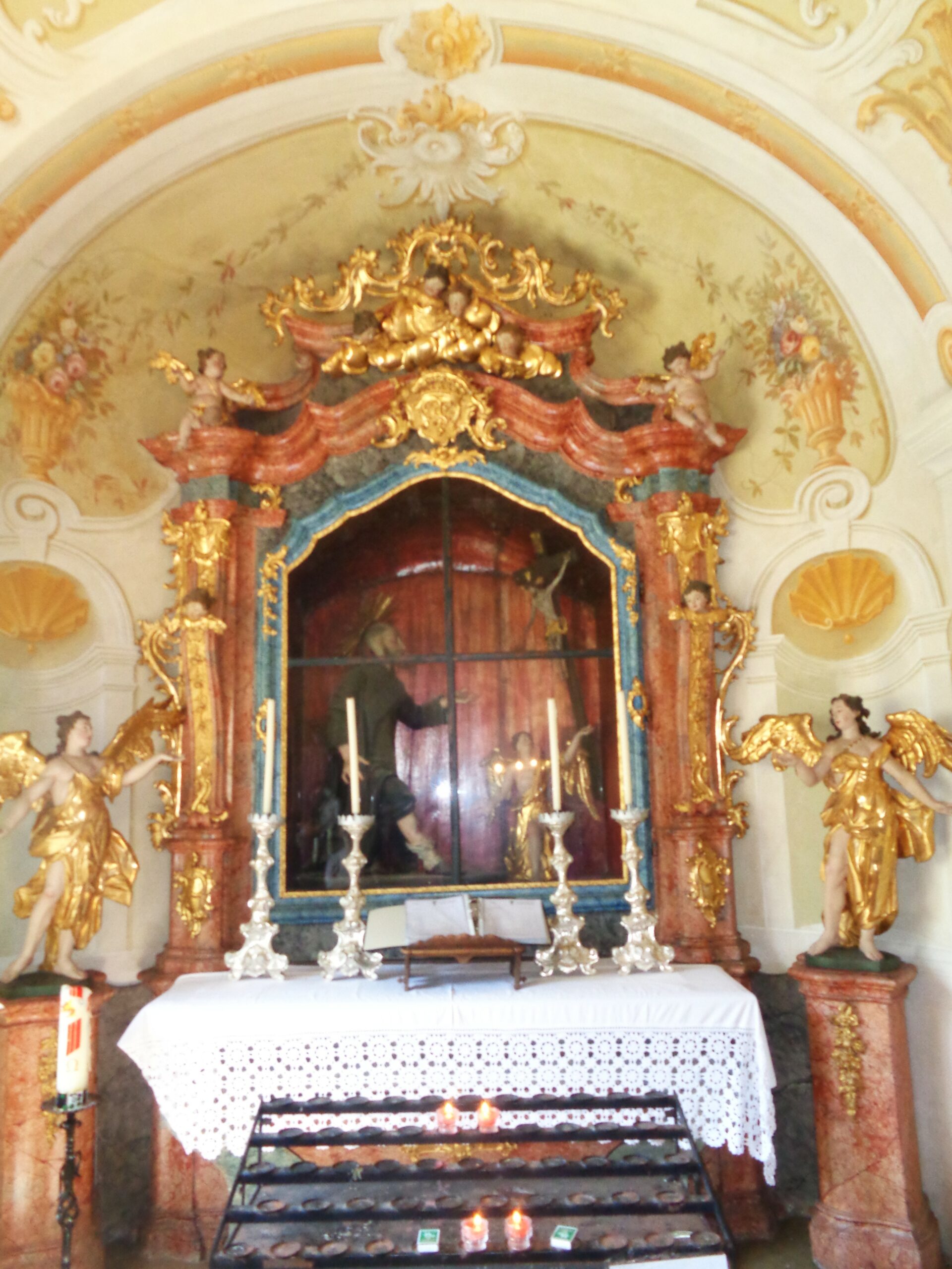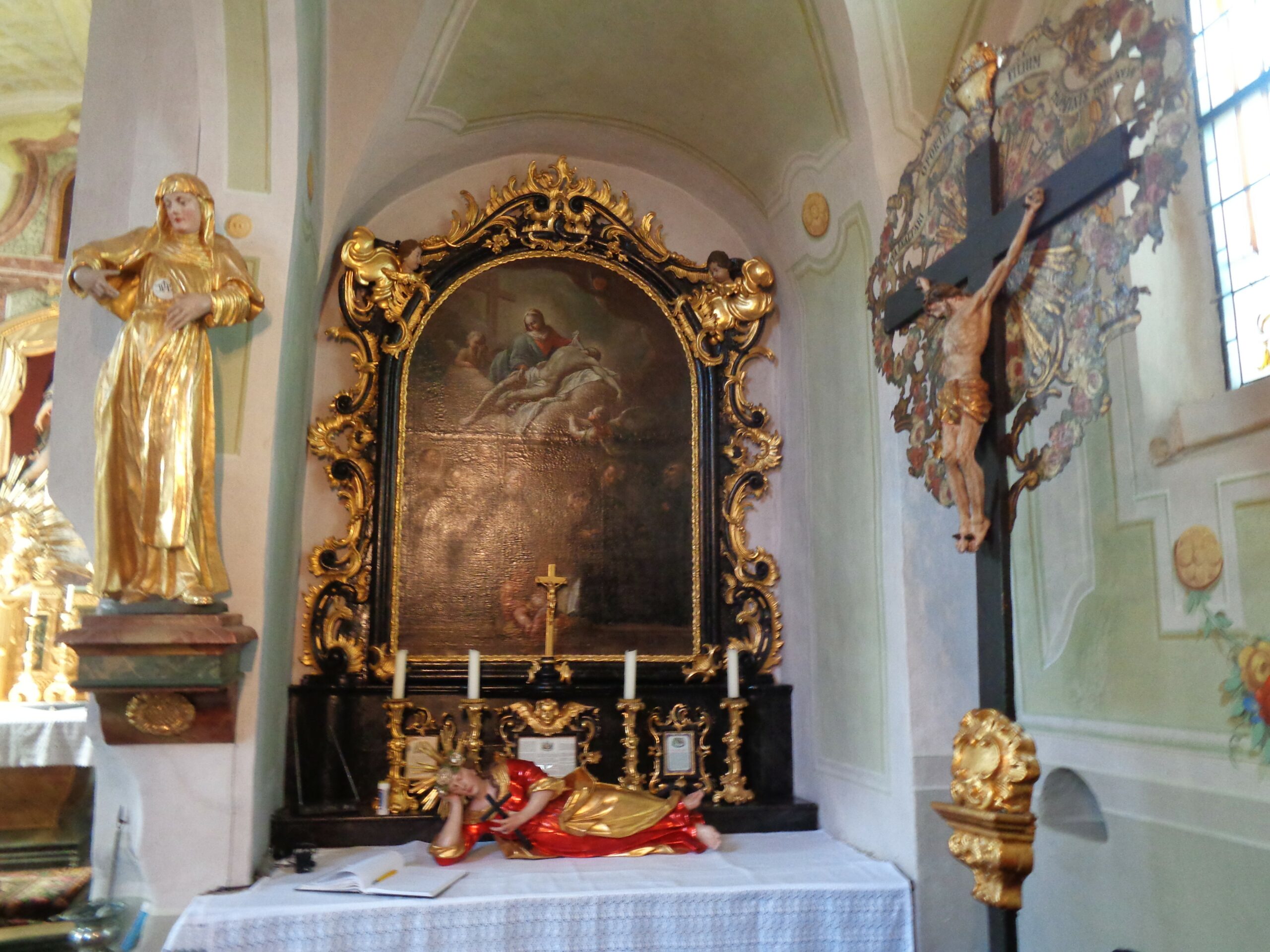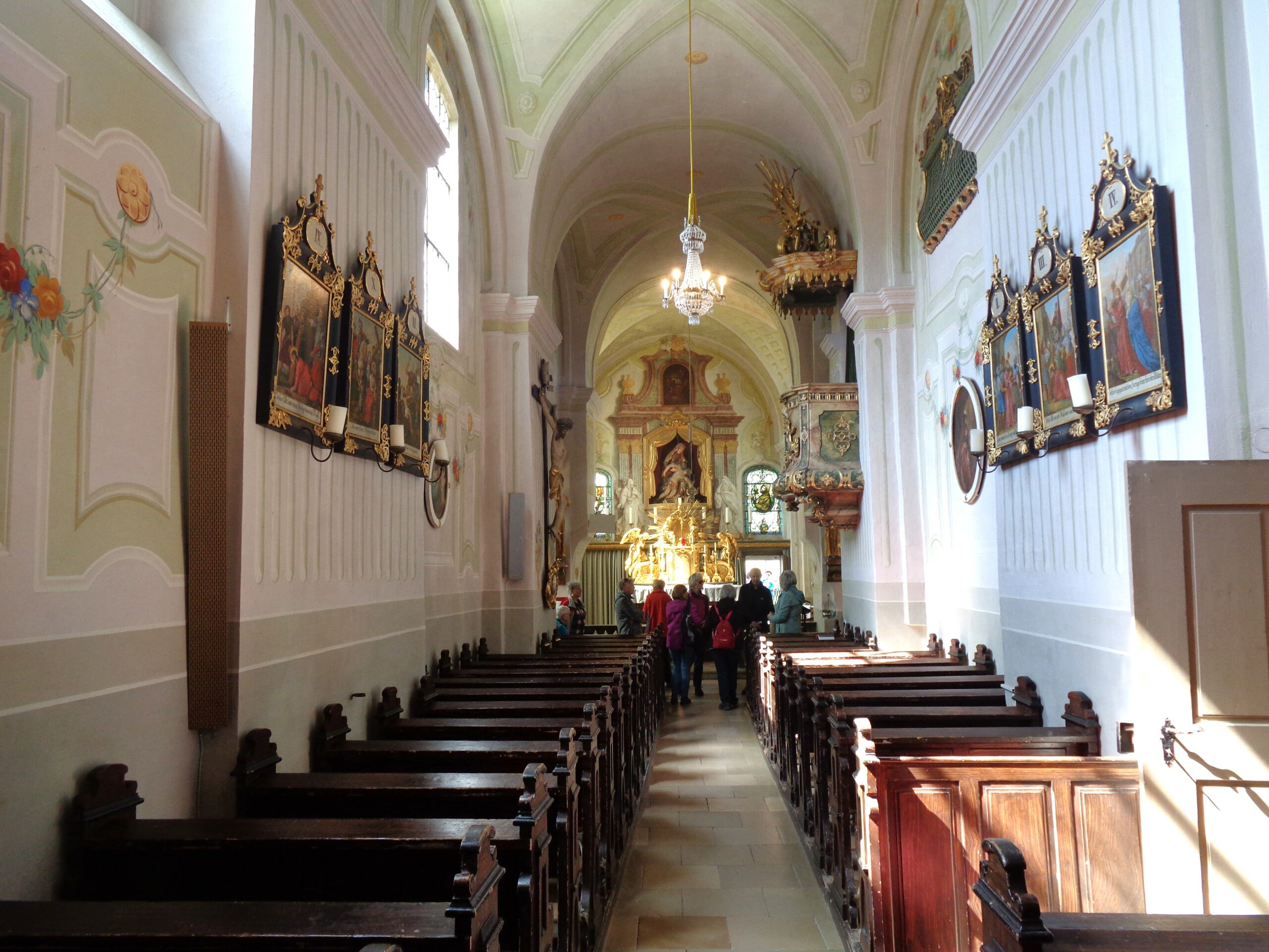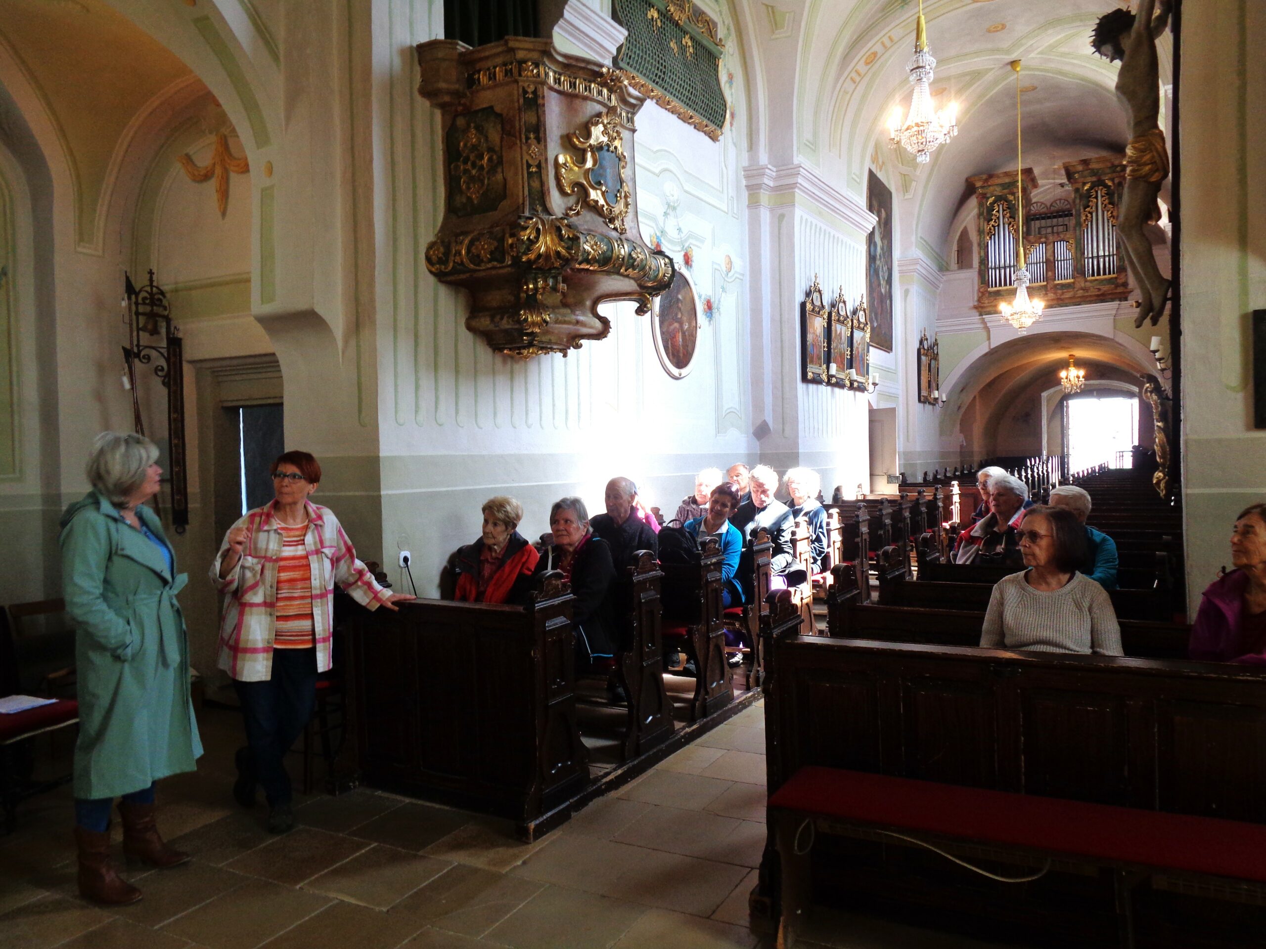 Bei einer Führung im Kirchenbereich konnten wir alles Wissenswerte über die Entstehung der Kirche und des Klosters erfahren. Diese Kirche ist als einzige in Österreich der hl. Rosalia gewidmet. Sie ist sehr schmal und wirkt wie ein „Langhaus“. Hinter dem Hochaltar ist der niedrige Eingang zum Hl. Grab. Auf der Seite ist auch ein Ausgang, wo man eine herrliche Aussicht auf die Donau , das Schloss Schönbühel und die Ruine Aggstein hat. Das Kloster selbst wurde aus Nachwuchsmangel 1980 geschlossen.