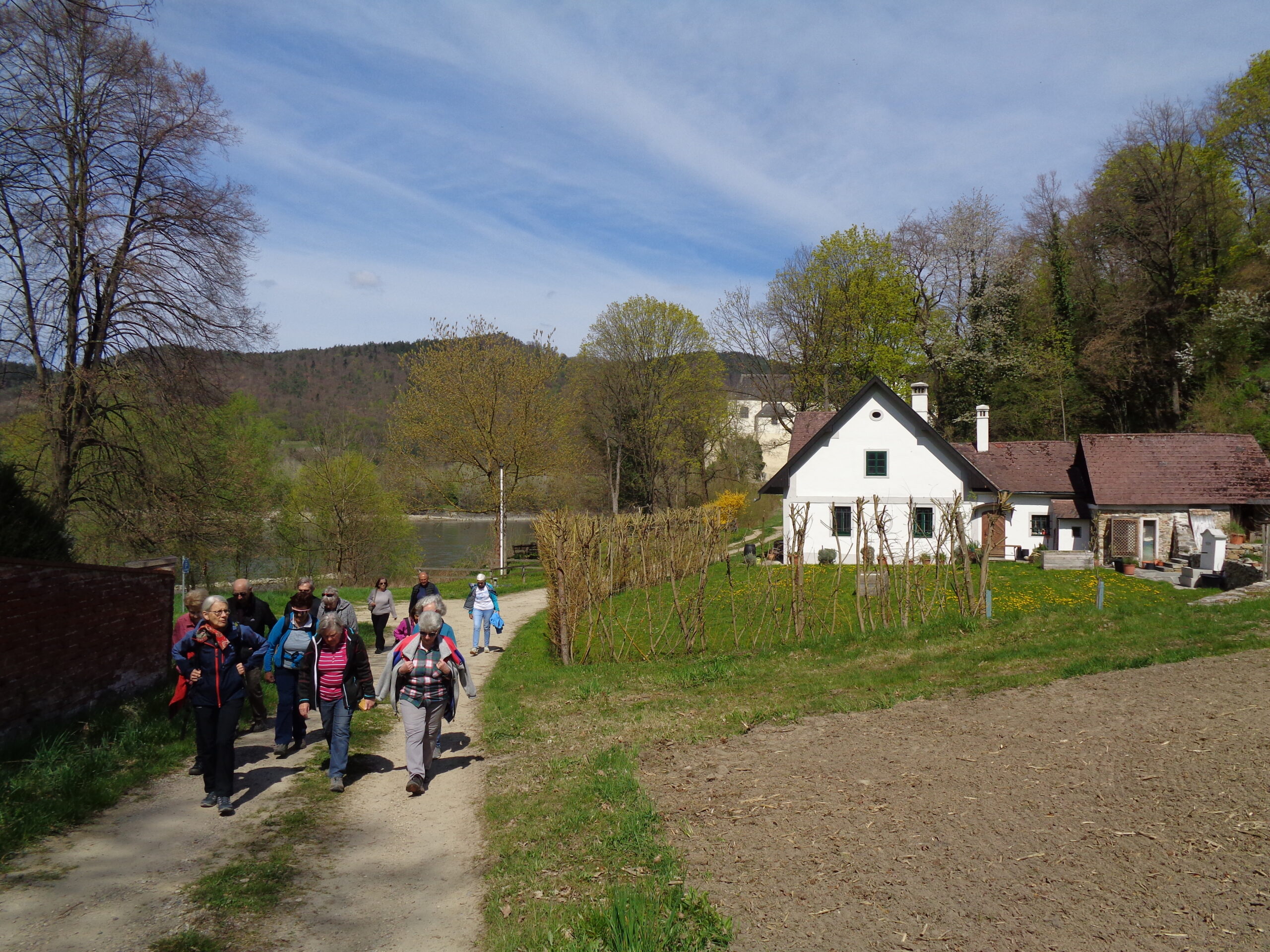 Unsere anschließende Wanderung führte uns von Schönbühel auf die Anhöhe des Ortsteiles Hub und wieder hinunter zur Melker Donaubrücke, von der wir entlang der Donau zu unserem Ausgangspunkt zurückkehrten. Der gemütliche Abschluss erfolgte bei einem Heurigen in St. Lorenz mitten in den Weingärten.