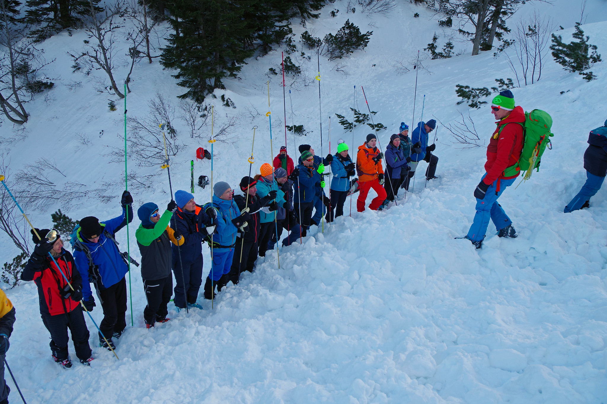 Zu Beginn der Skitourensaison haben wir wieder die Suche nach einer Lawinenverschüttung geübt, damit im Ernstfall alle wissen was zu