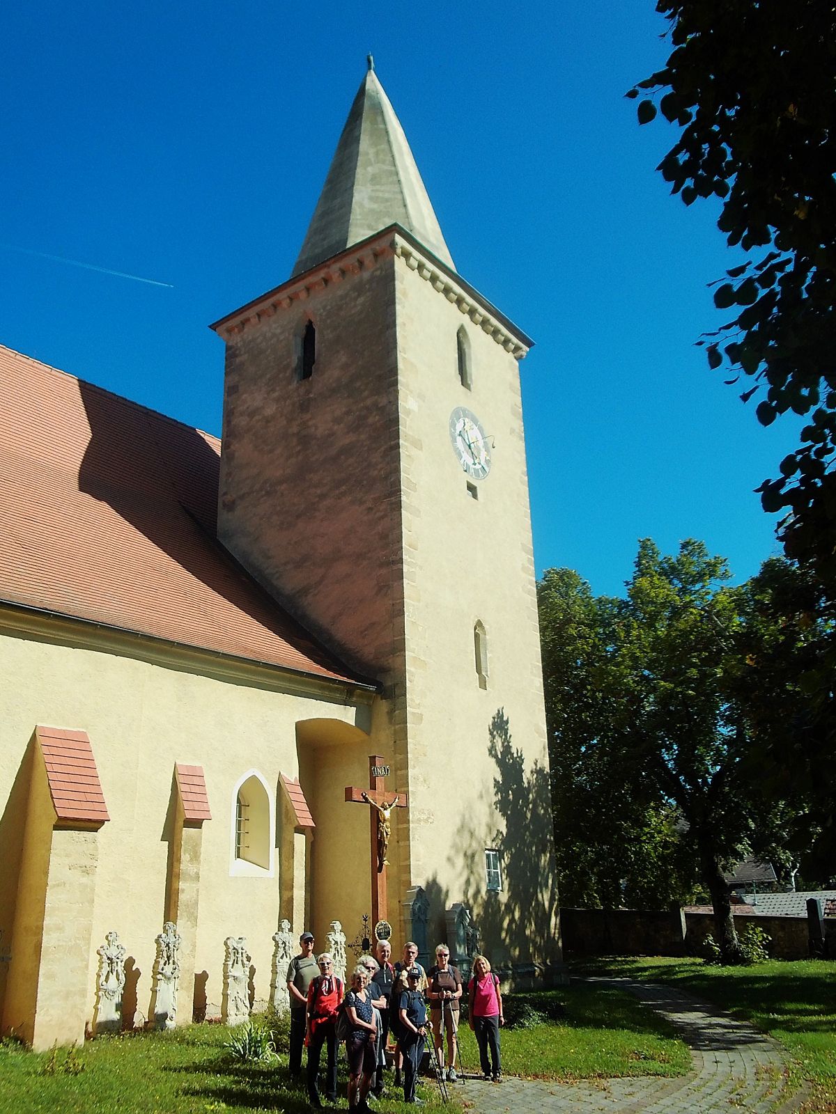 Die Pfarrkirche Altlichtenwarth war der Ausgangspunkt unserer Rundtour um den Hutsaulberg. Der wetterbedingte „Badetag“ war für uns erträglich, da es im offenen Gelände das angenehme „Windlüfterl“ gab und auch schattige Wegeabschnitte dabei waren. Eine besondere Sehenswürdigkeit war die Kopfweide am Weg. Zum Abschluss konnten wir noch im Garten eines Heurigen den ausklingenden Spätsommertag genießen.