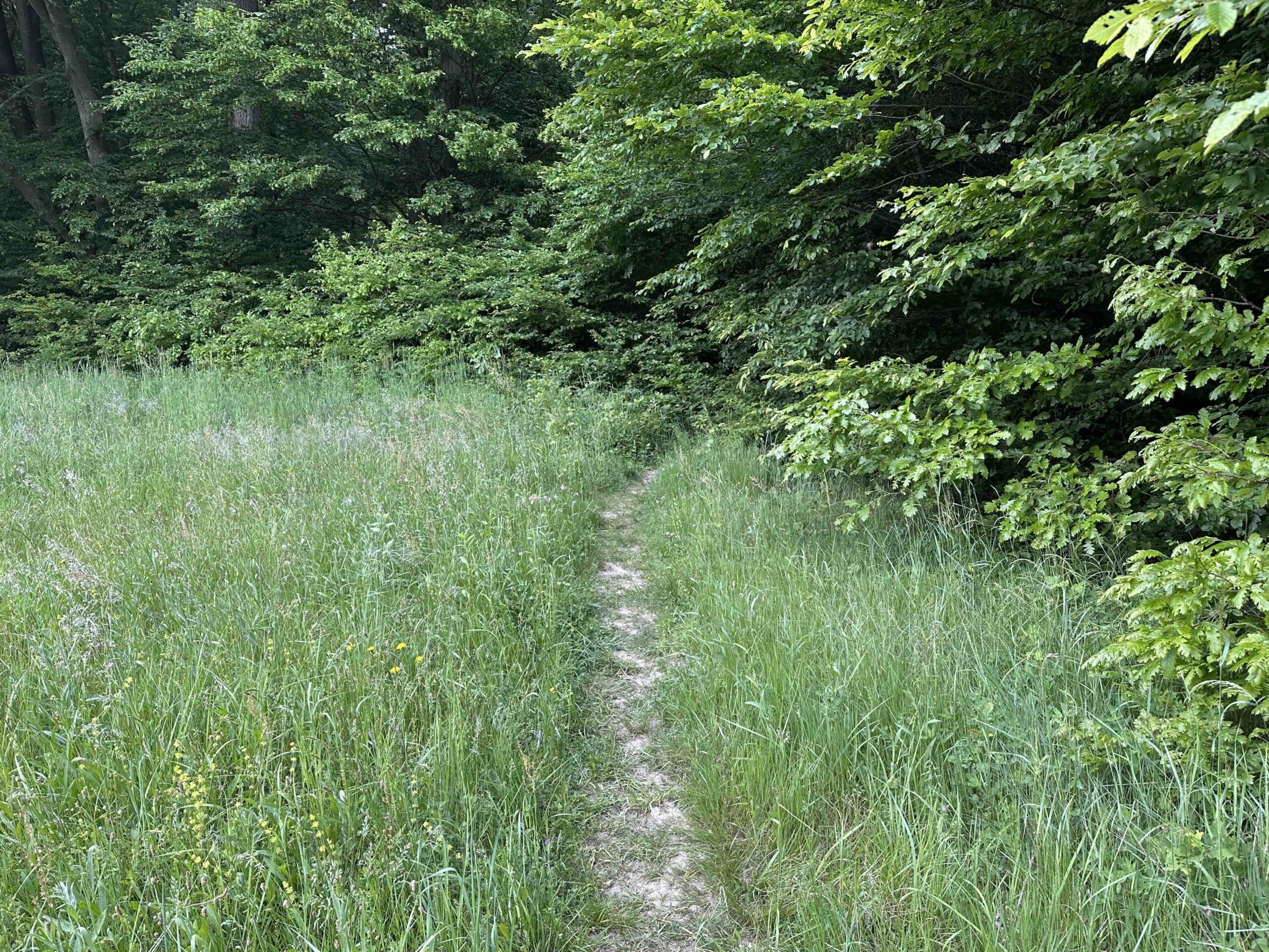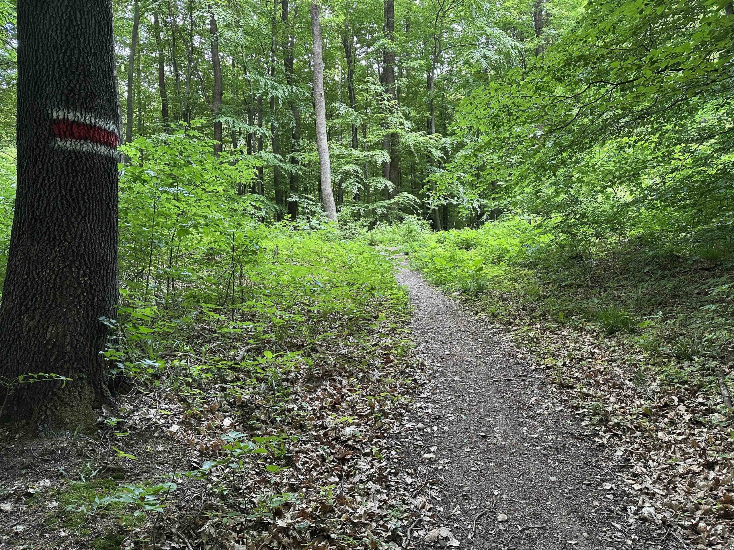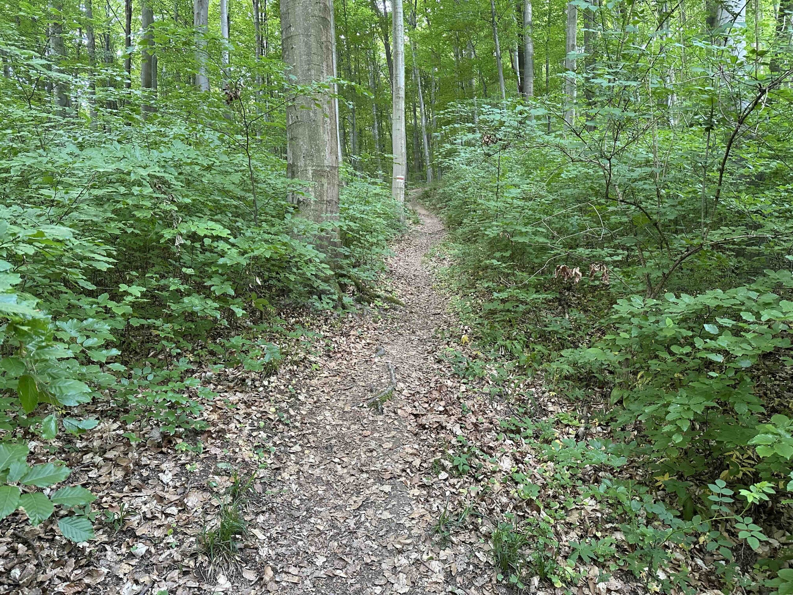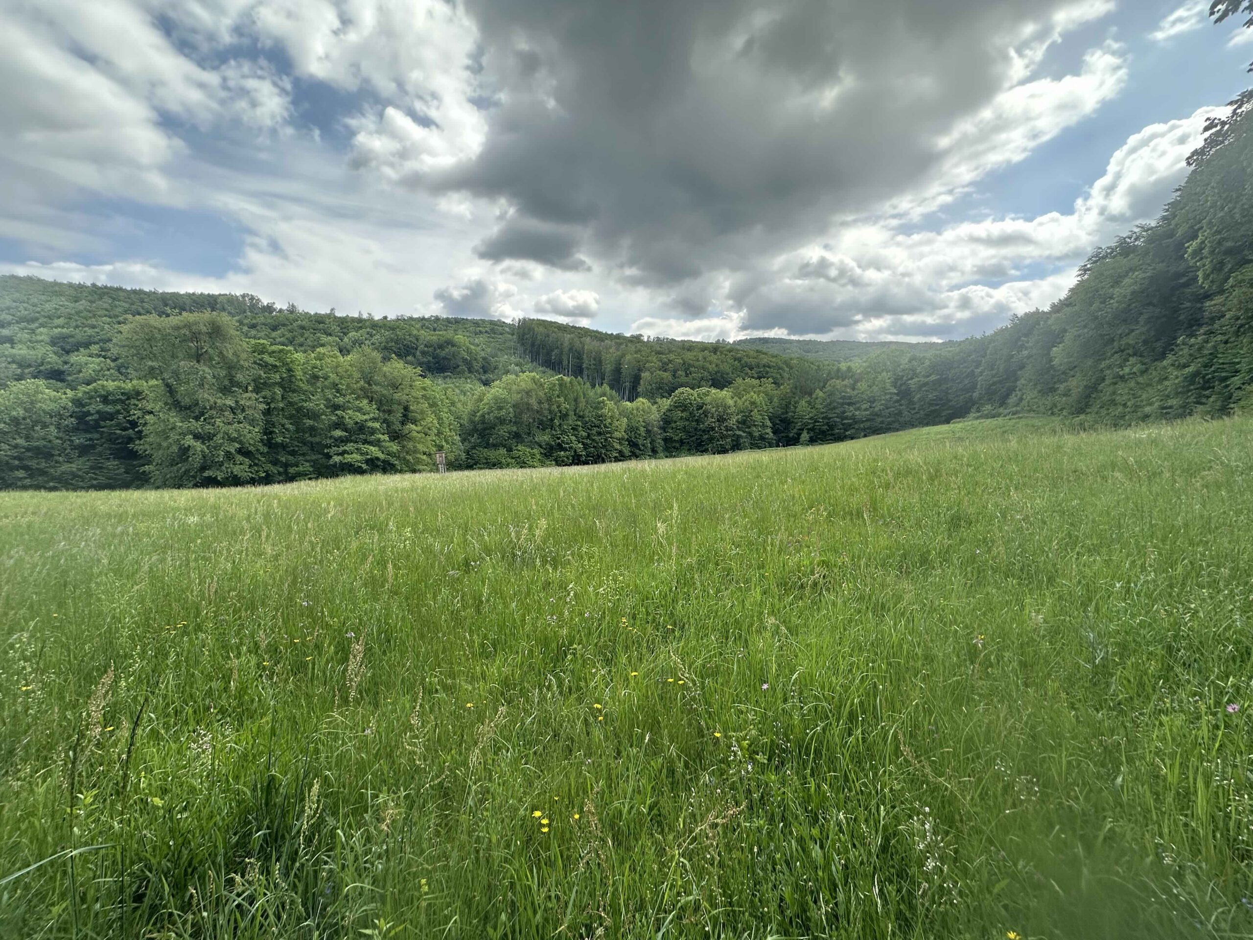 Gleich danach liegt der Wegknoten Weidling/Rotgraben, wo geradeaus der grün markierte Weg zur Windischhütte beginnt. Hier hält man sich rechts und kurz danach links in einen etwas versteckten Feldweg der zu einer idyllischen Wiese führt.