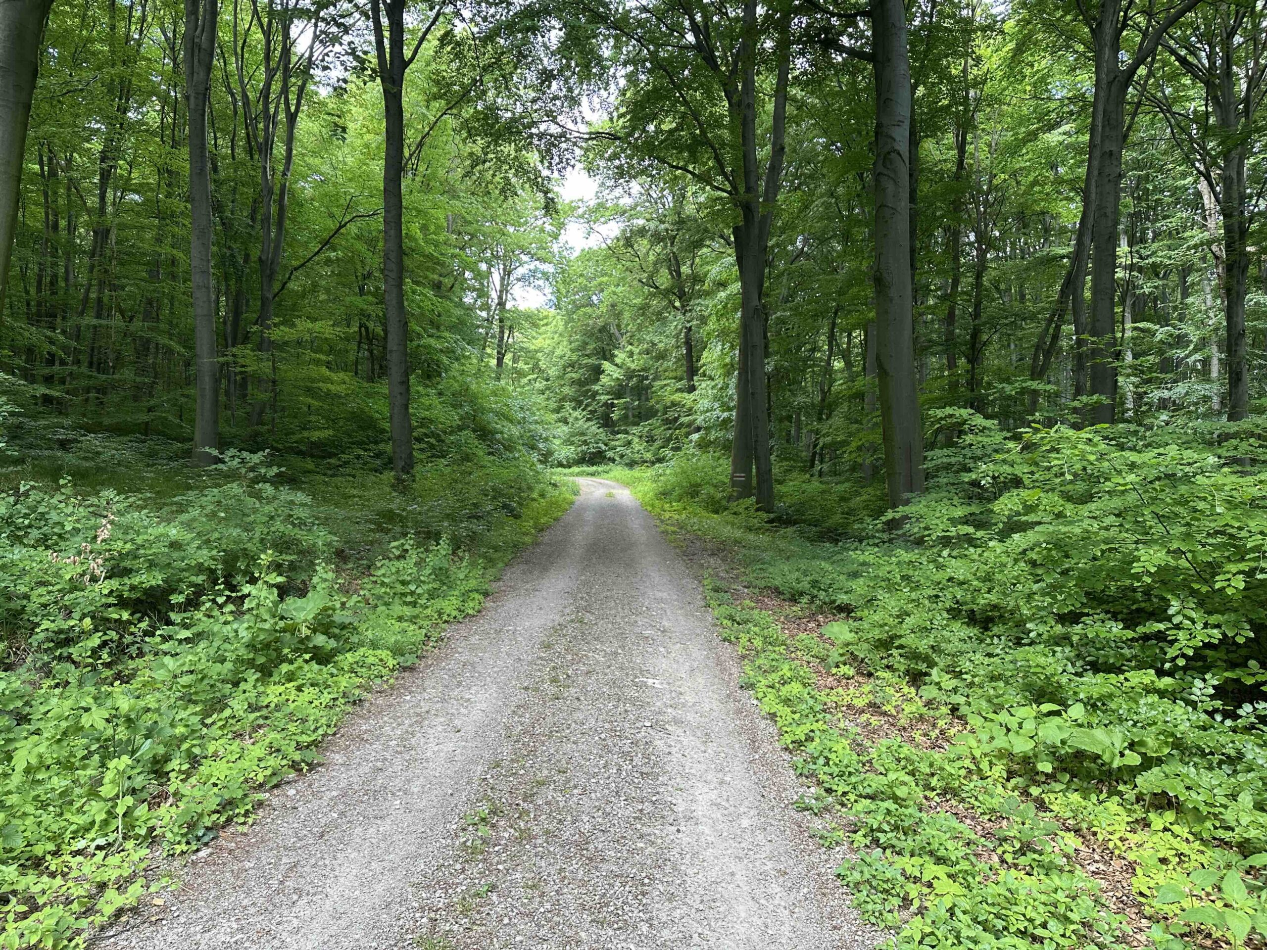 Man folgt dem Pfad am Wiesenrand bis der Weg wieder in den Wald eintaucht. Durch den Wald steil bergauf bis man eine breite Forstraße erreicht. Hier wendet man sich rechts und folgt der Forststraße bis zur Hohenauerwiese, dem Ziel des Weges.