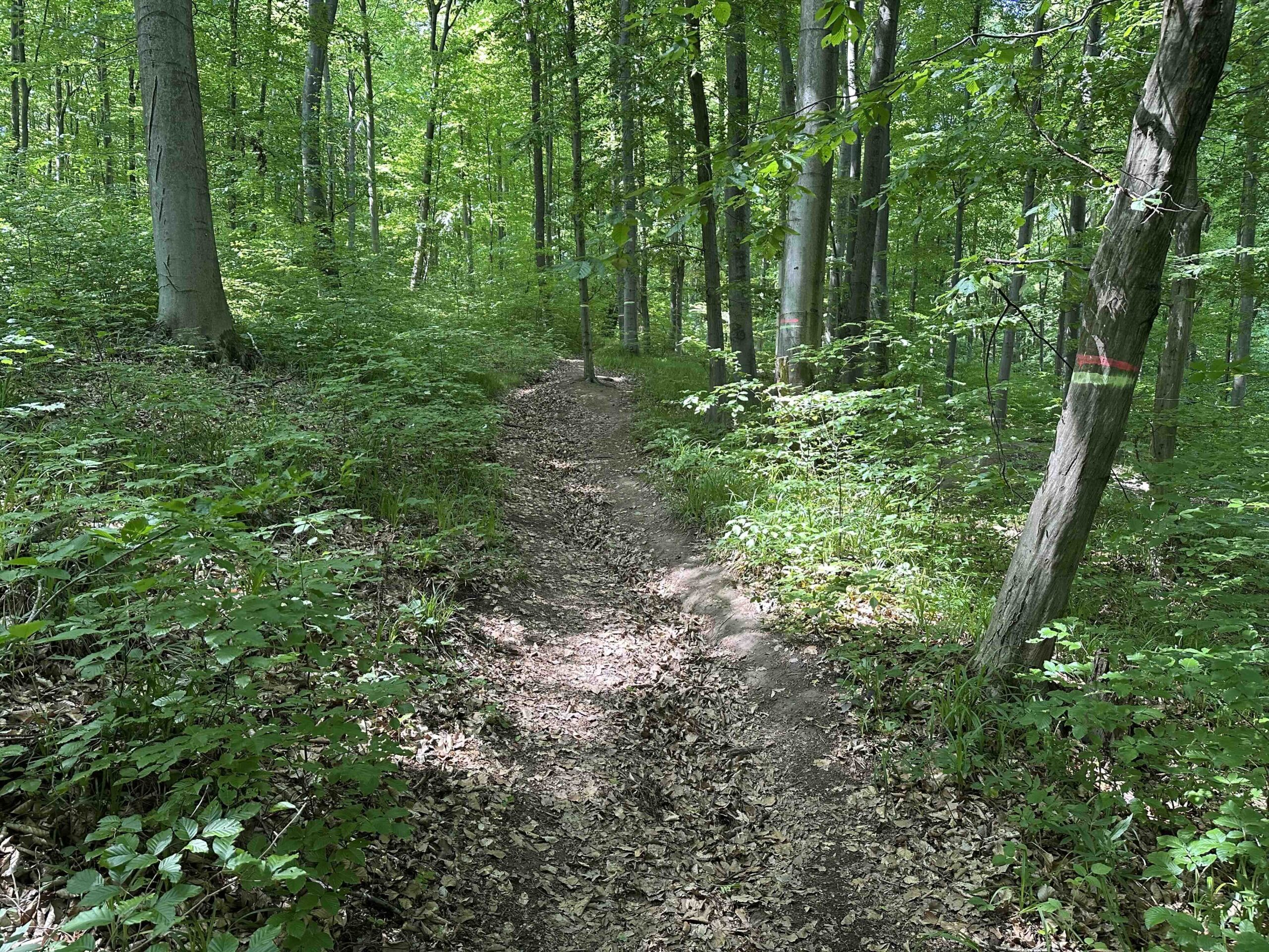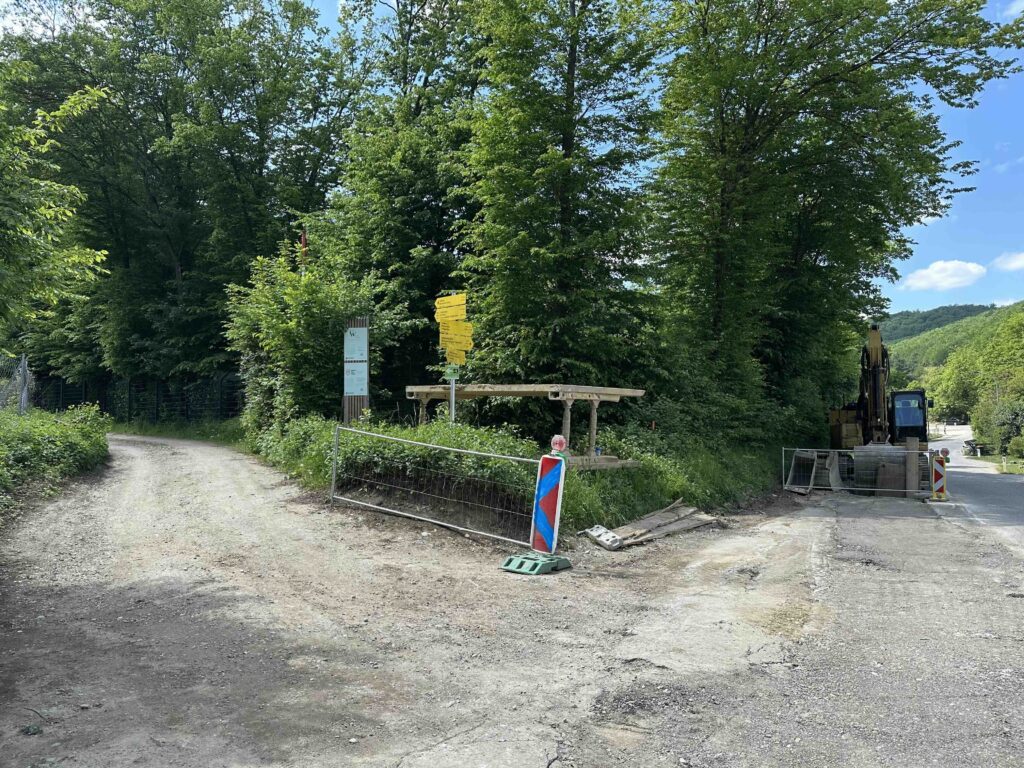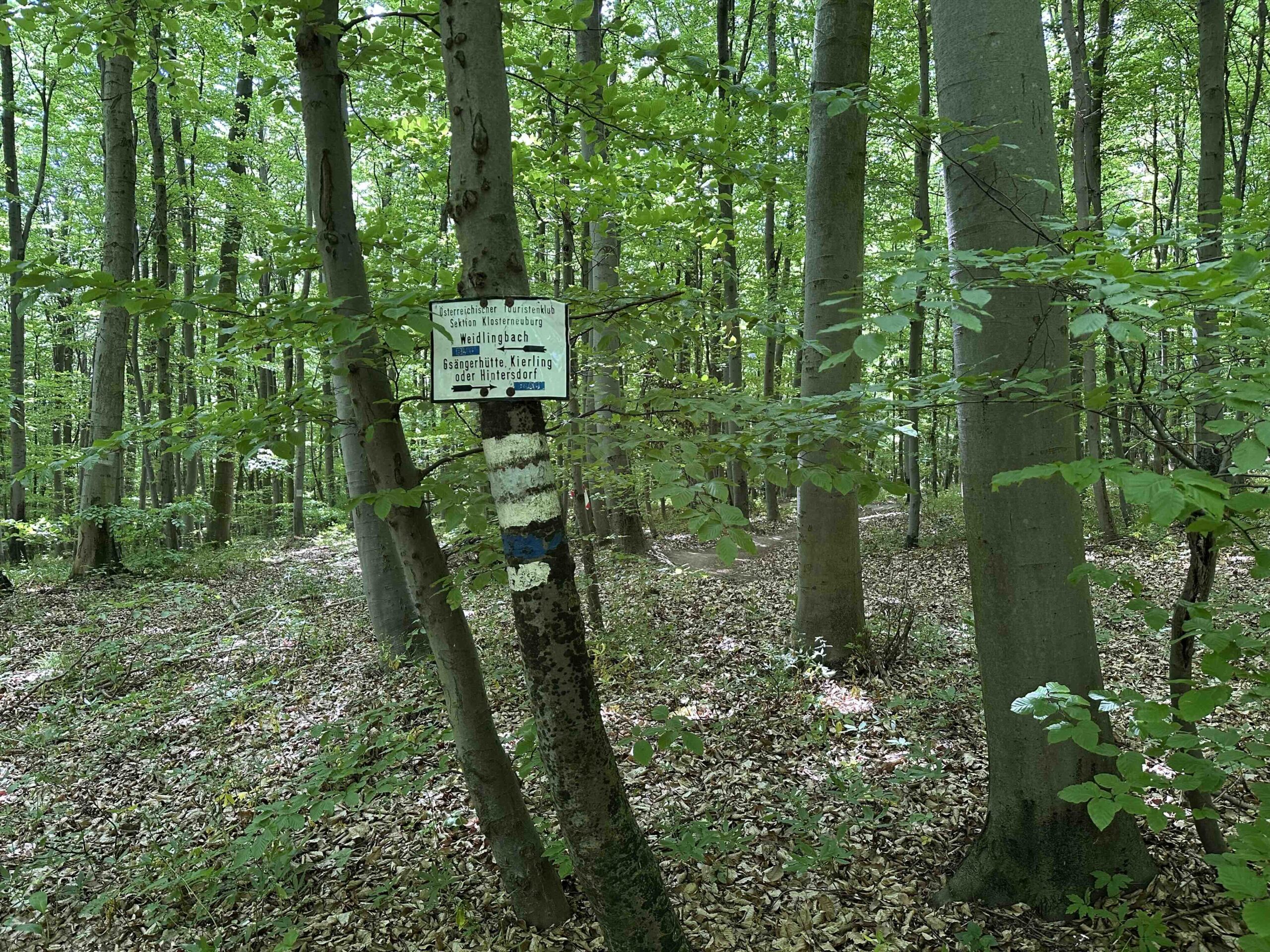 Hier ist auch der Beginn der Mountainbiketrails und ein kleines Stück nach vor befindet sich der Wegknoten Taferlberg an dem auch der rot markierte Weg aus Weidlingbach ankommt. Weiter geht es über den blau markierten Weg Richtung Eichenhain oder den rot markierten Weg Richtung Windischhütte.