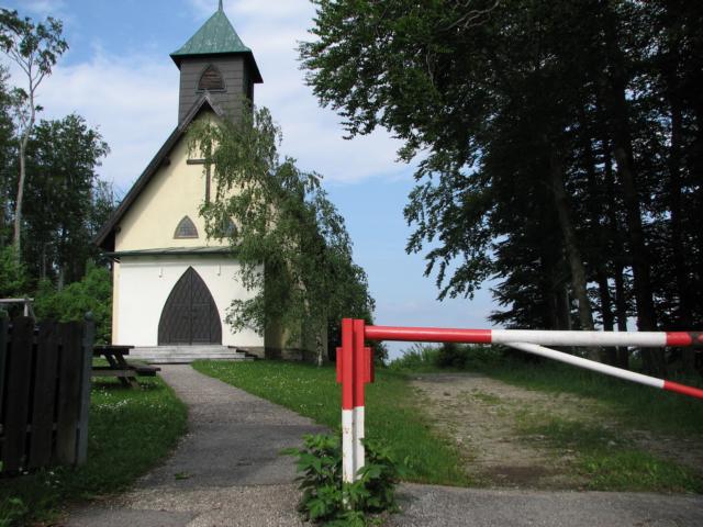 Die hier beschriebene grüne Markierung zweigt aber nach rechts in einen anfangs steilen Waldweg ab. Der schattige Weg läuft nun immer gerade am Waldrücken entlang, macht nur einmal einen Schwenk nach links und führt dann wieder gerade ansteigend auf einem Forstweg bis zum Ortsbeginn von Scheiblingstein. An der Kirche vorbei, die Scheiblingsteinstraße entlang, erreicht man schließlich das Landgasthaus Scheiblingstein, das seine Gäste mit guter Küche verwöhnt. Der Weg endet beim Wegknotenpunkt Scheiblingstein an der Straßenkreuzung mit der Tullner Straße.