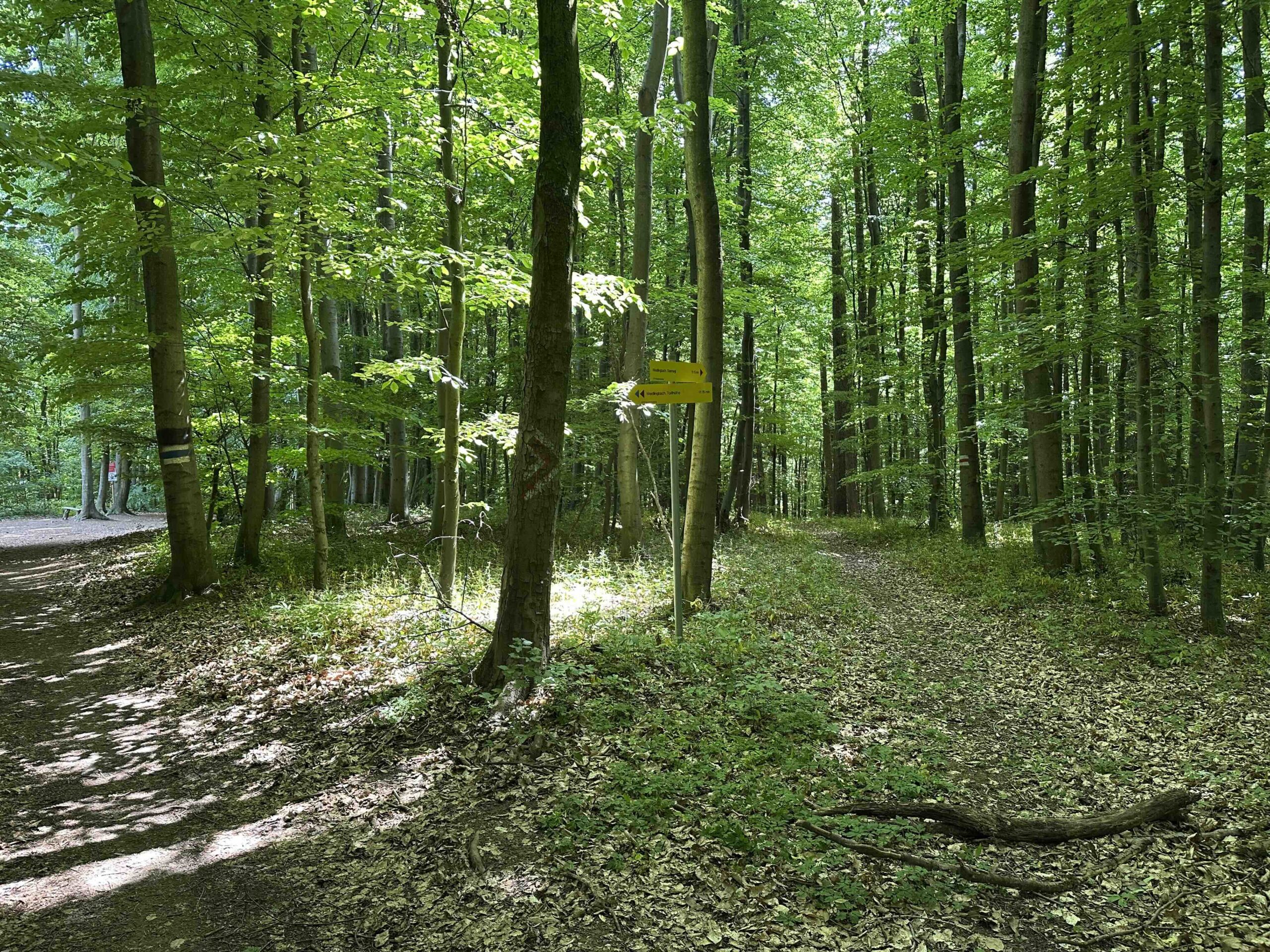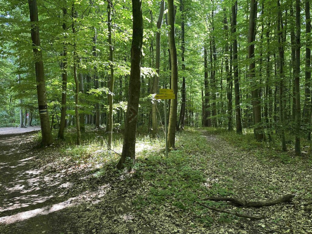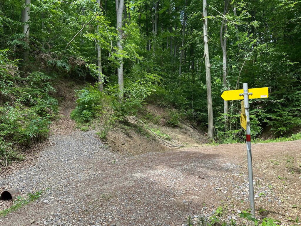 Hier ist auch der Beginn der Mountainbiketrails und ein kleines Stück nach vor befindet sich der Wegknoten Taferlberg an dem auch der blau markierte Weg aus Weidlingbach ankommt. Weiter geht es über den blau markierten Weg Richtung Eichenhain oder den rot markierten Weg Richtung Windischhütte.